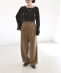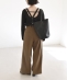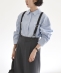 サスペンダーを生かしてタートルネックやベーシックシャツと合わせることでマニッシュなスタイリングに。