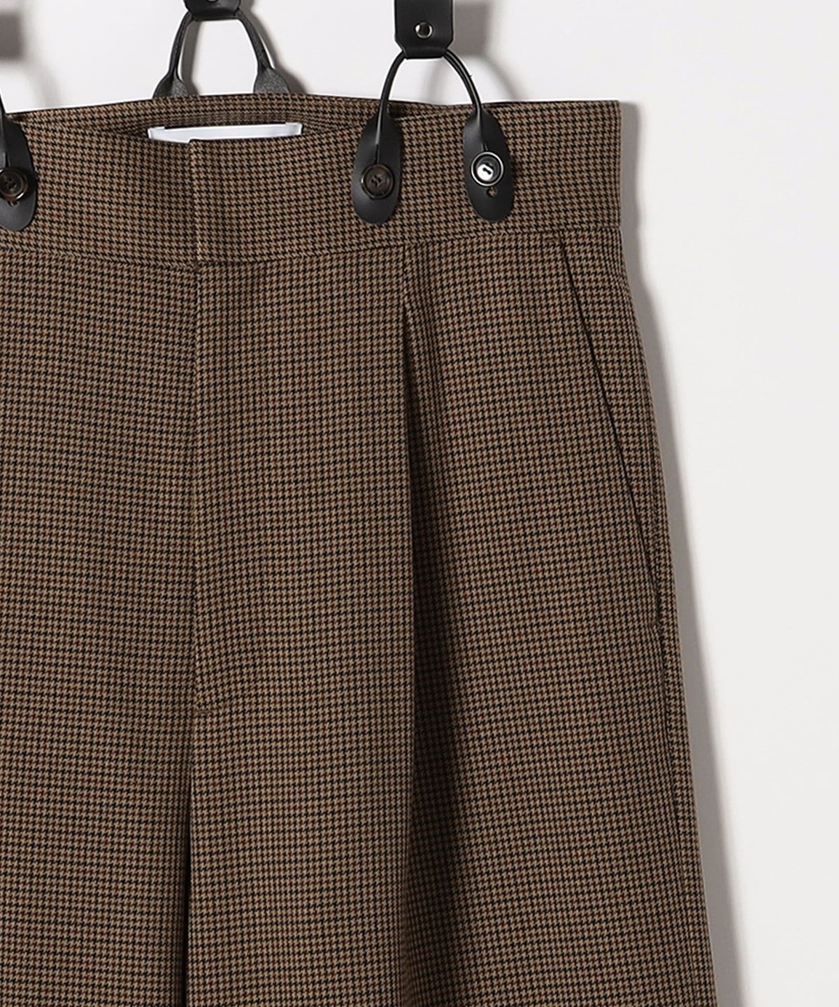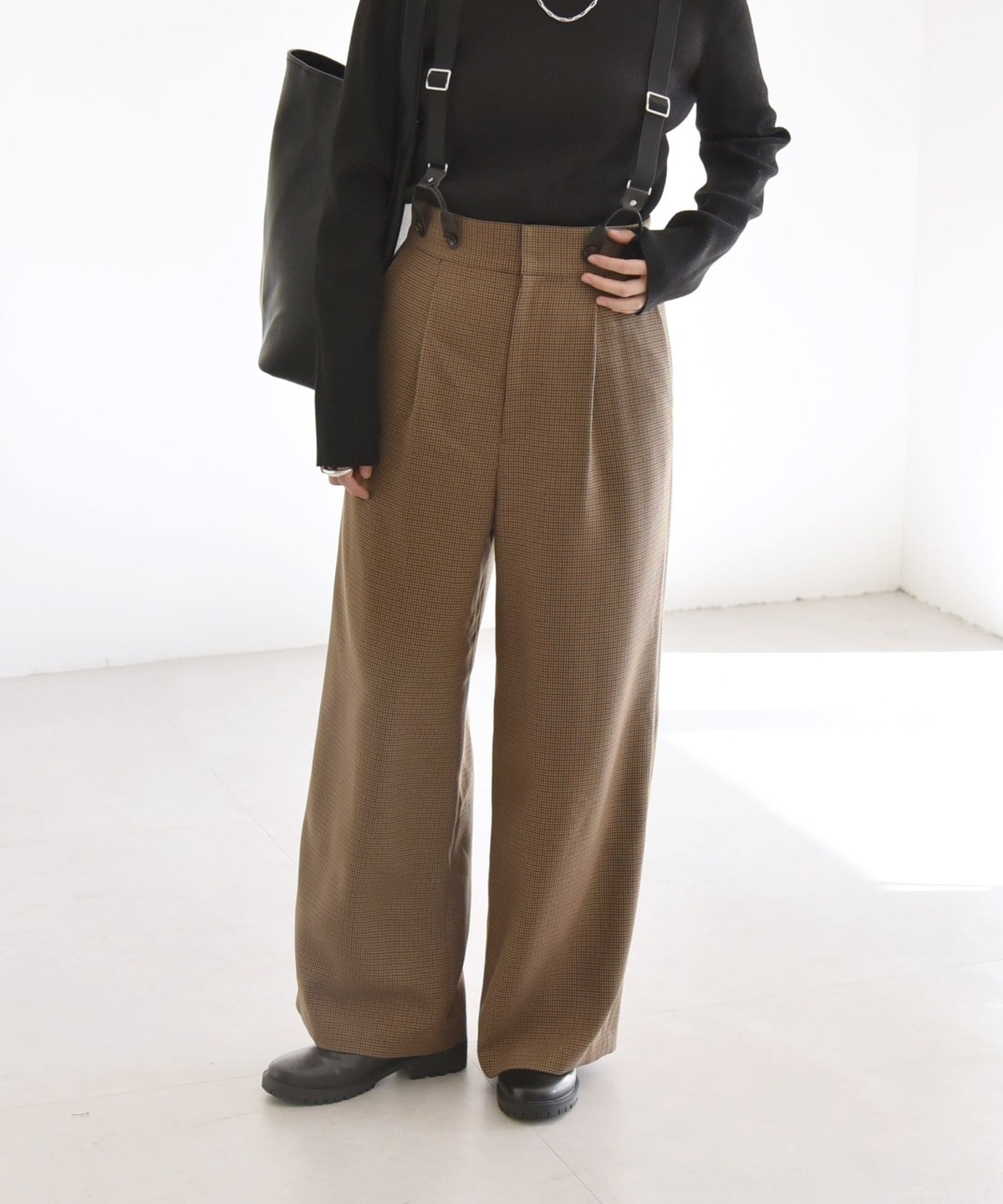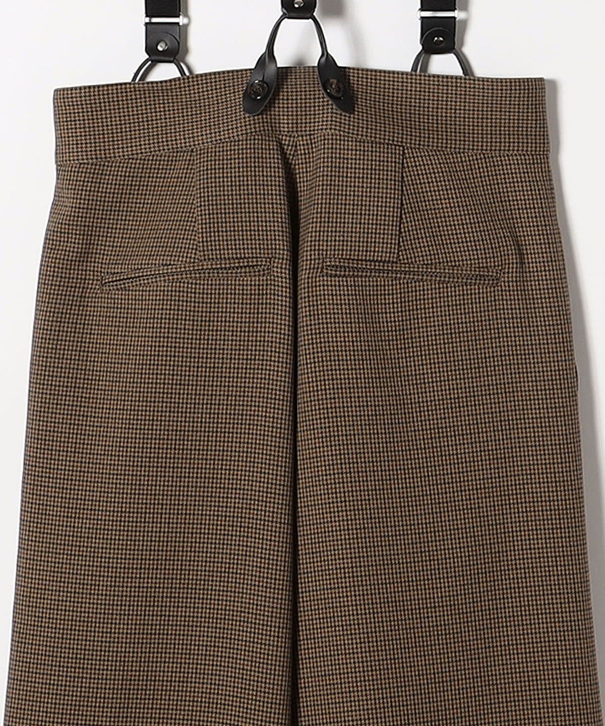 クラシックなチェック柄が上品な、サスペンダー付のタックワイドパンツ。