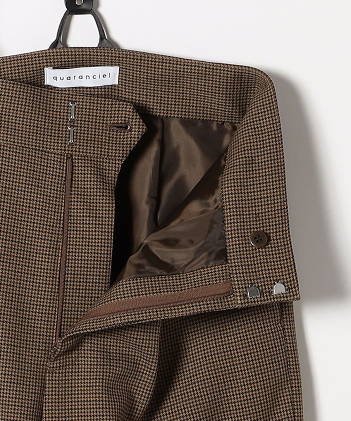 1. quaranciel:〈洗濯機可能〉チェック サスペンダー付 タック ワイド パンツ ブラウン