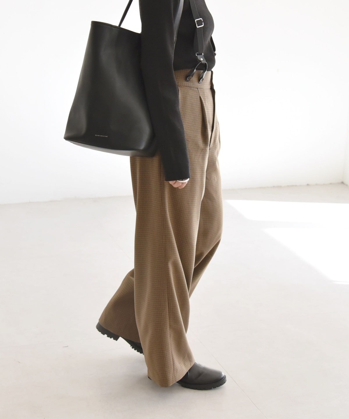 21. quaranciel:〈洗濯機可能〉チェック サスペンダー付 タック ワイド パンツ