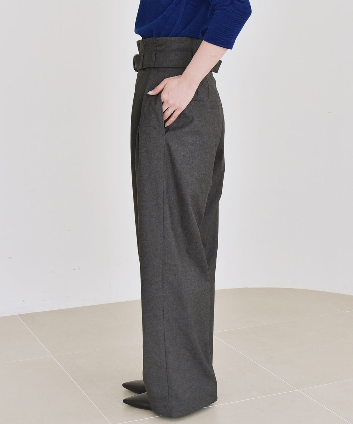 2. 《一部追加予約》quaranciel:〈洗濯機可能〉ハンサム ハイウエスト ベルト ワイド パンツ グレー