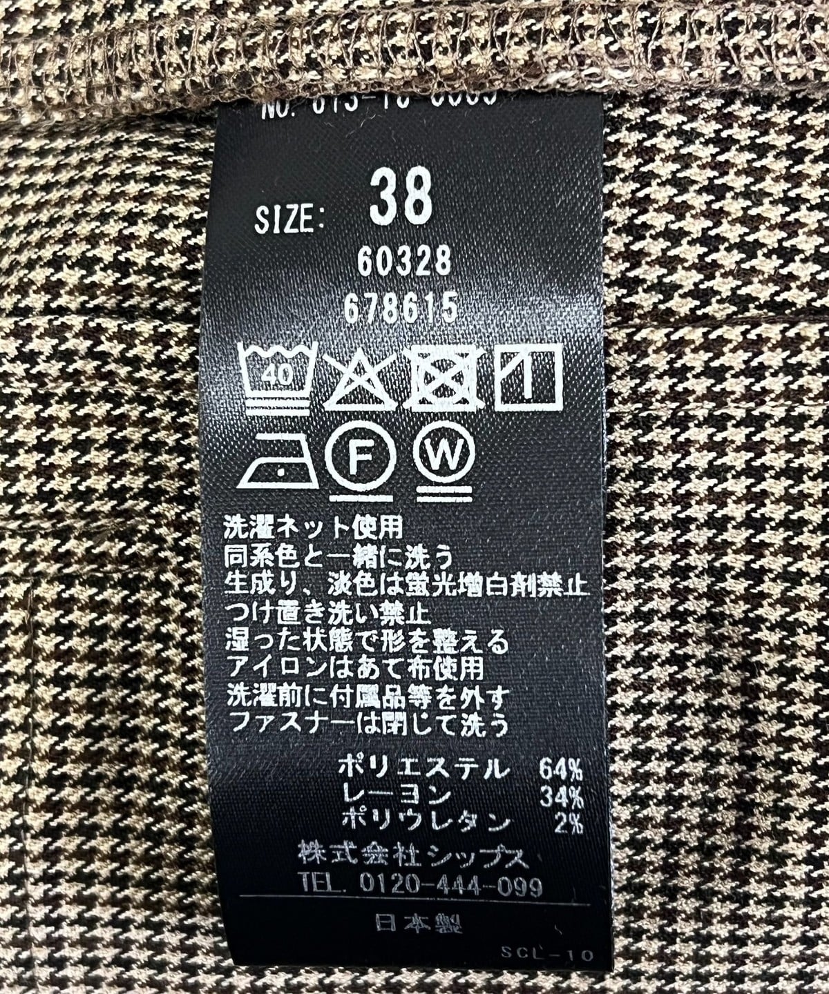 素材:ポリエステル64%, レーヨン34%, ポリウレタン2%