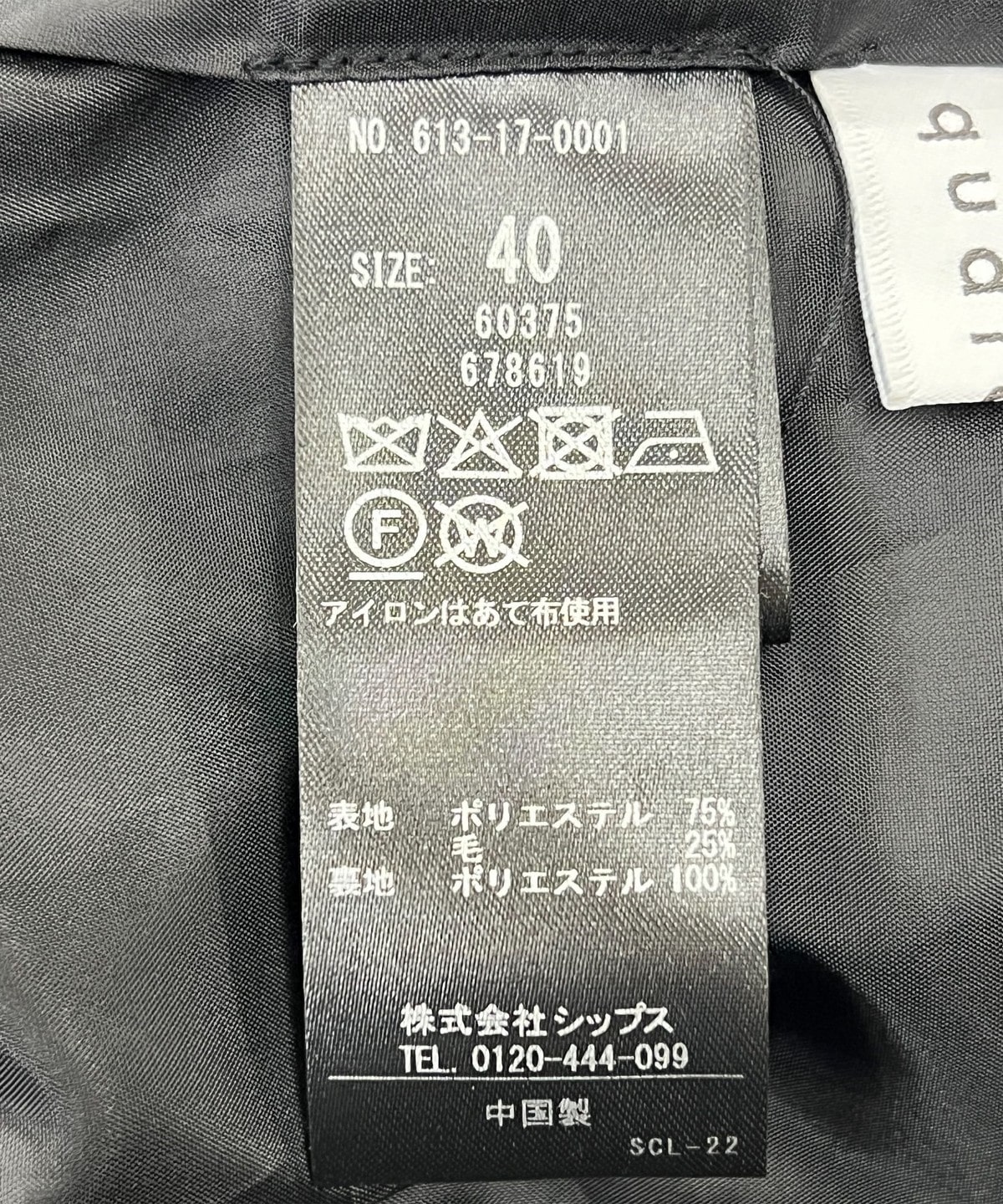 素材:表地: ポリエステル75%, 毛25%, 裏地: ポリエステル100%