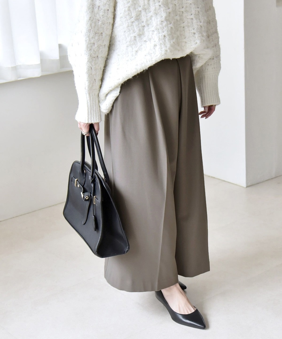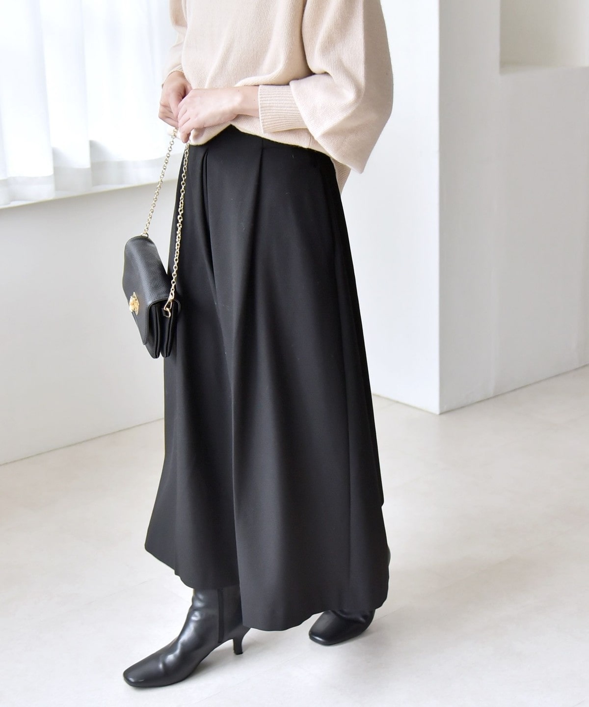 quaranciel:〈洗濯機可能〉ウォーム タック ワイド キュロット パンツ