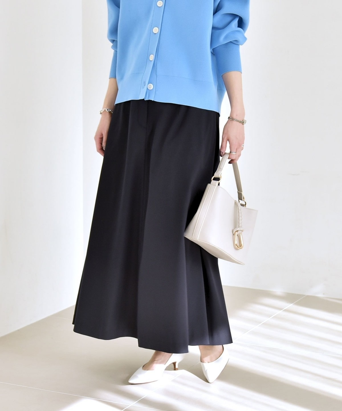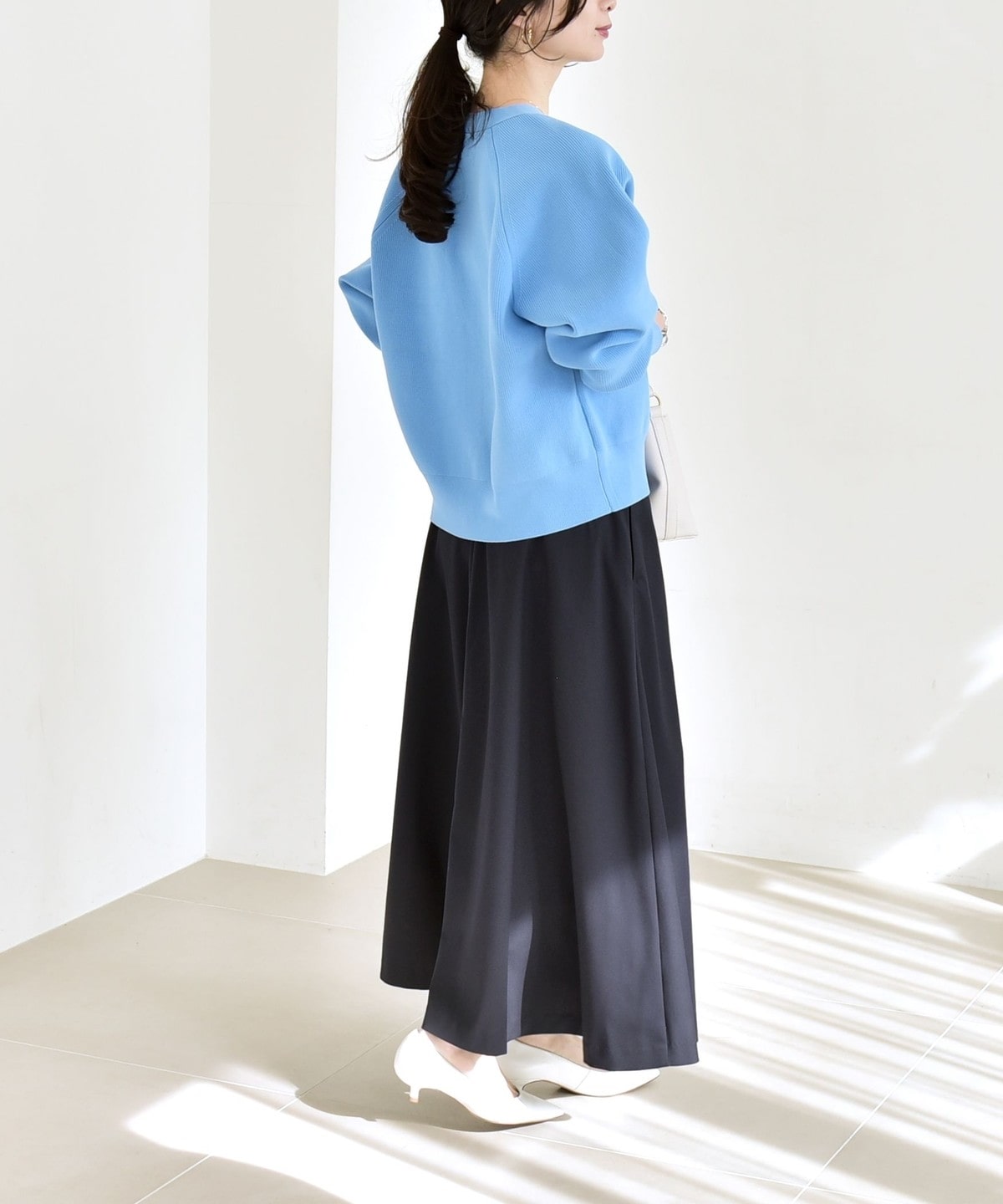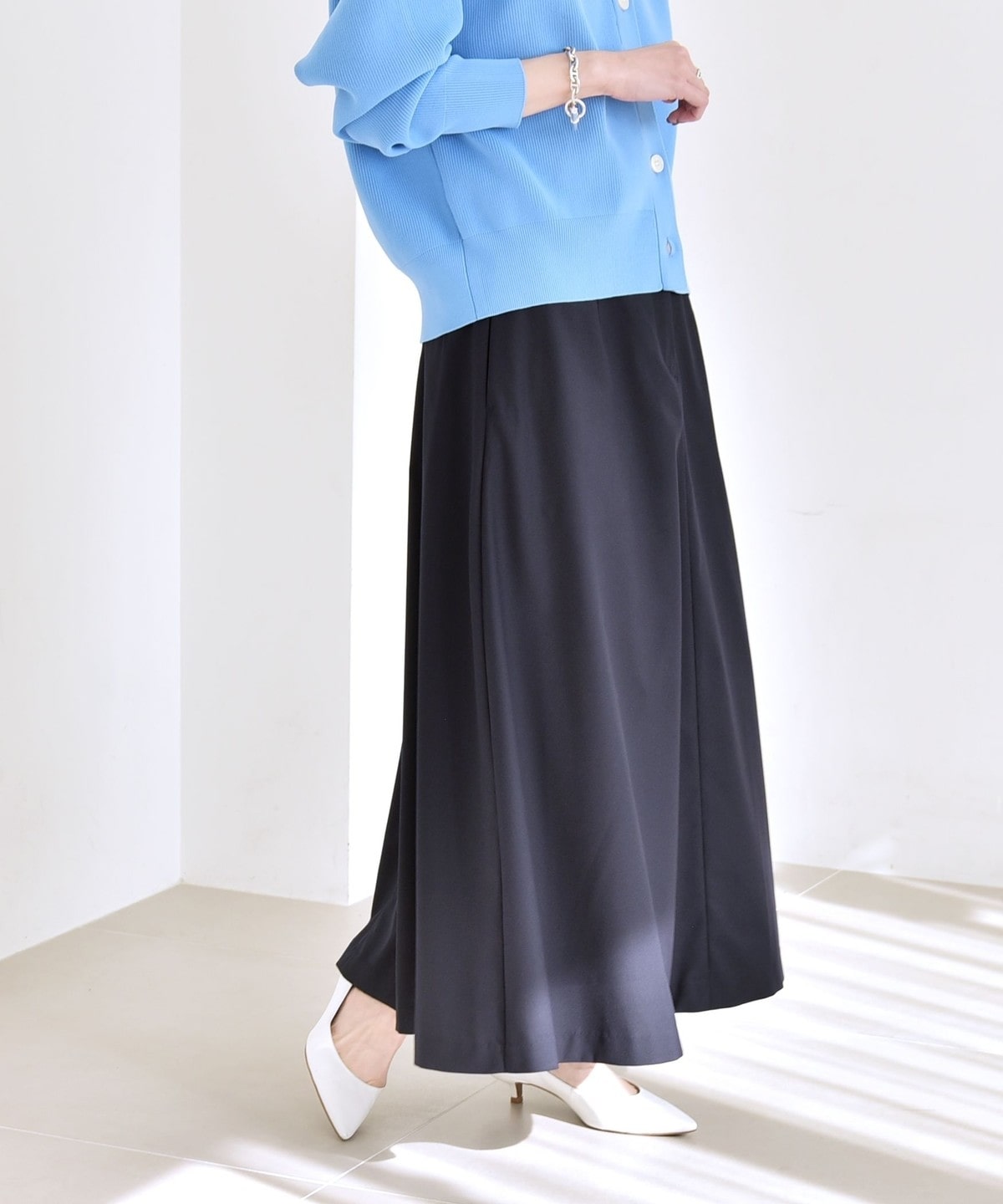 動くたびに揺れる軽やかな素材感が春らしく、オフィスカジュアルから休日まで幅広いシーンで活躍します。