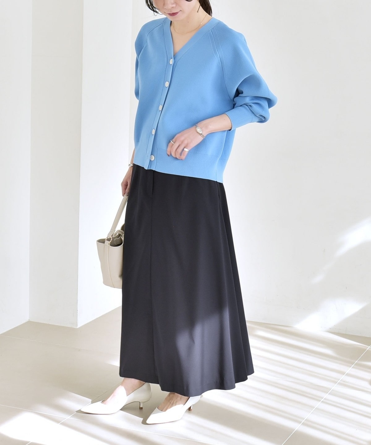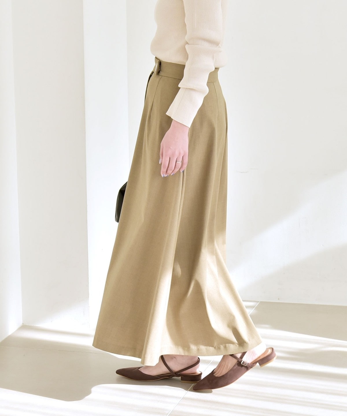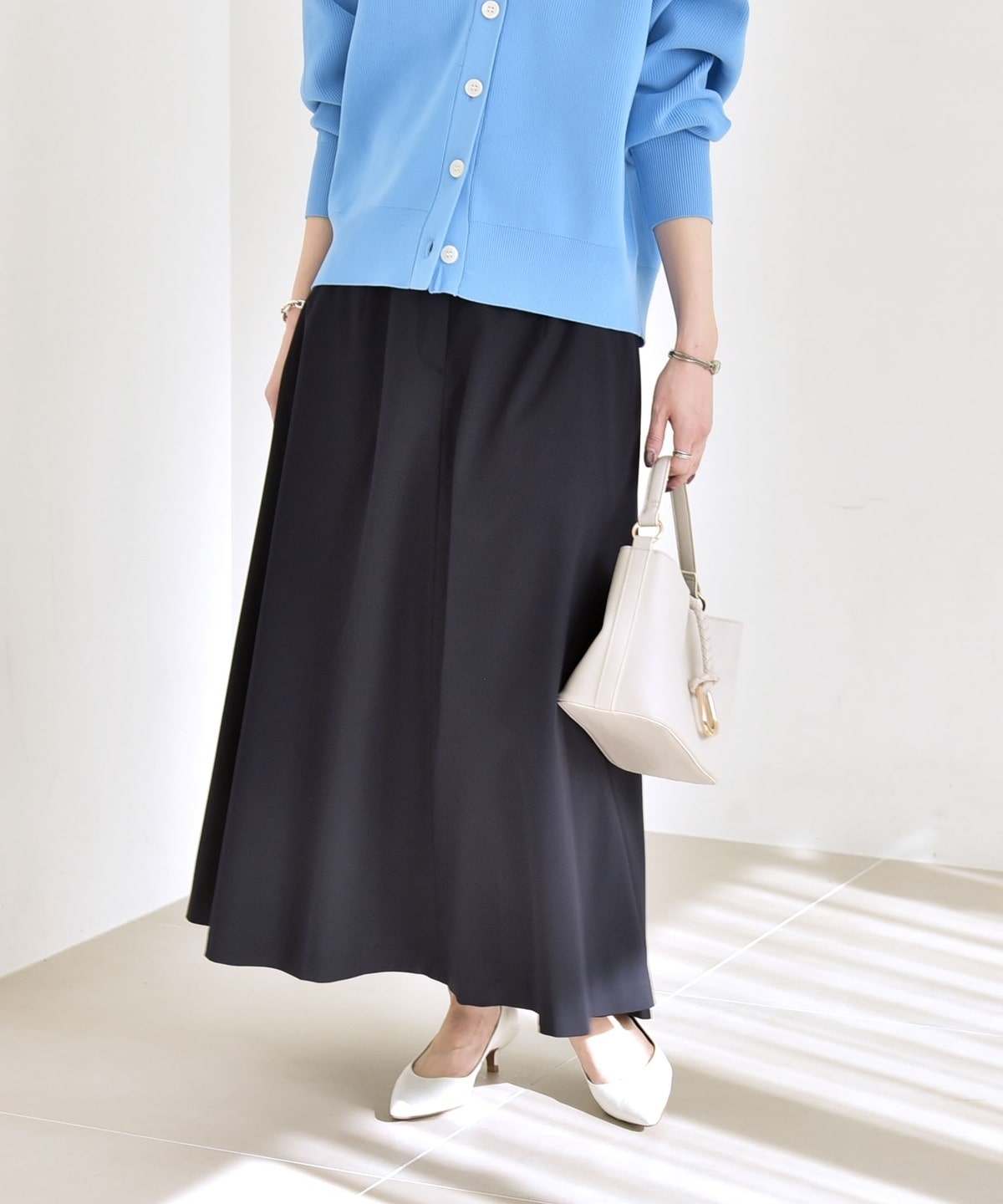 動くたびに揺れる軽やかな素材感が春らしく、オフィスカジュアルから休日まで幅広いシーンで活躍します。