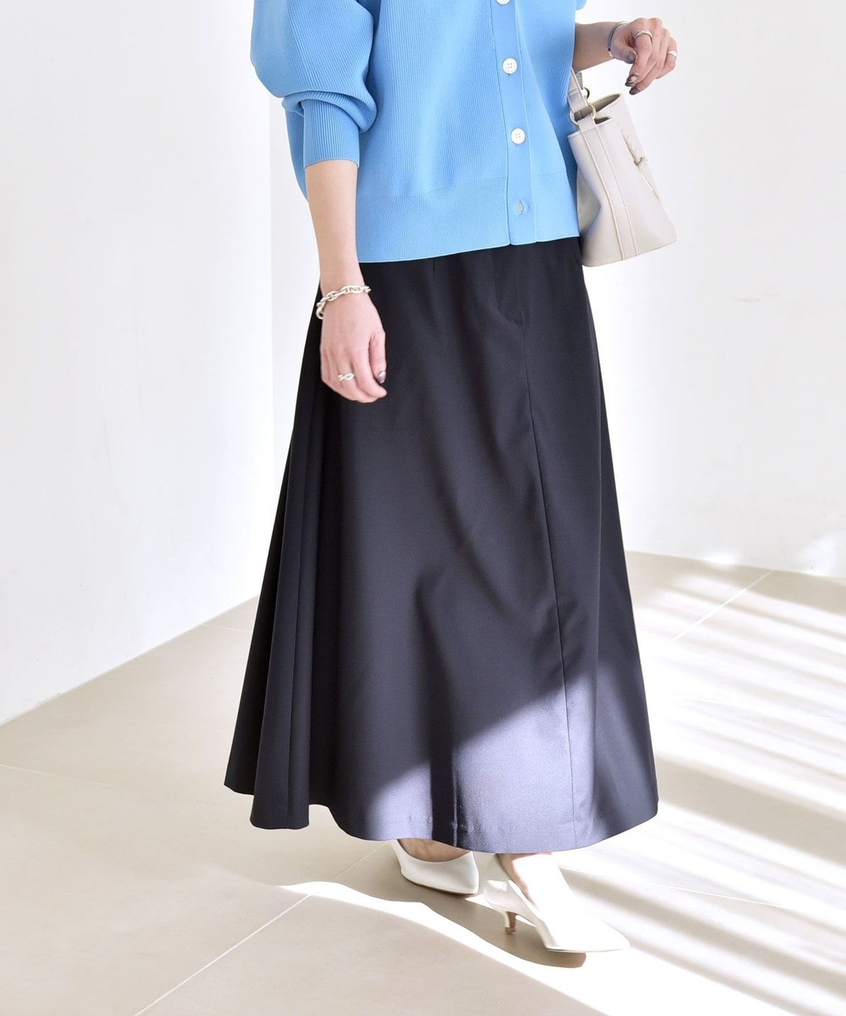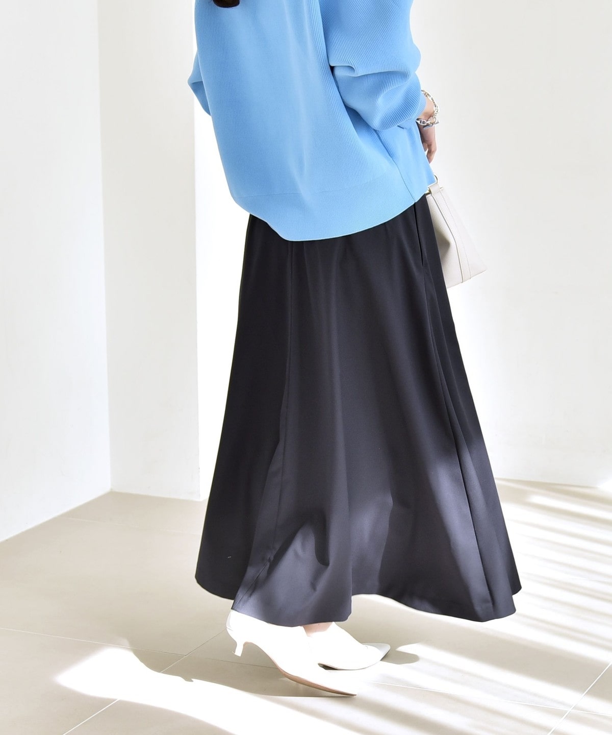 綺麗なフレアラインを活かして、タックインしたスタイリングがおすすめ。
