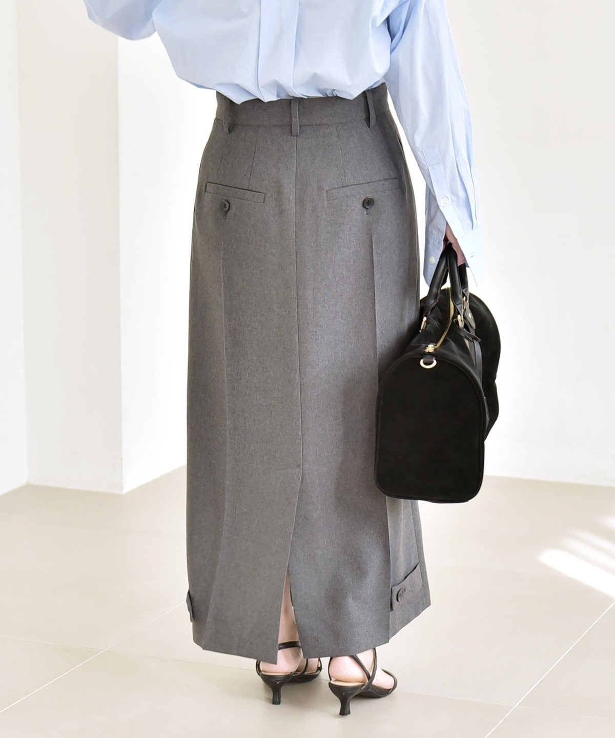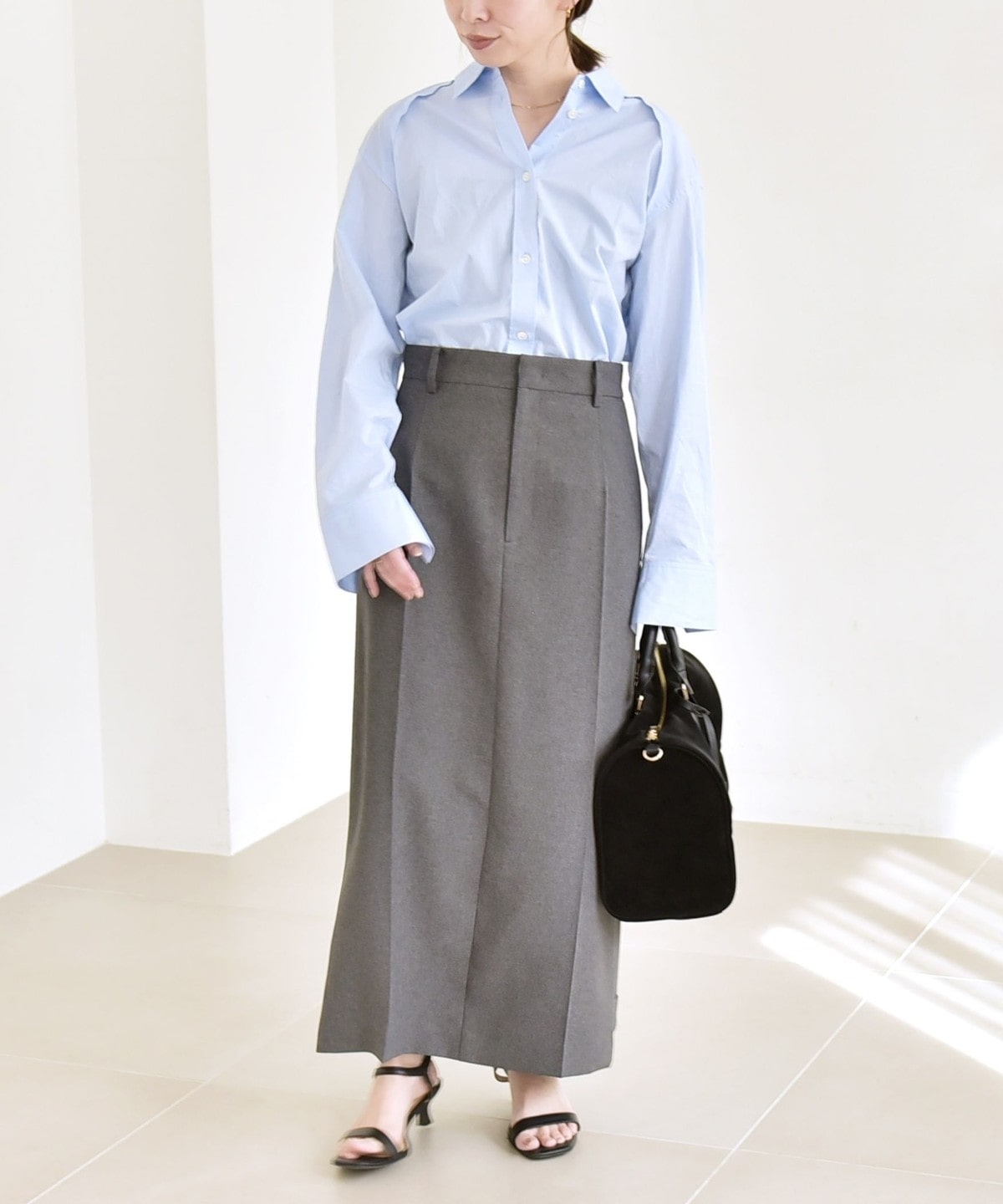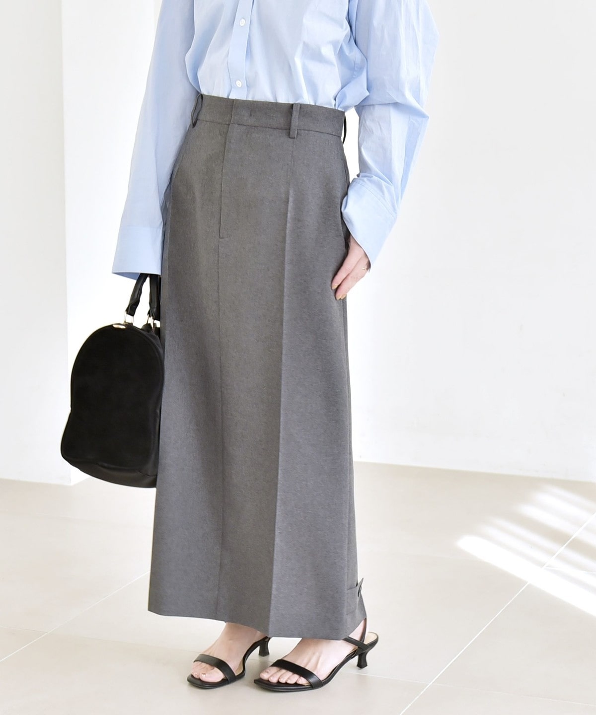センタープレスが入ったシルエットのきれいなタイトスカート。