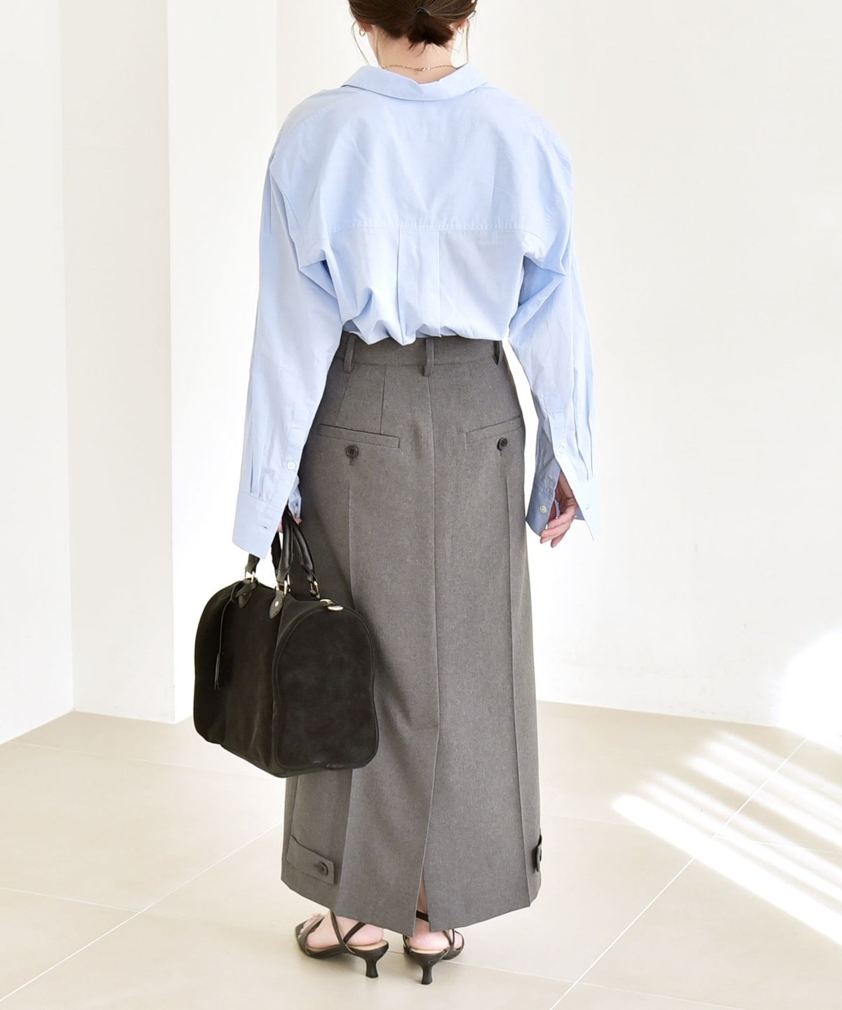 ブラウスや薄手のニットをタックインしすっきりとまとめたオフィススタイルにもぴったり。