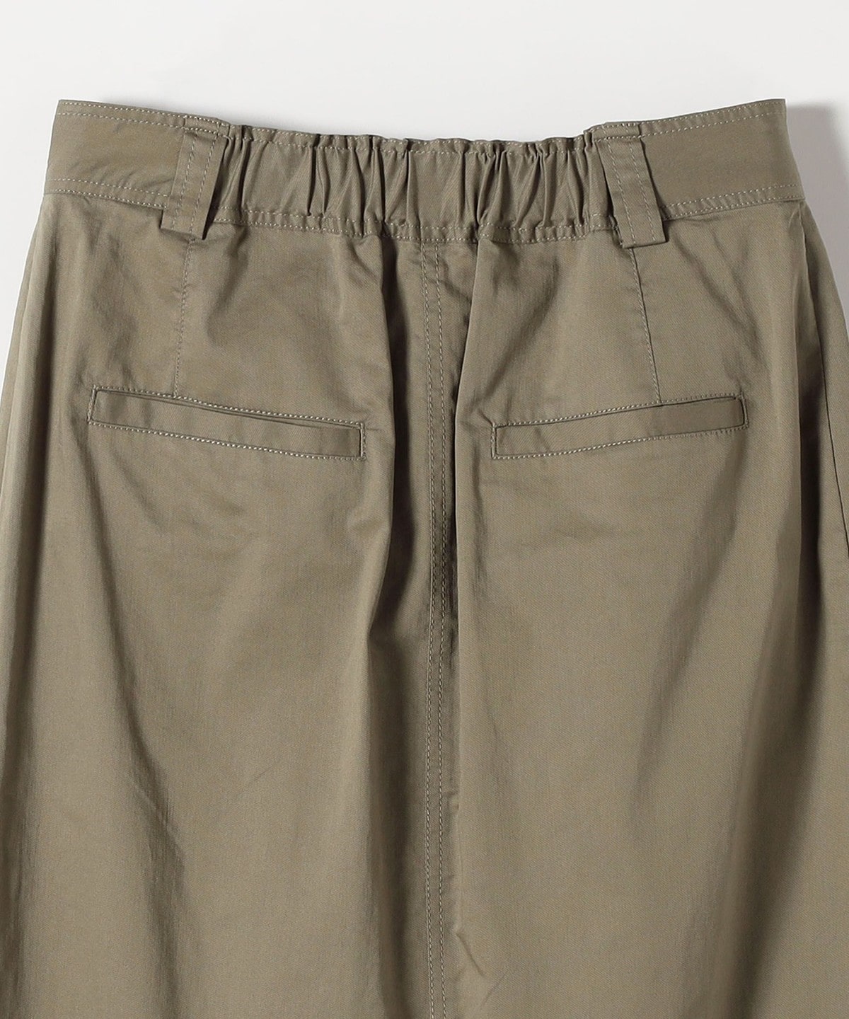 後ろウエストはゴム入りで楽な着心地ながら、フロントはすっきり見えでタックインも映える一着。