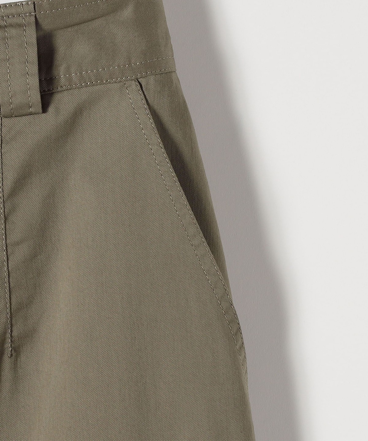 フロントのボタン下は開き仕様で足捌きの良さはありつつ、ステッチで留めを入れることで足元が覗かないようになっていて安心感も◎