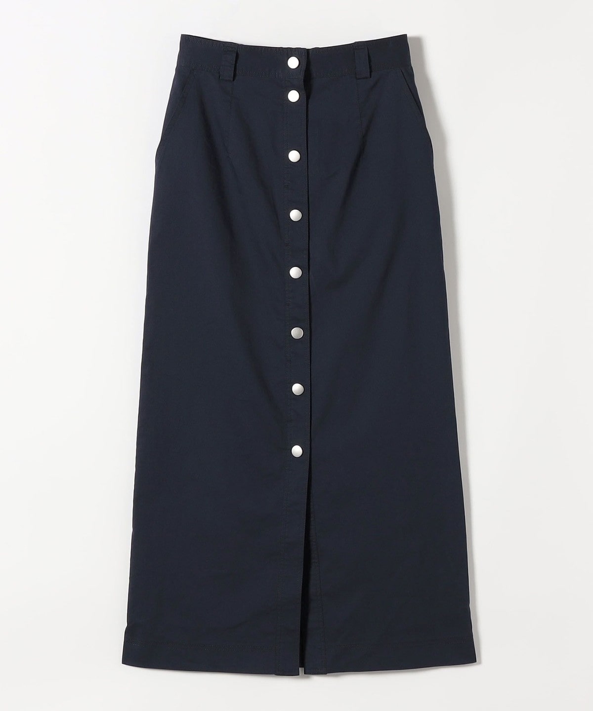 フロントのボタンデザインとIラインシルエットで、縦ラインを強調したタイトスカート。