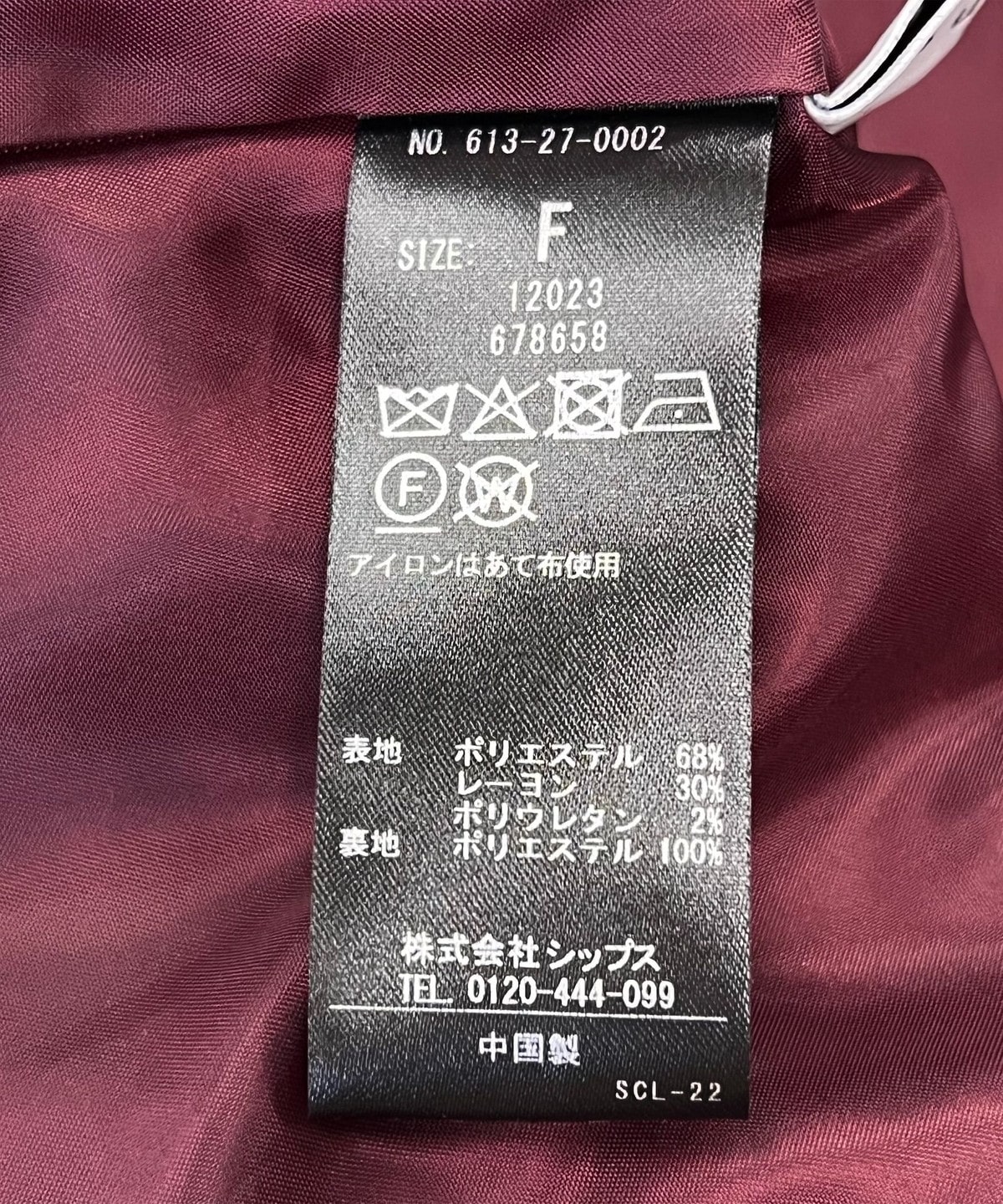 素材:表地: ポリエステル68%, レーヨン30%, ポリウレタン2%, 裏地: ポリエステル100%