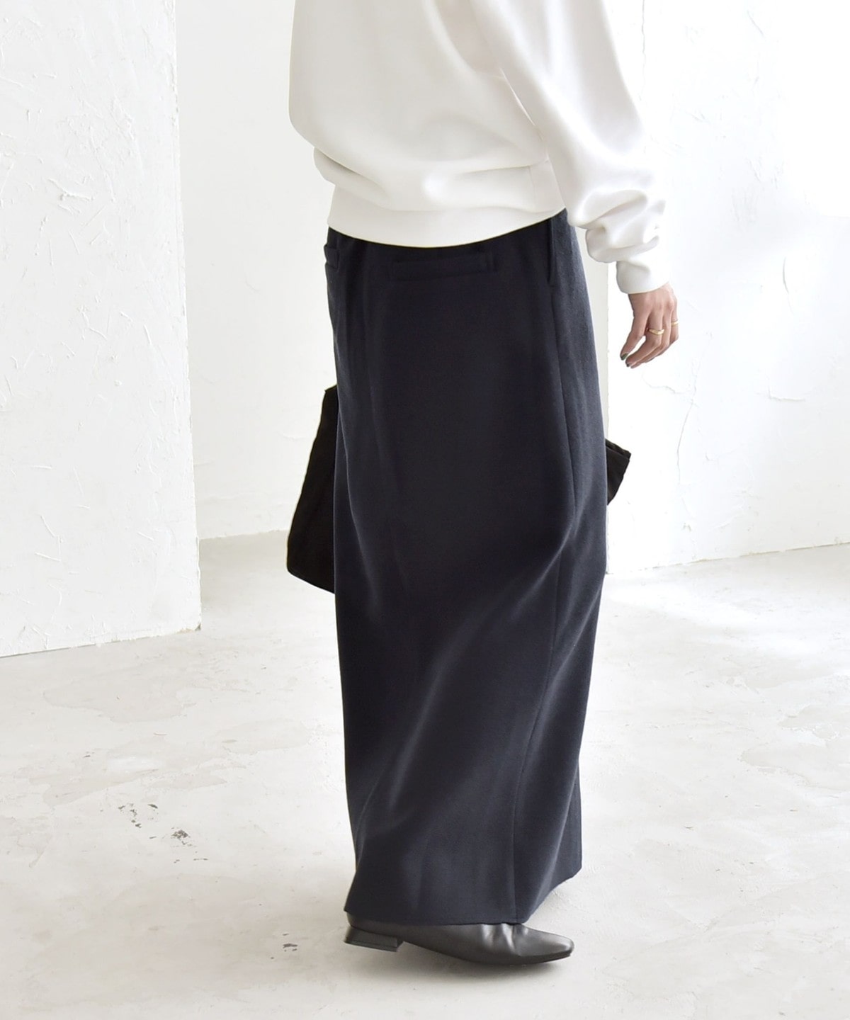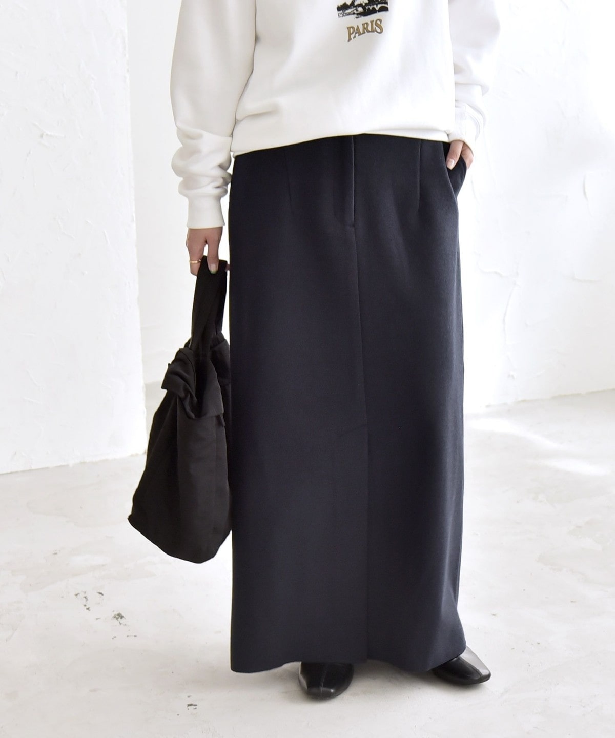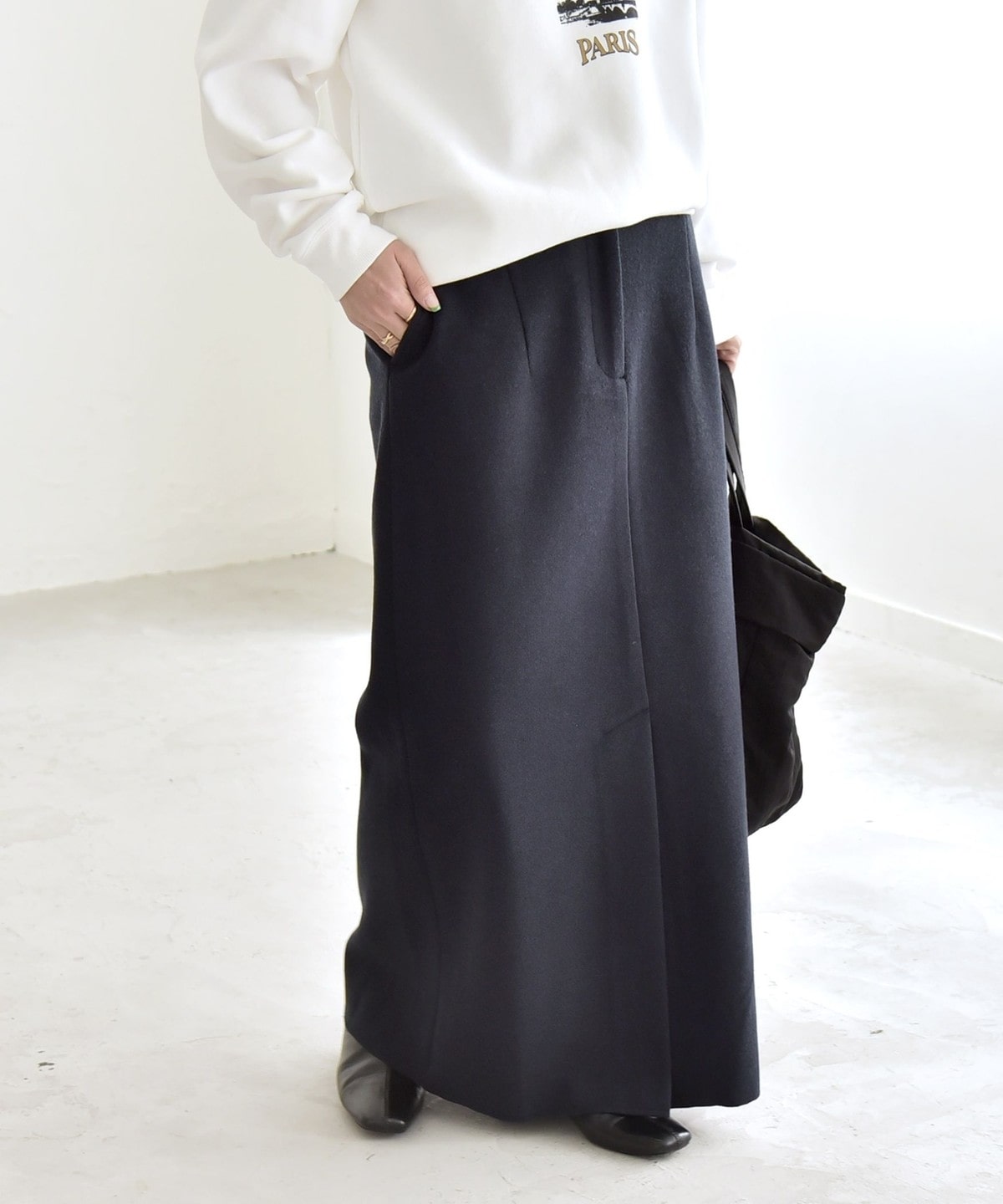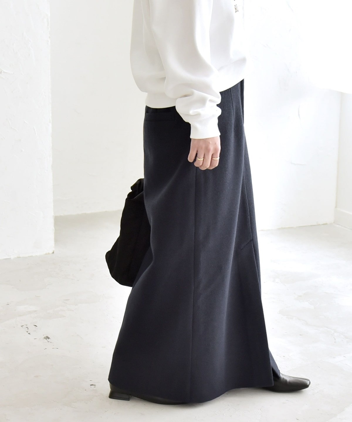 ストレートシルエットで、程良いゆとりを持たせたロングスカート。
