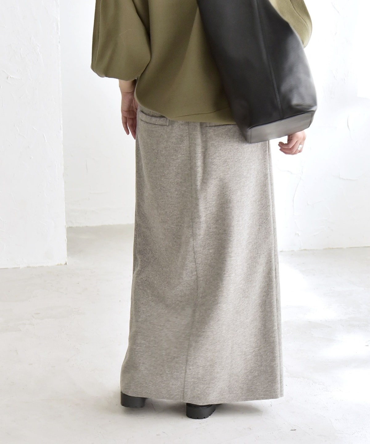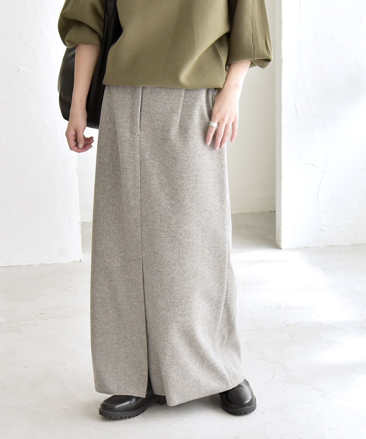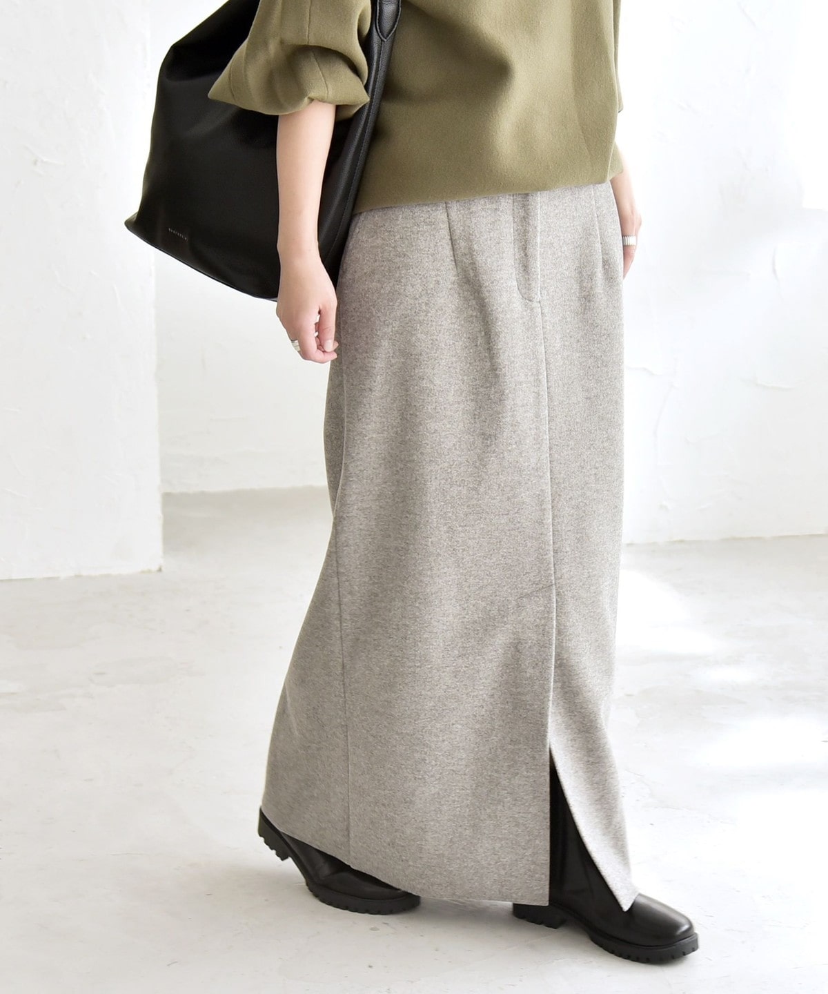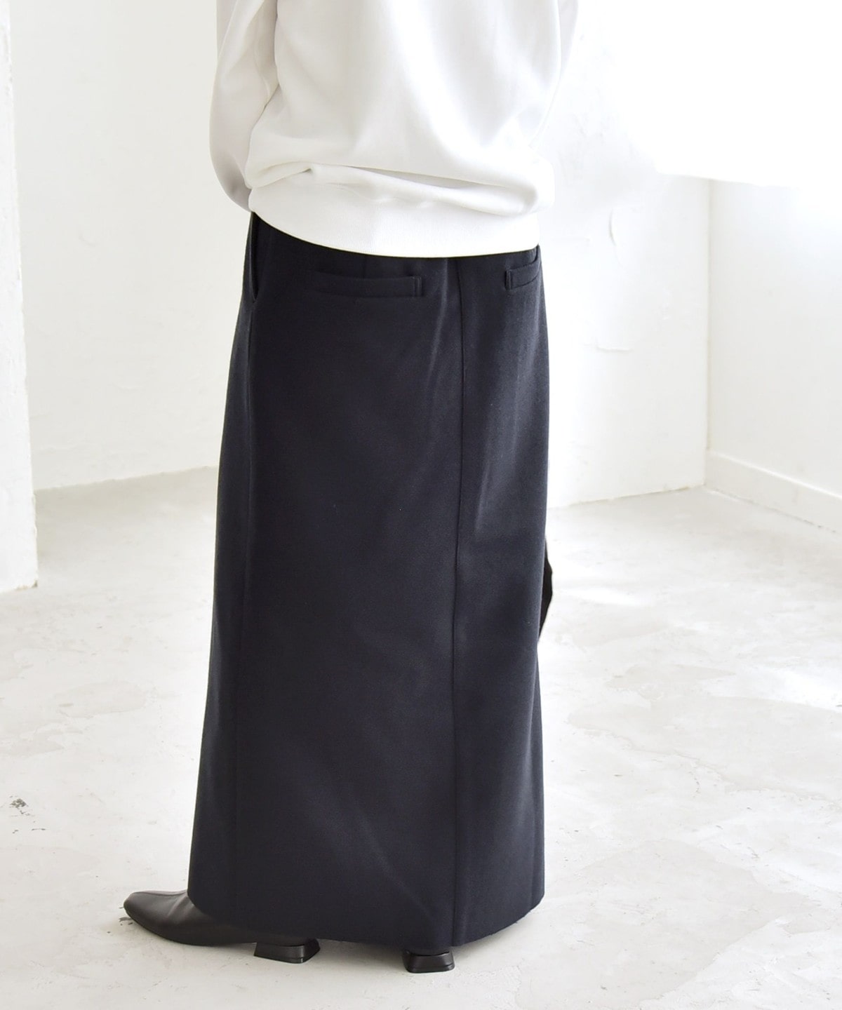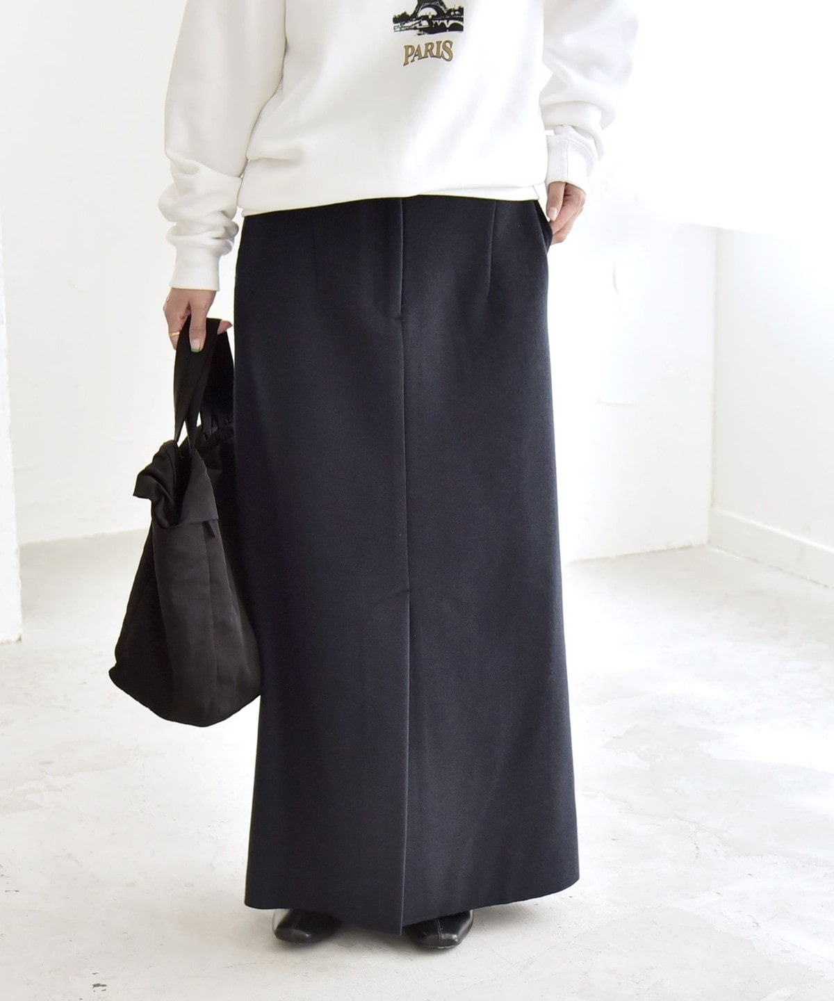 ストレートシルエットで、程良いゆとりを持たせたロングスカート。