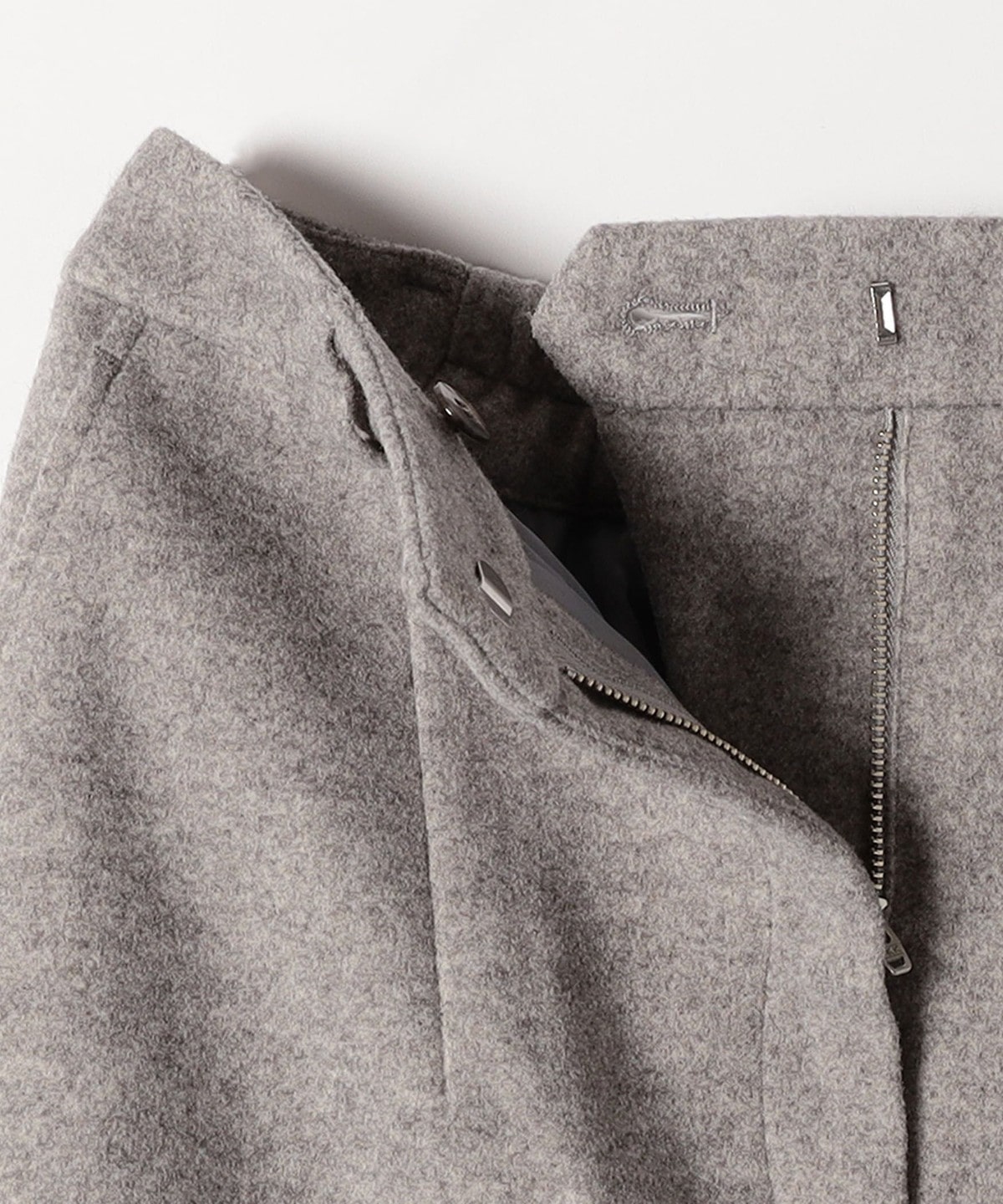 フロントにはファスナー開きとダーツを施し、すっきりとしたマニッシュな仕立てが洗練された印象に。