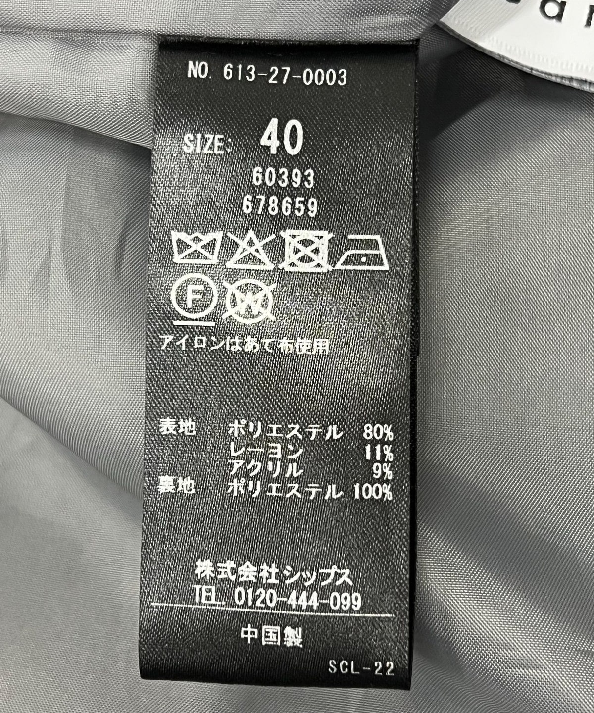 素材:表地: ポリエステル80%, レーヨン11%, アクリル9%, 裏地: ポリエステル100%