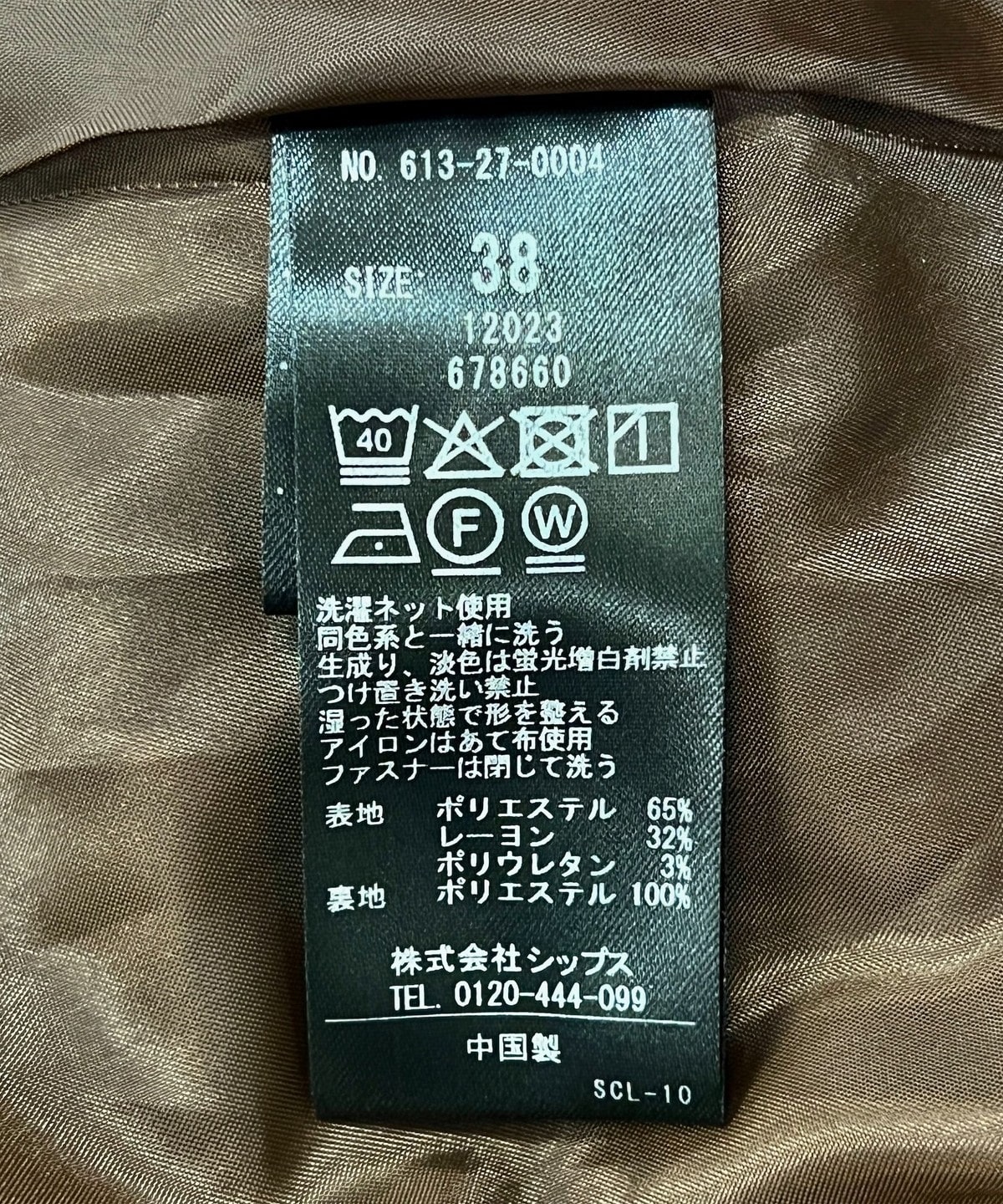 素材:表地: ポリエステル65%, レーヨン32%, ポリウレタン3%, 裏地: ポリエステル100%