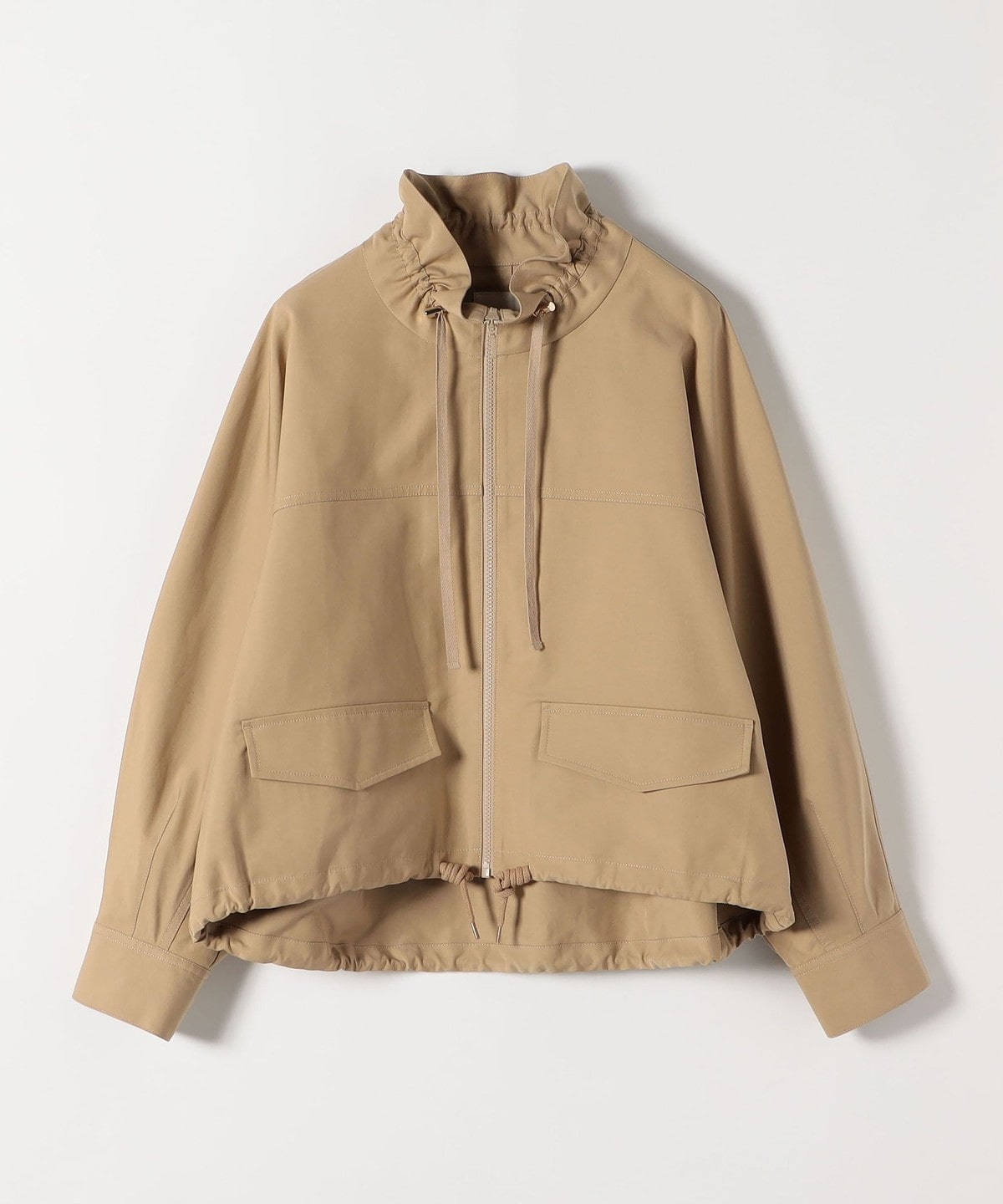 1. quaranciel:〈手洗い可能〉ギャザー スタンドカラー ドロスト ショート ブルゾン ベージュ
