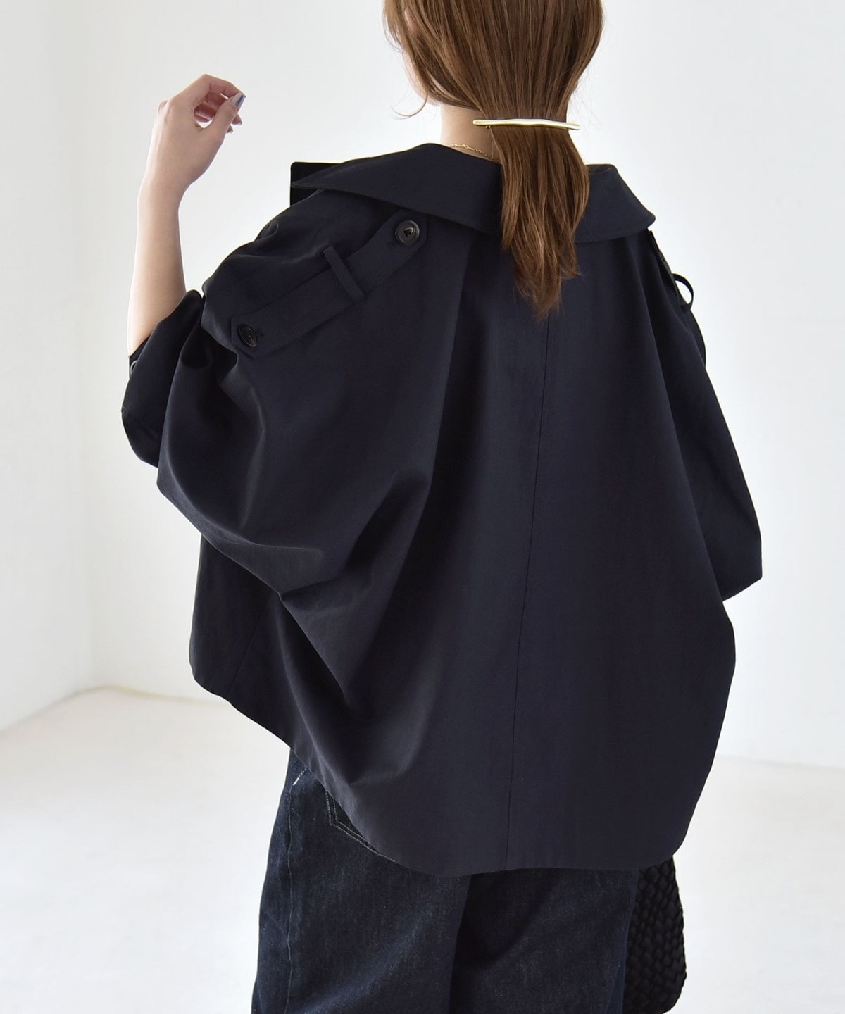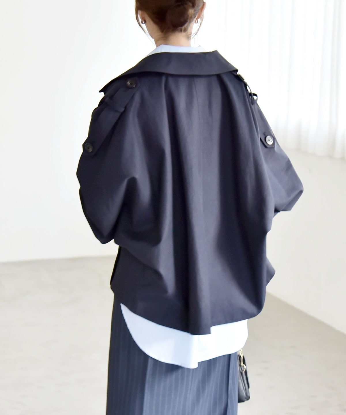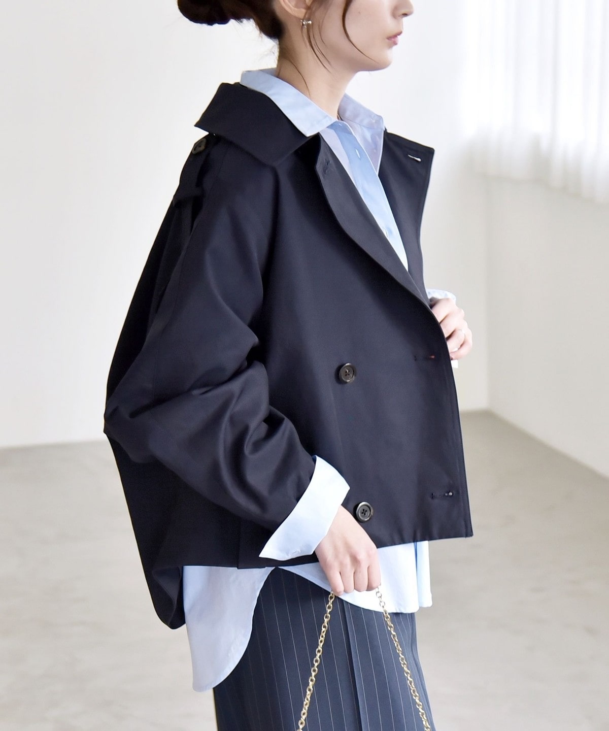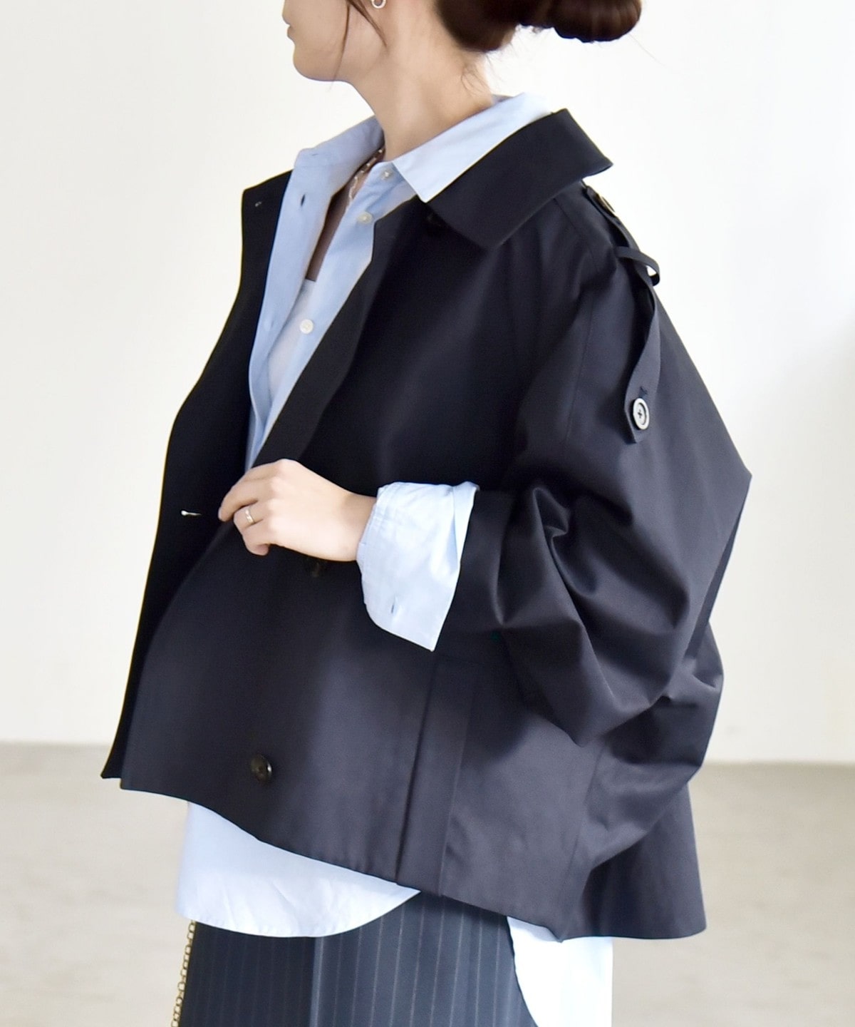 トレンチディテールをベースにアレンジした、ショート丈アウター。