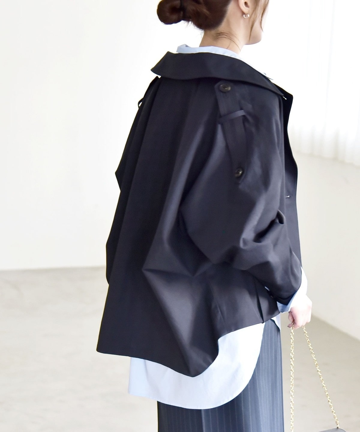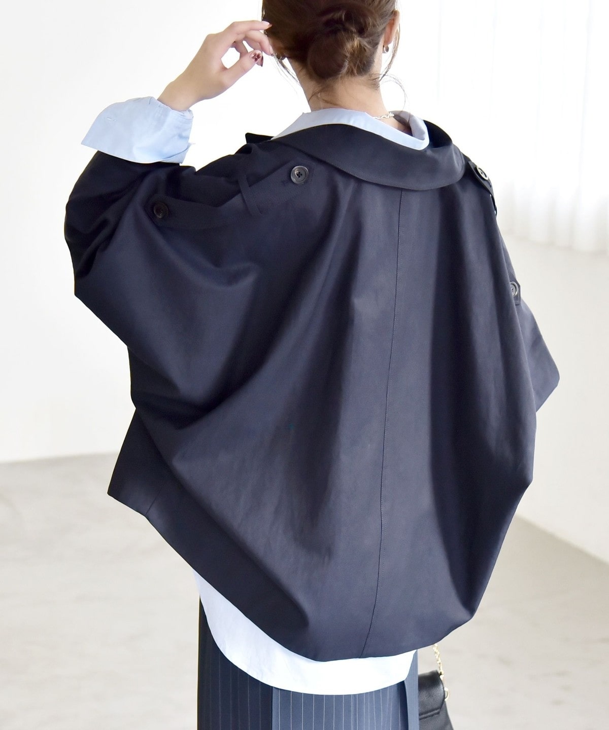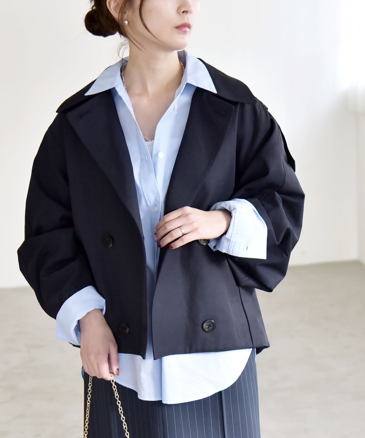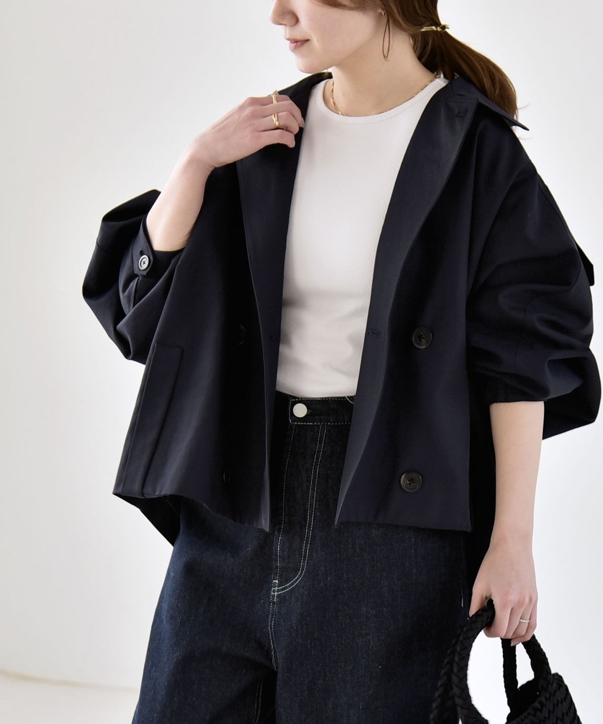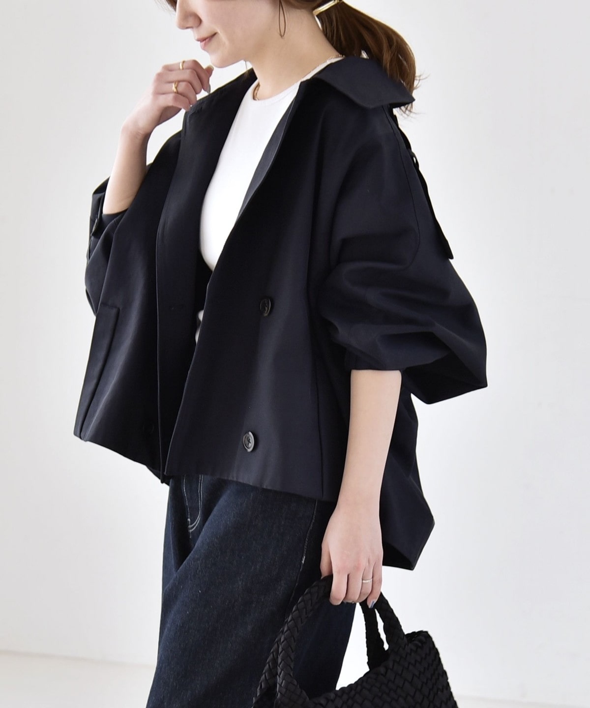 トレンチディテールをベースにアレンジした、ショート丈アウター。