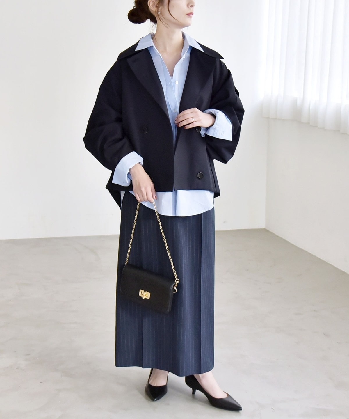 コンパクトな着丈なので、ワイドパンツなどボリュームのあるボトムと好バランス。
