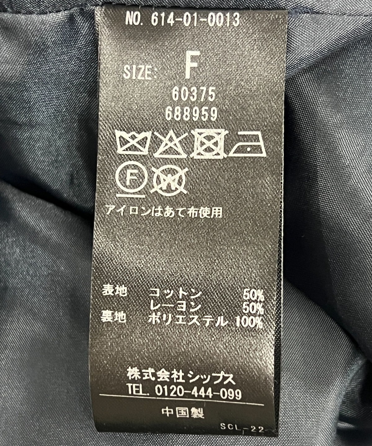 素材:表地: コットン50%, レーヨン50%, 裏地: ポリエステル100%