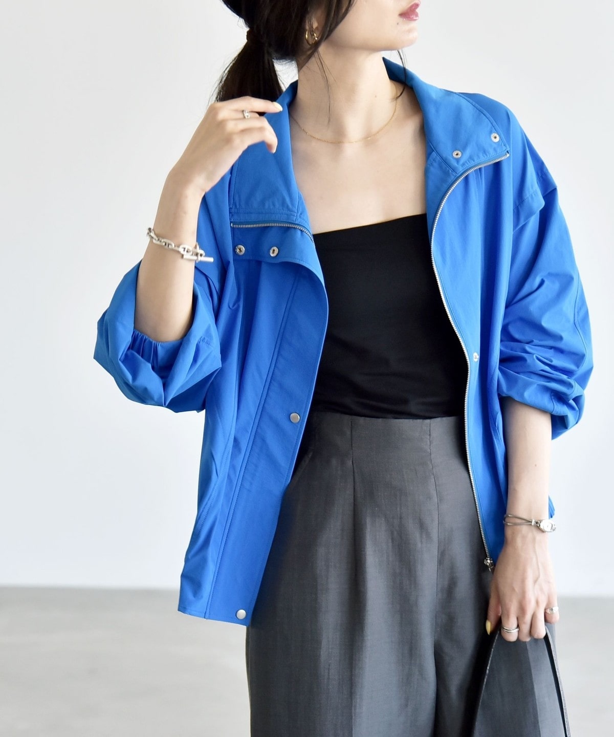 接触冷感、UVカット、撥水の機能がポイントのライトブルゾン。
