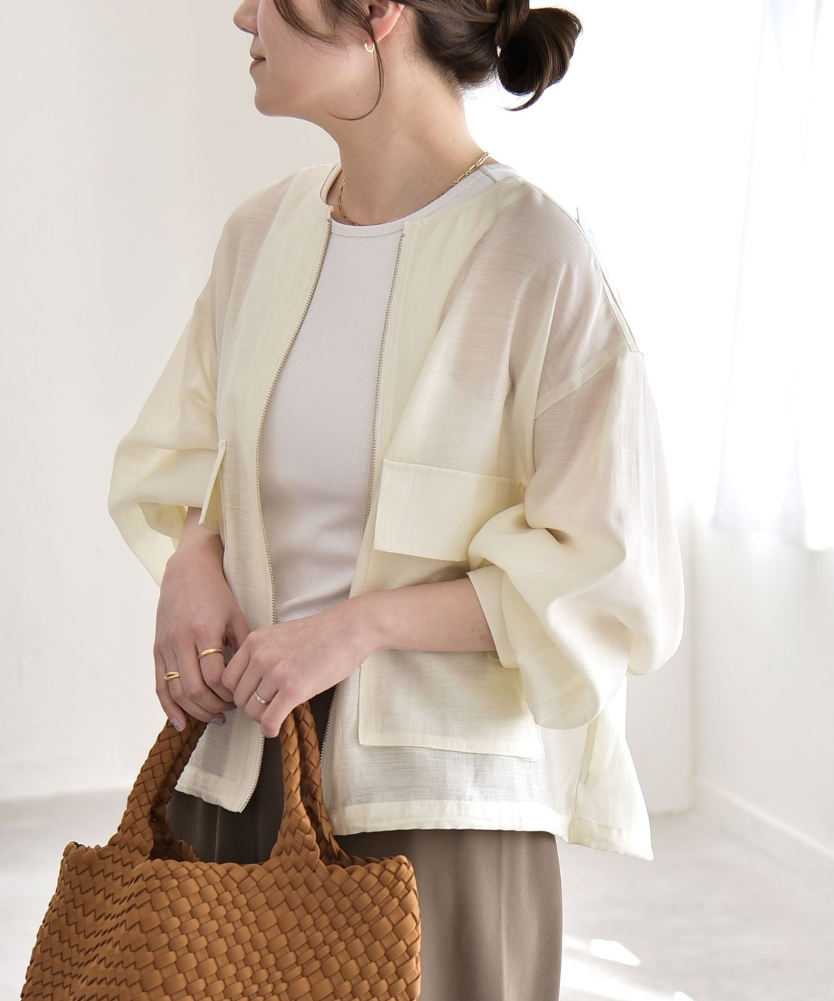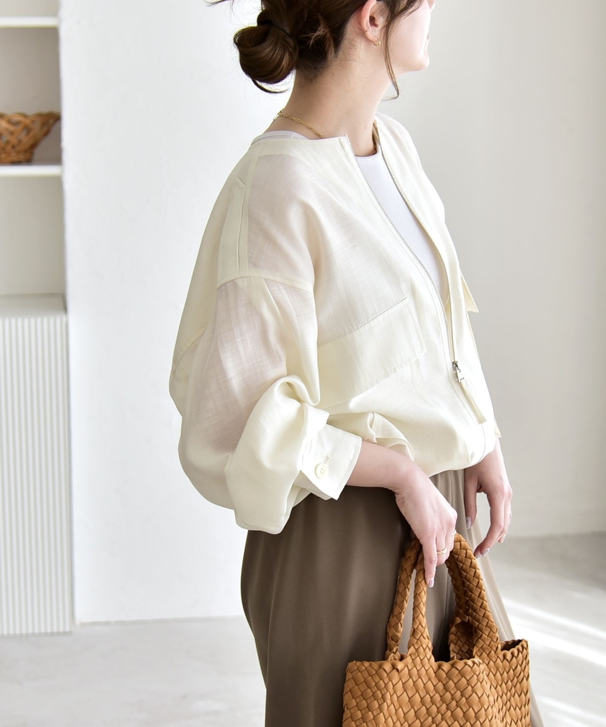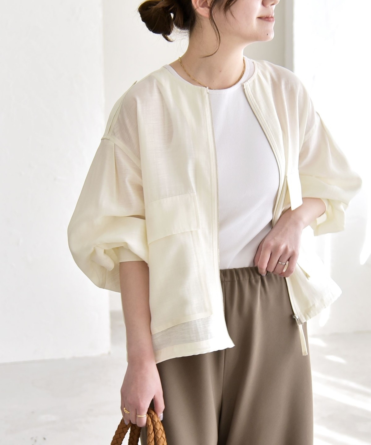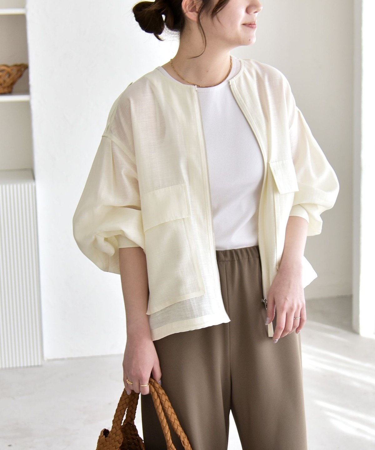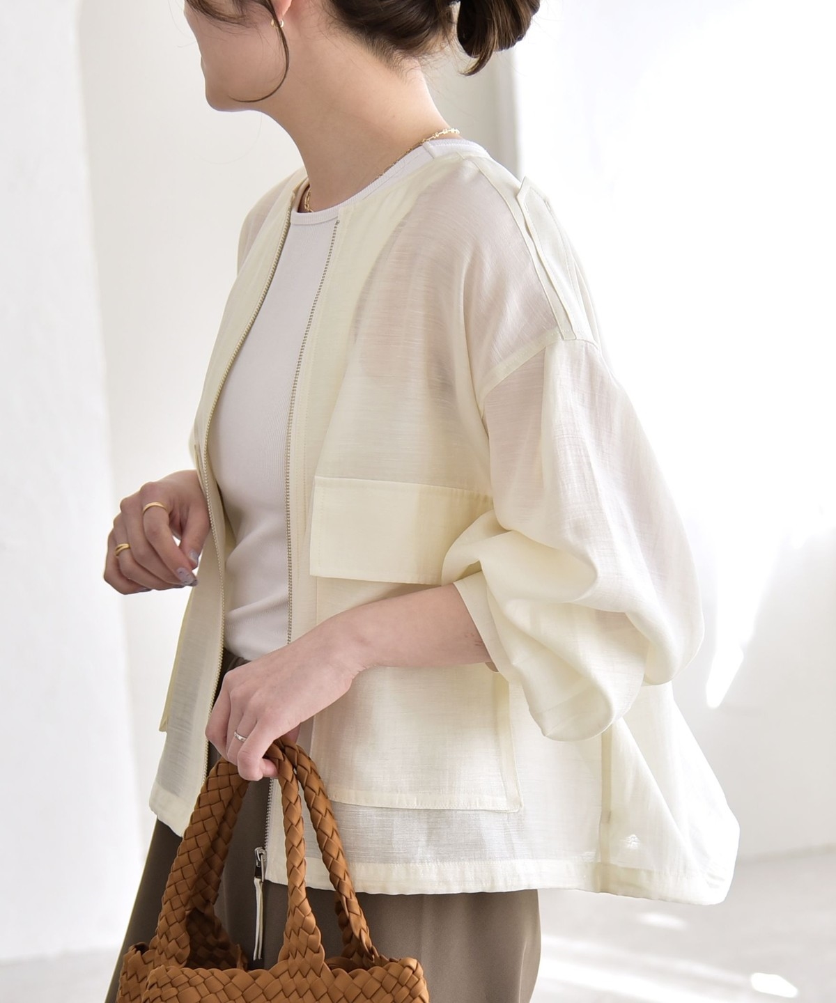 シャツ感覚でさらっと軽く羽織れる、ショート丈のシアージップブルゾン。
