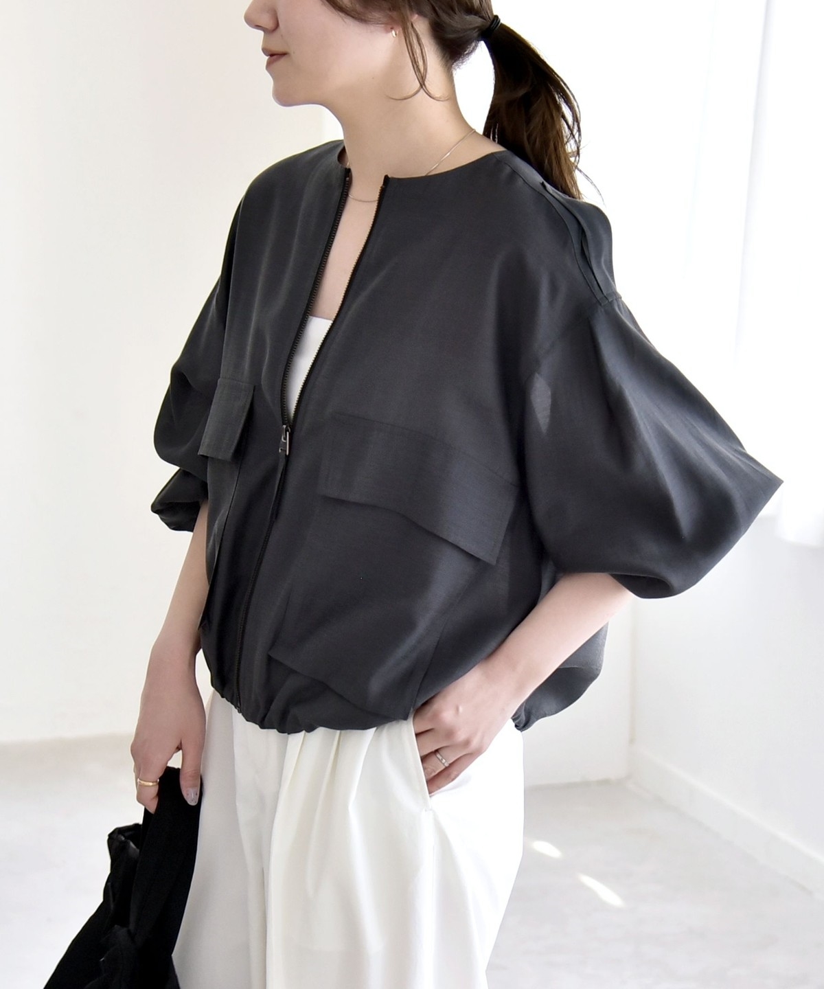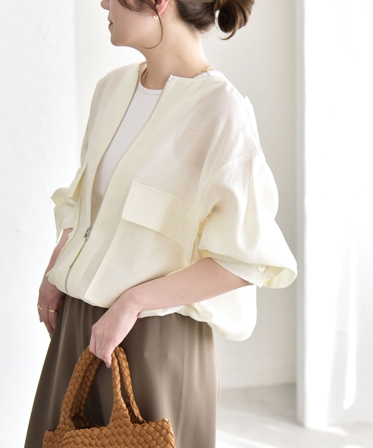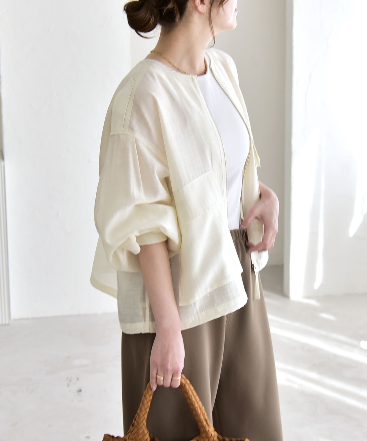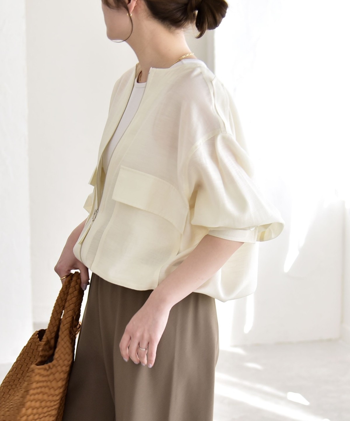 シャツ感覚でさらっと軽く羽織れる、ショート丈のシアージップブルゾン。