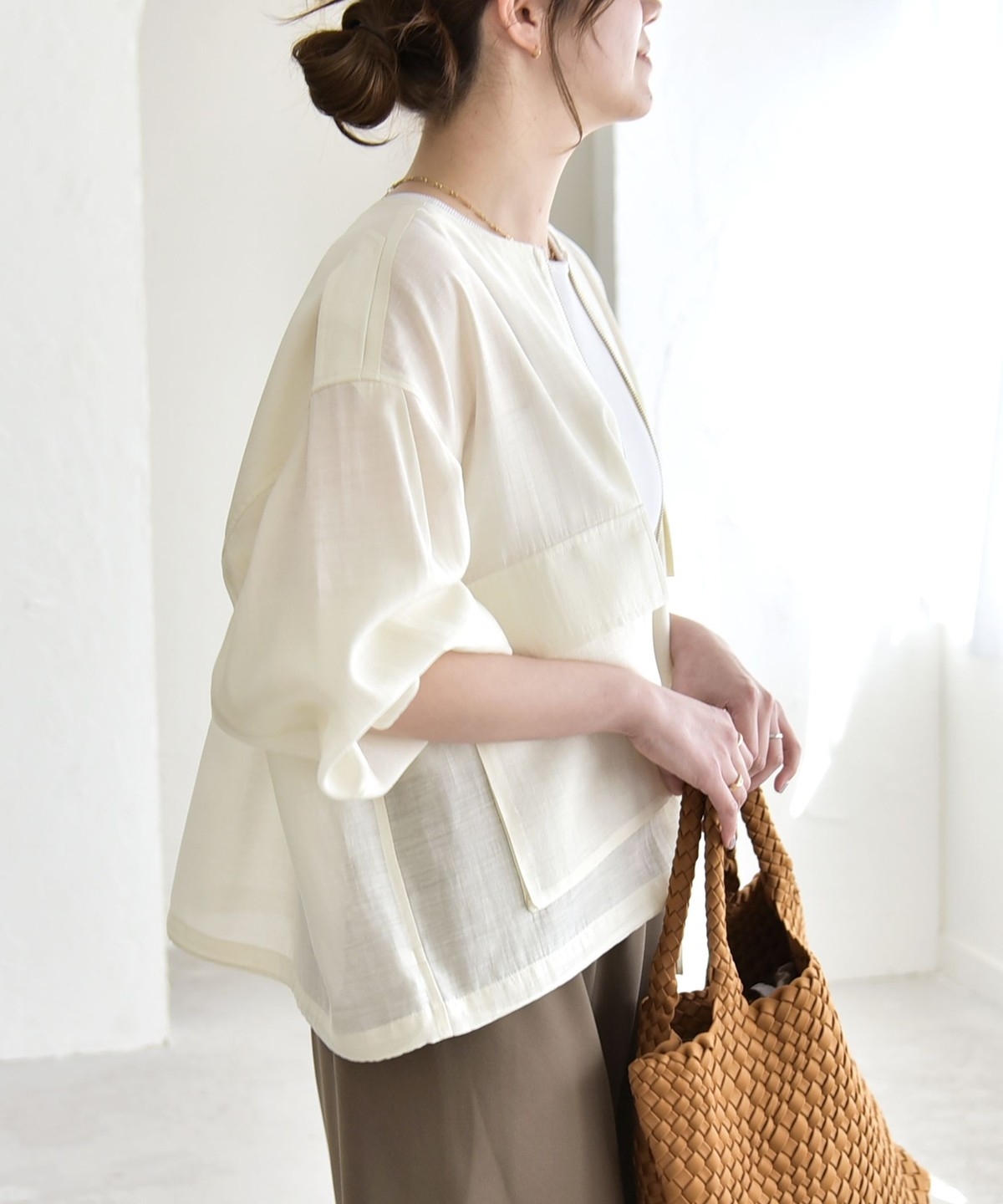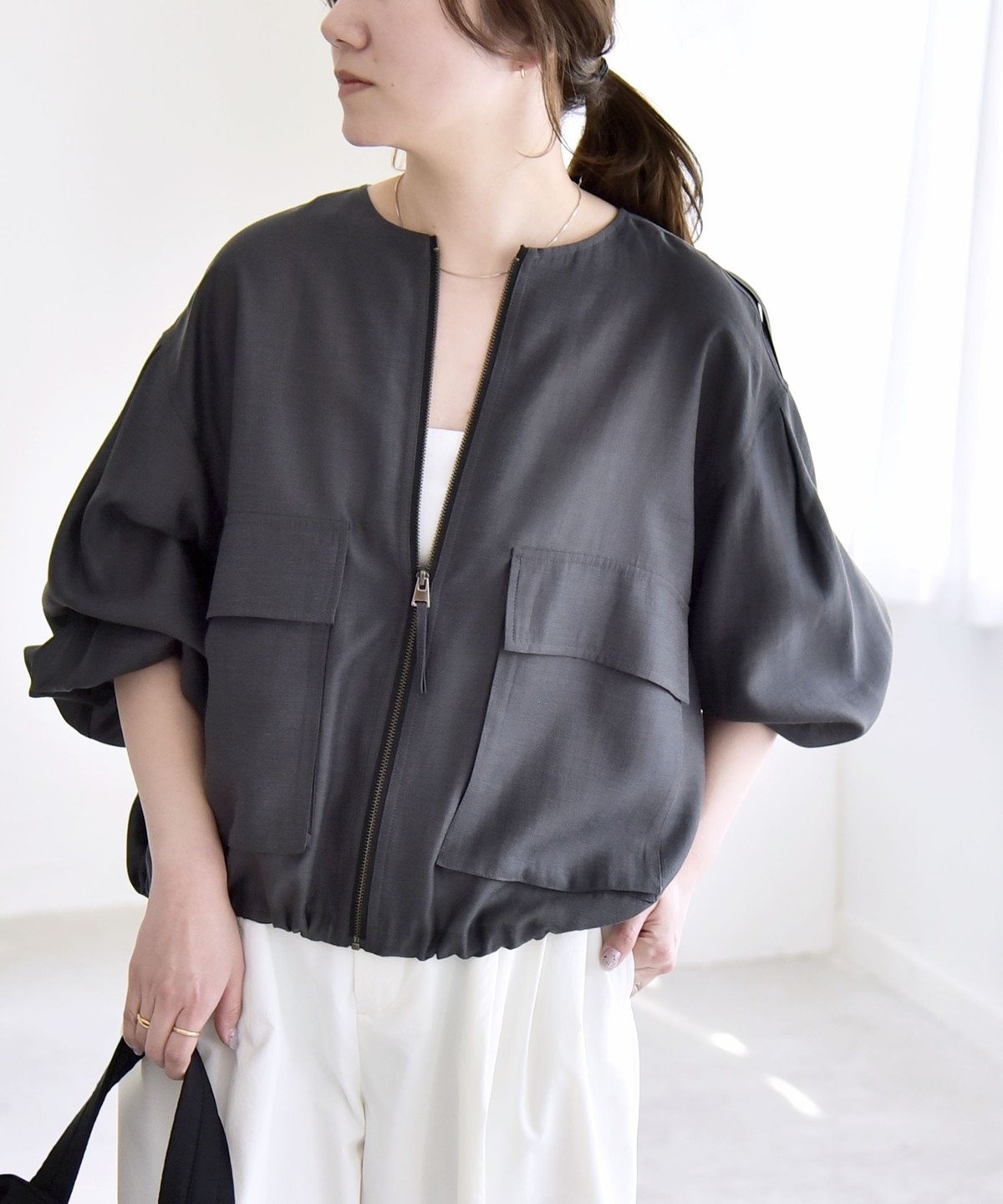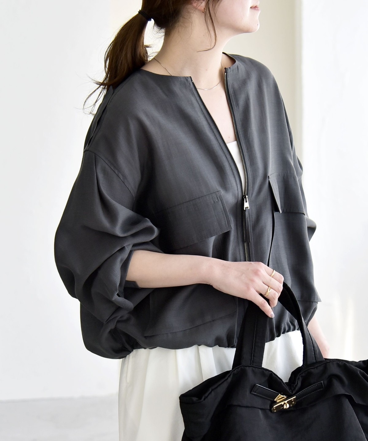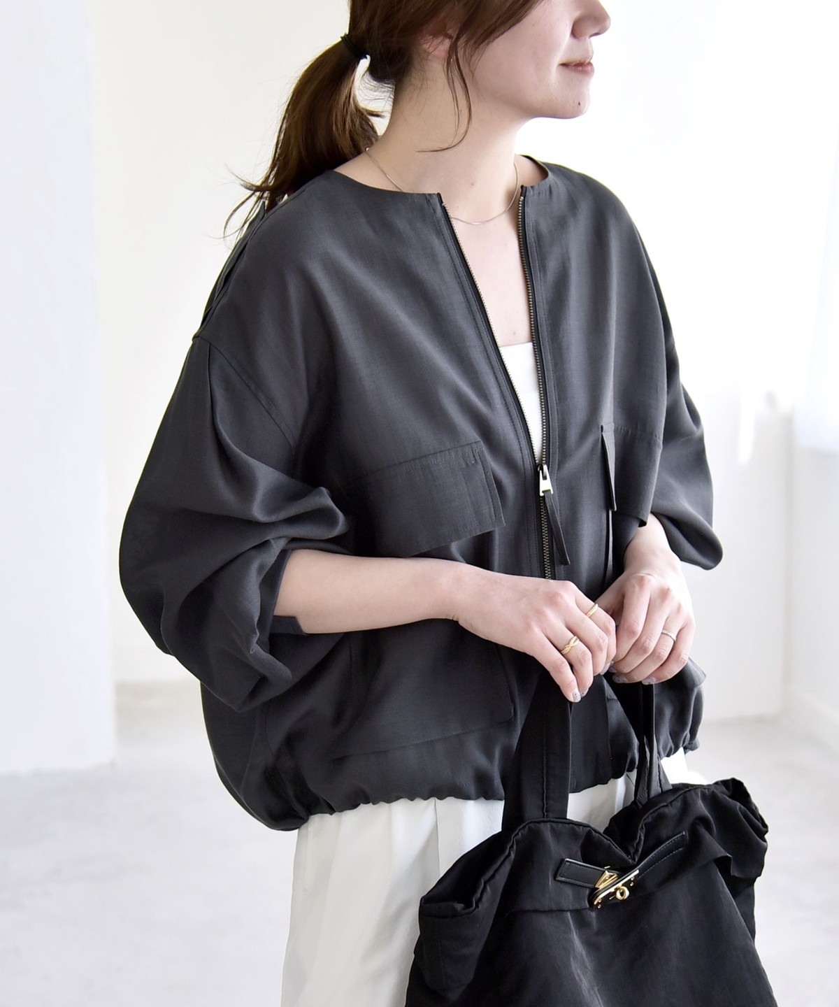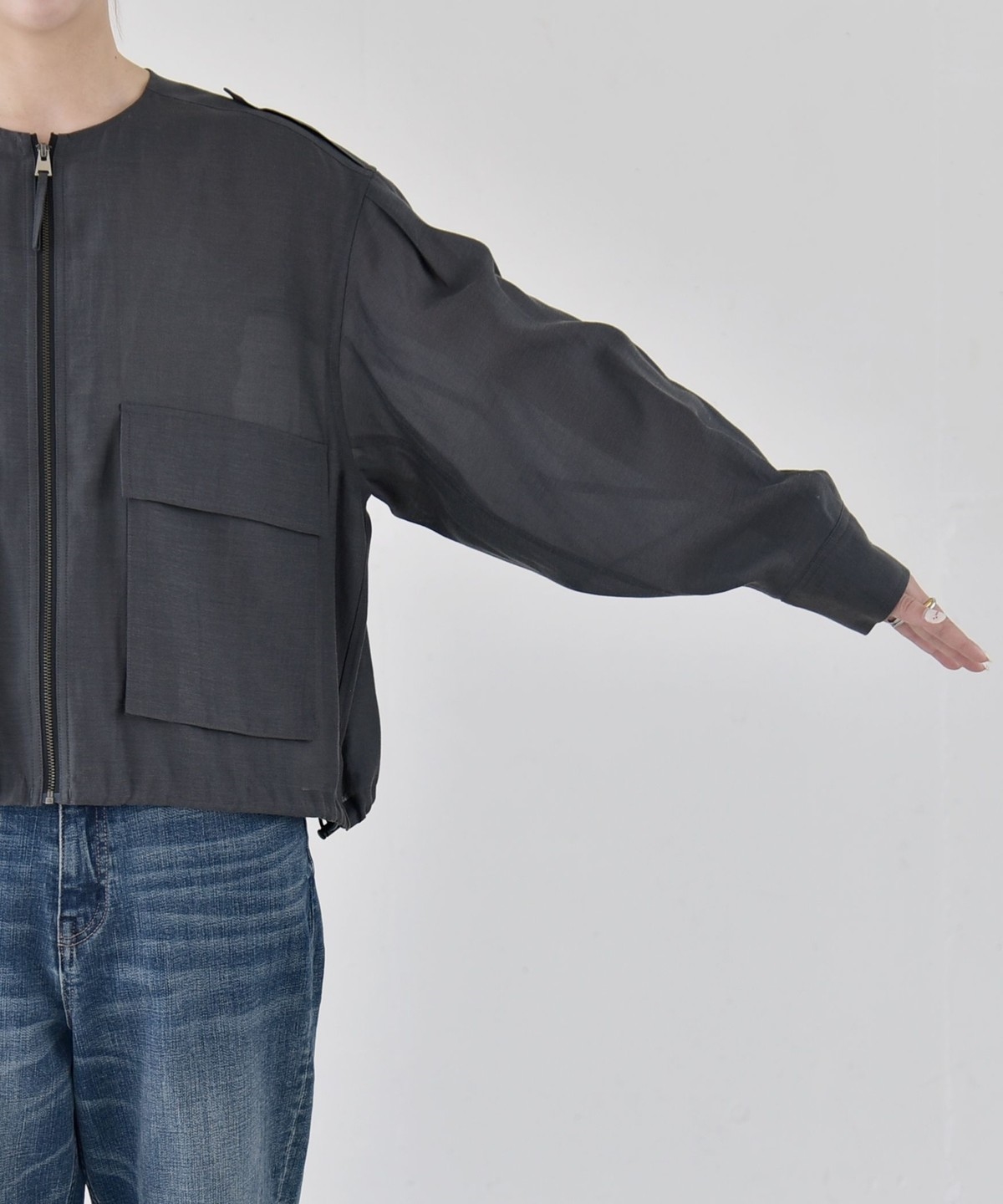 シャツ感覚でさらっと軽く羽織れる、ショート丈のシアージップブルゾン。