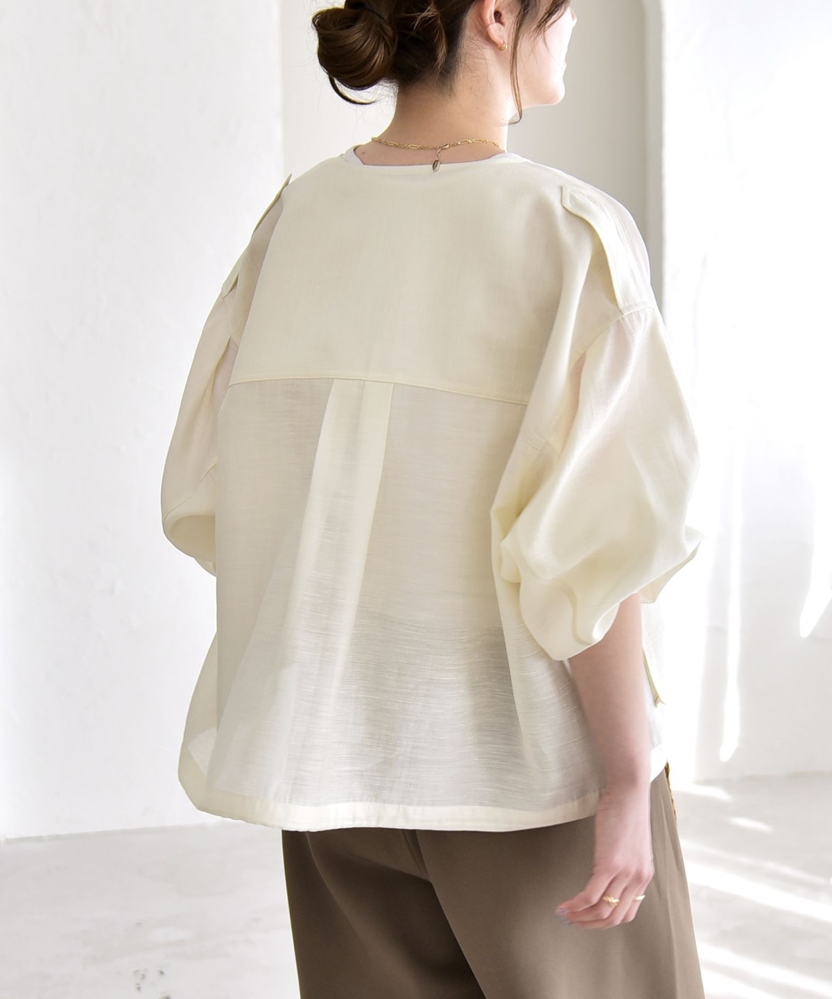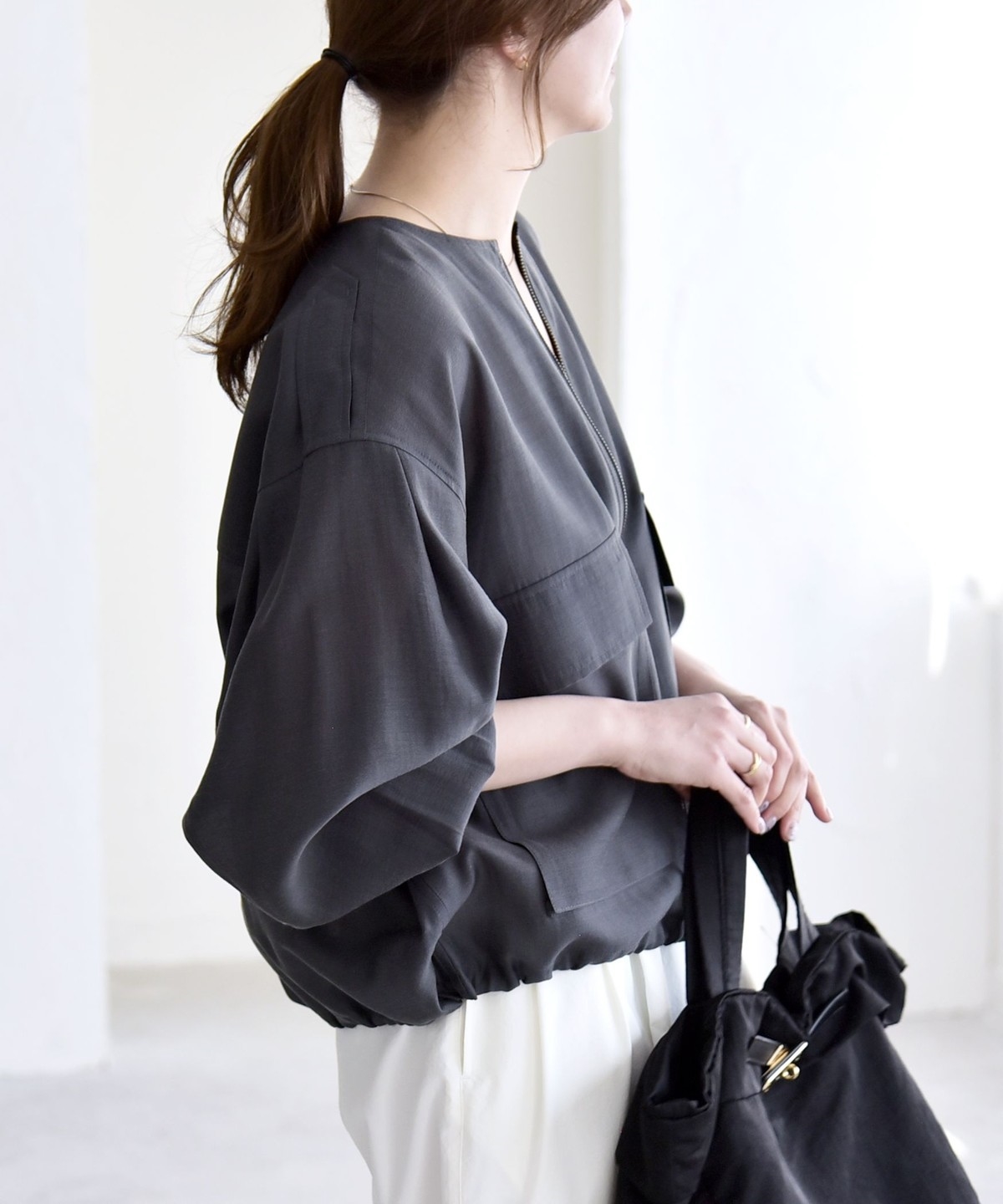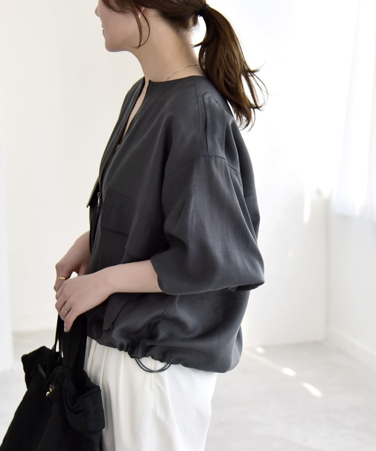《予約》quaranciel:〈手洗い可能〉リネン ミックス ノーカラー ドロスト ブルゾン