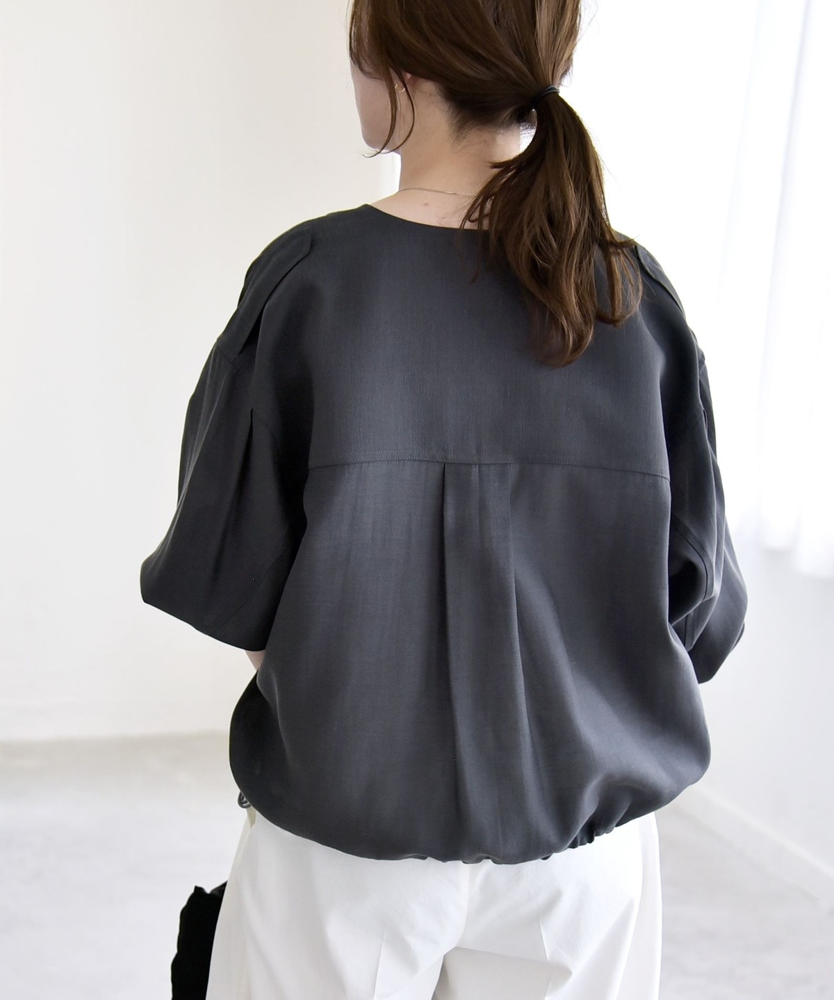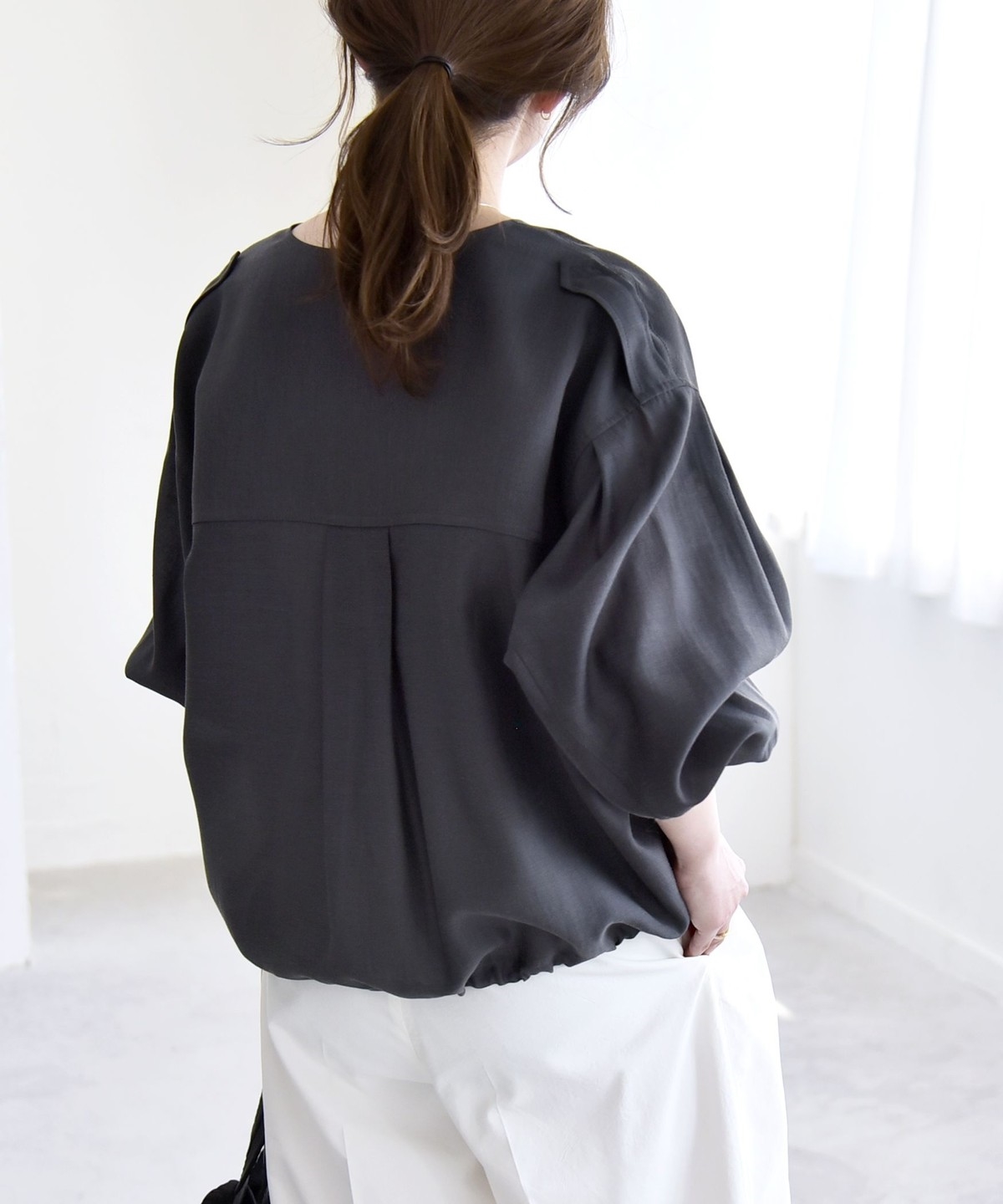 裾に入れたドローコードをきゅっと絞ると丸みのあるコクーンシルエットになり、気分やスタイルに合わせて2way感覚で楽しめます。