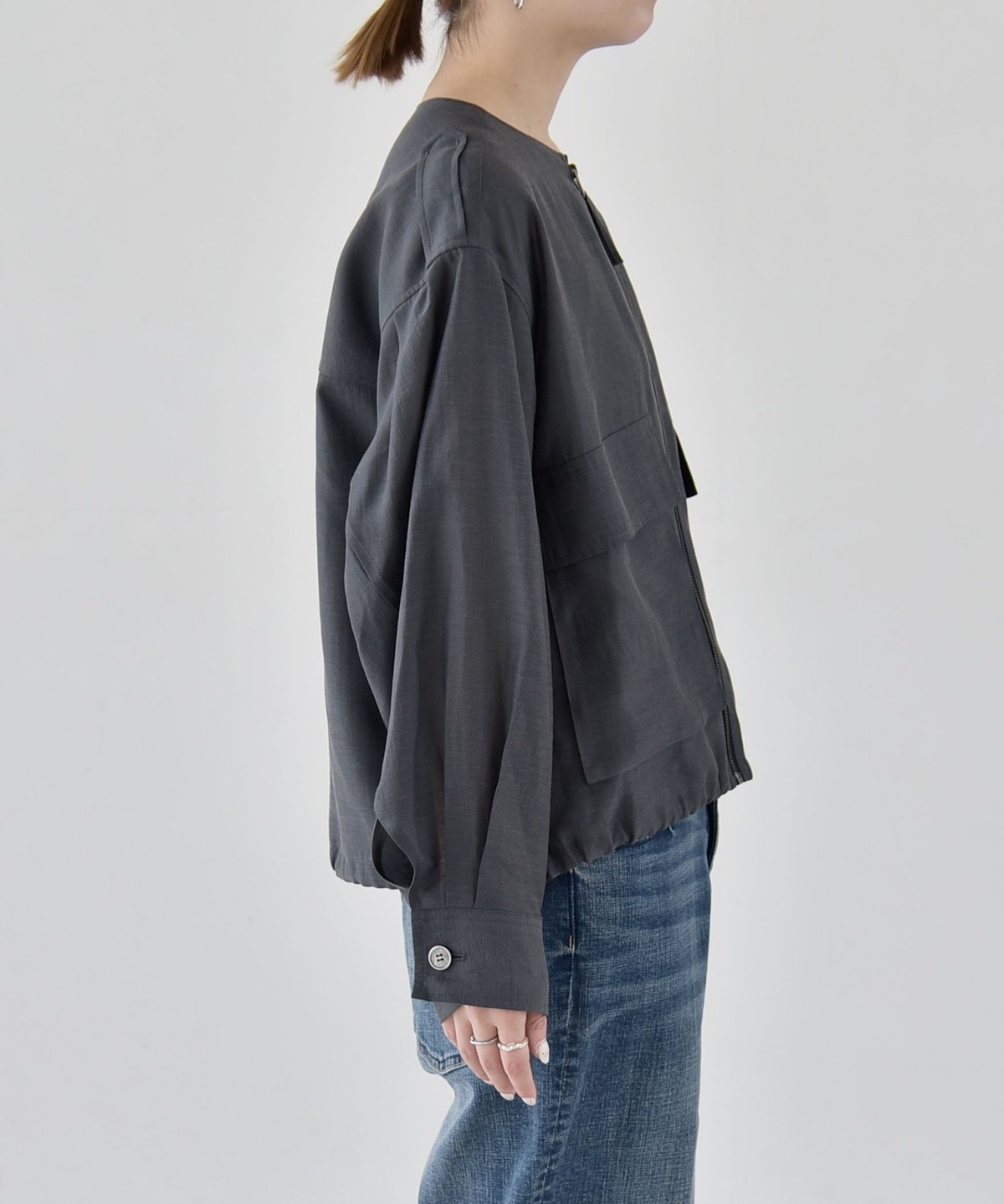 《追加予約》quaranciel:〈手洗い可能〉リネン ミックス ノーカラー ドロスト ブルゾン