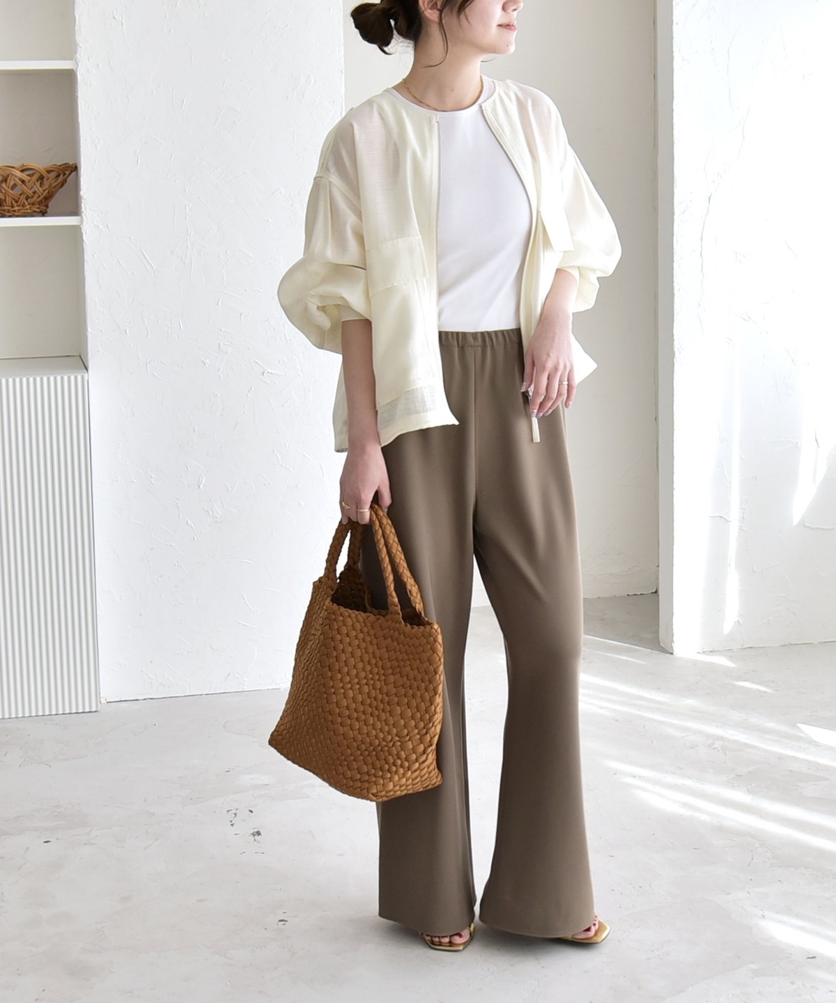 裾をドロストさせる時は、前を閉じてトップス感覚で着ると◎