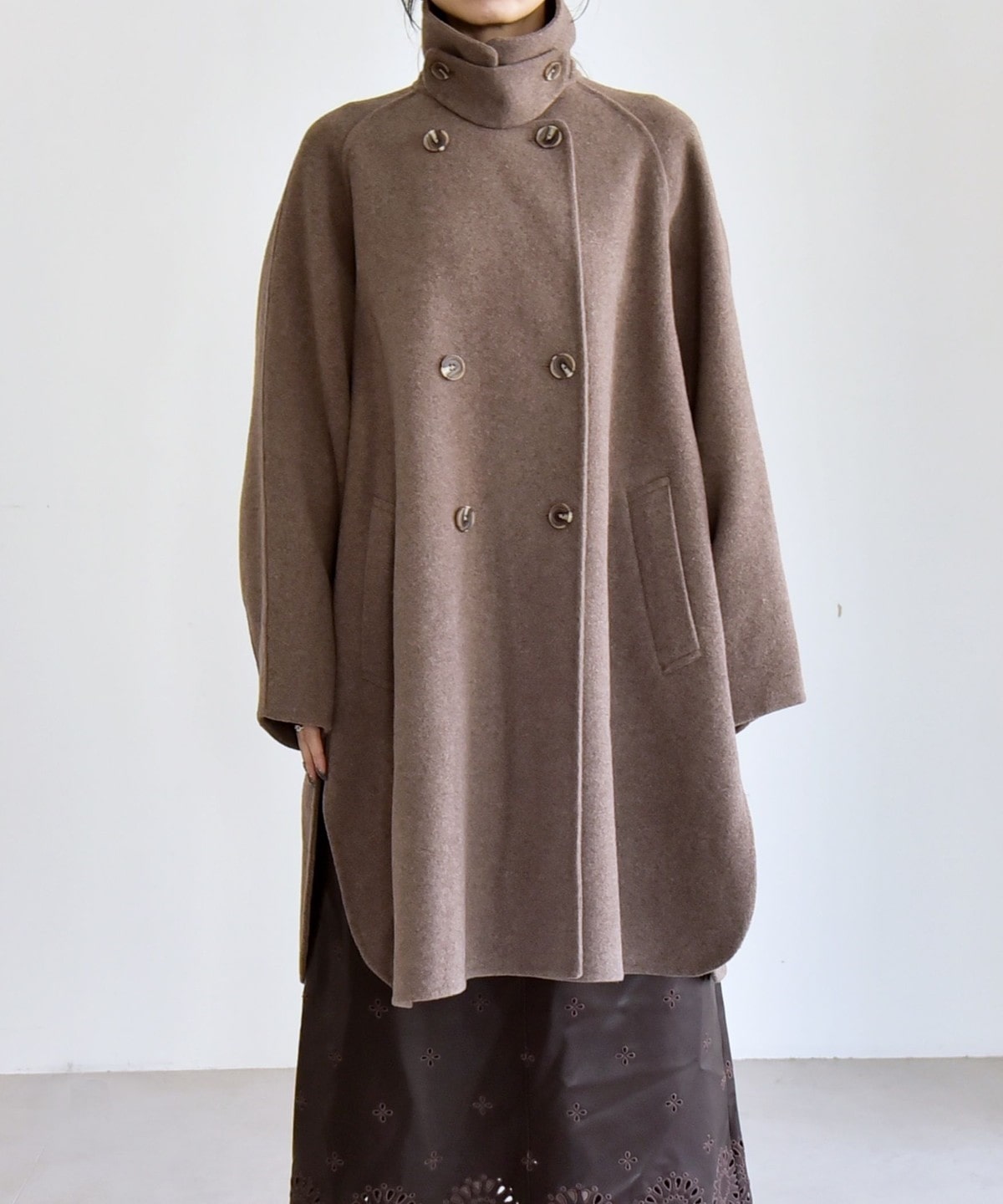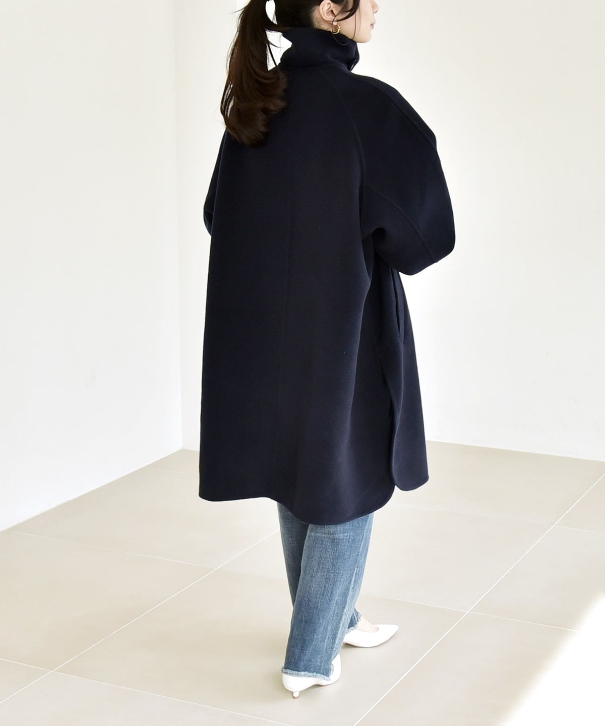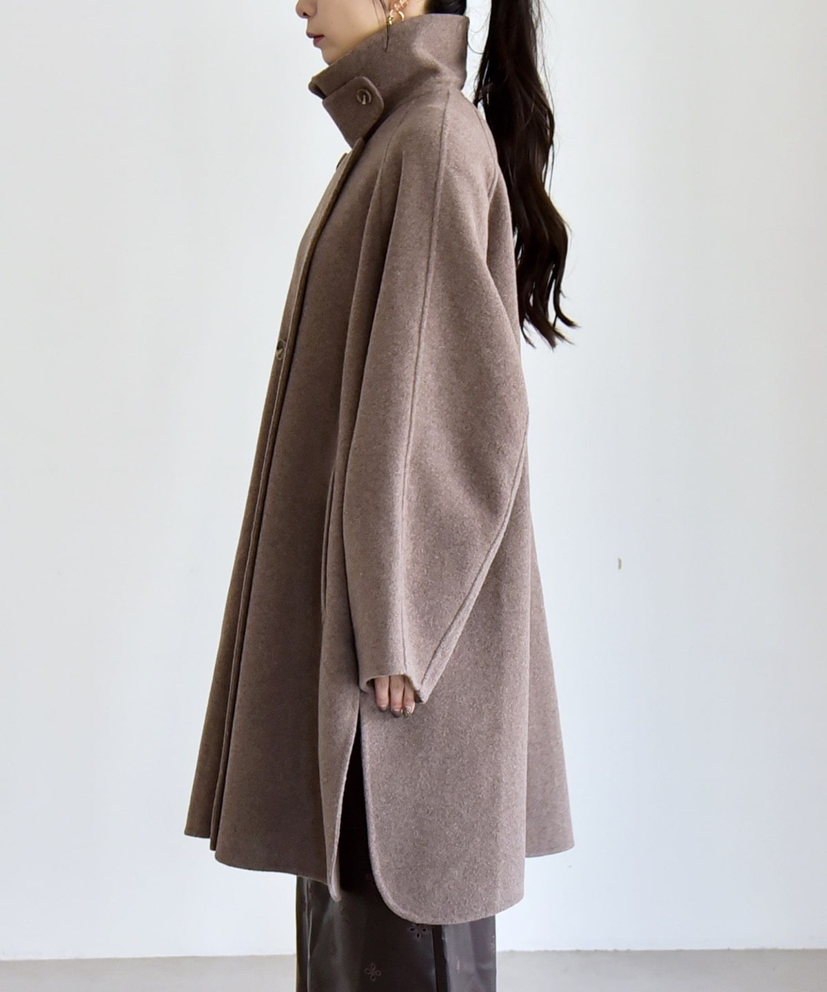 気分やスタイルによって着方を変えられる、スタンドカラー&テーラード襟のコート。