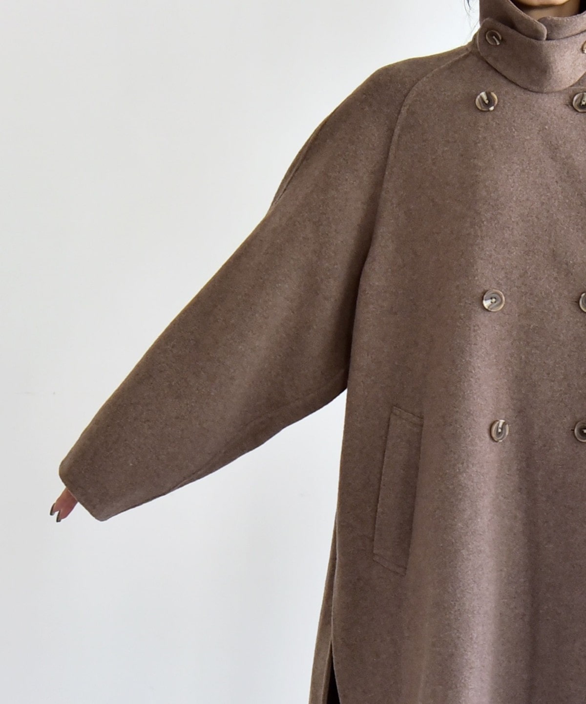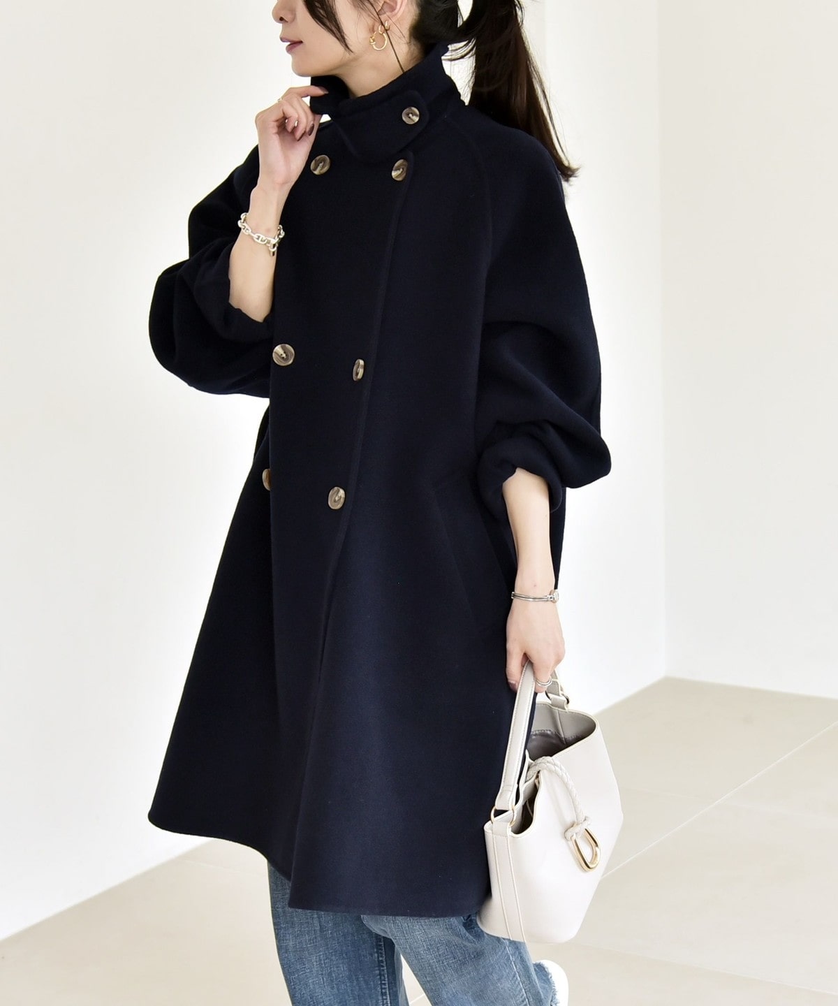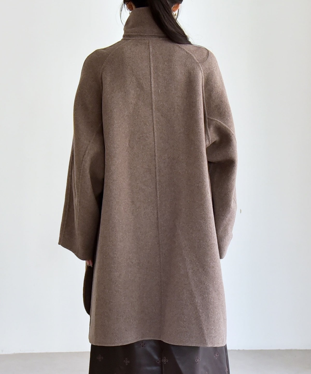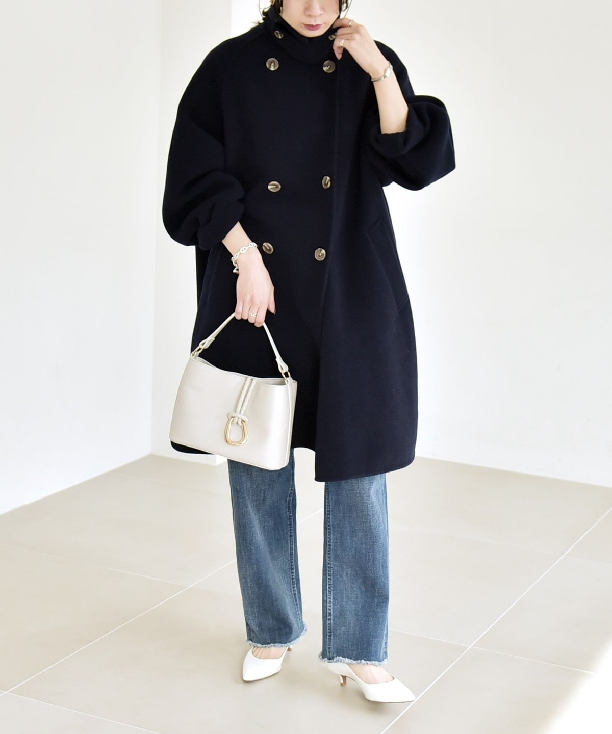 気分やスタイルによって着方を変えられる、スタンドカラー&テーラード襟のコート。