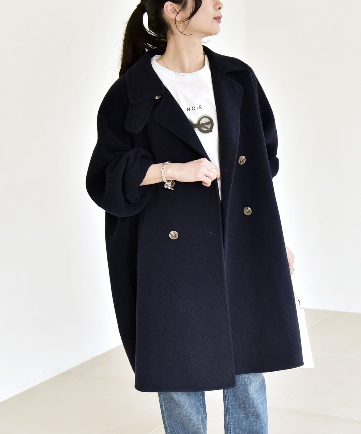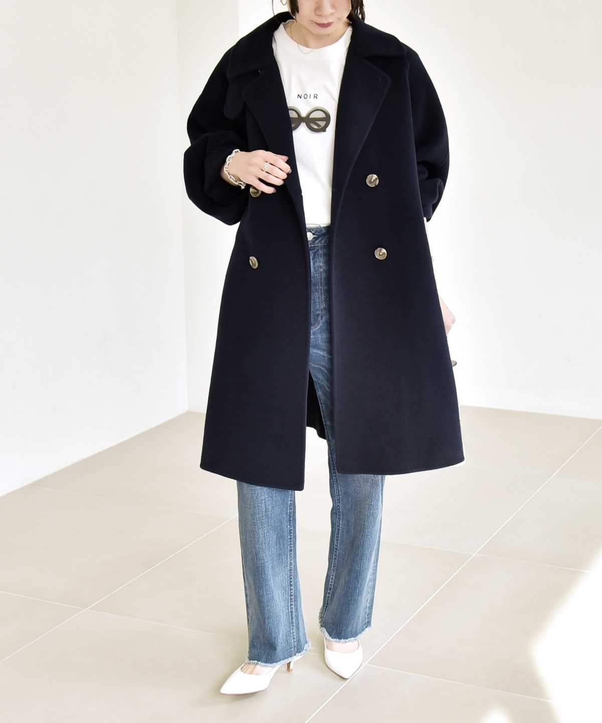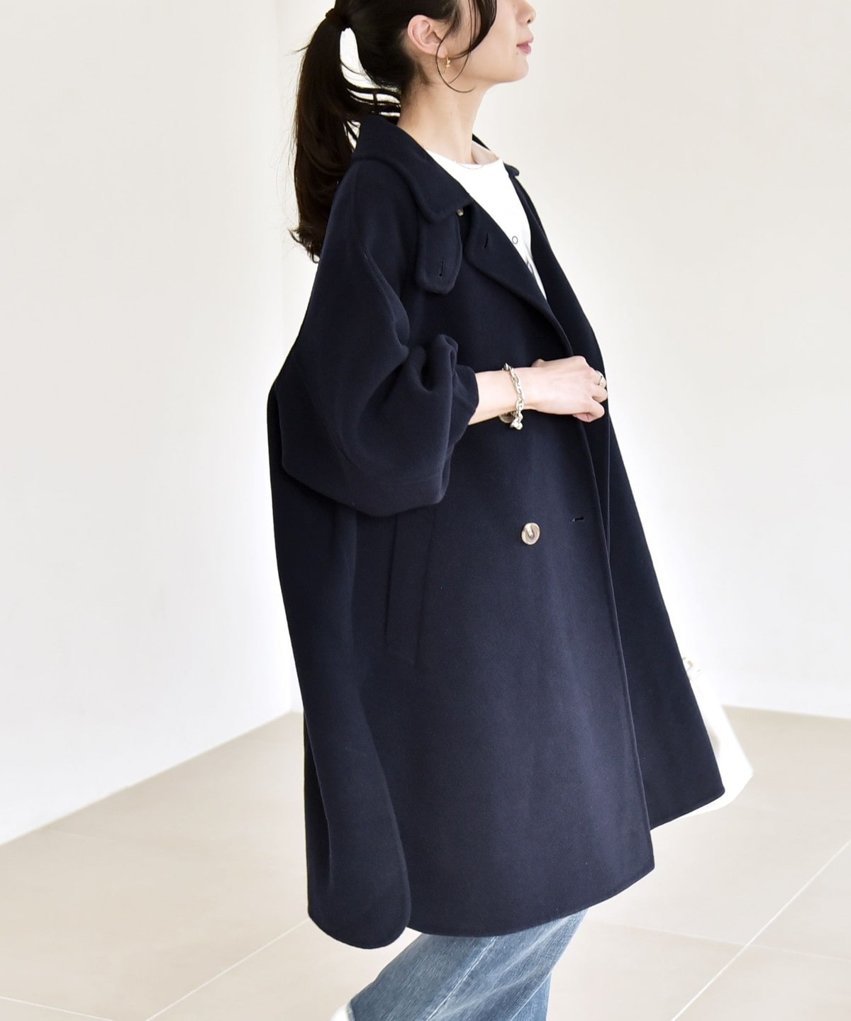《一部追加予約》quaranciel: リバー スタンド & テーラード ダブルブレスト Aライン コート
