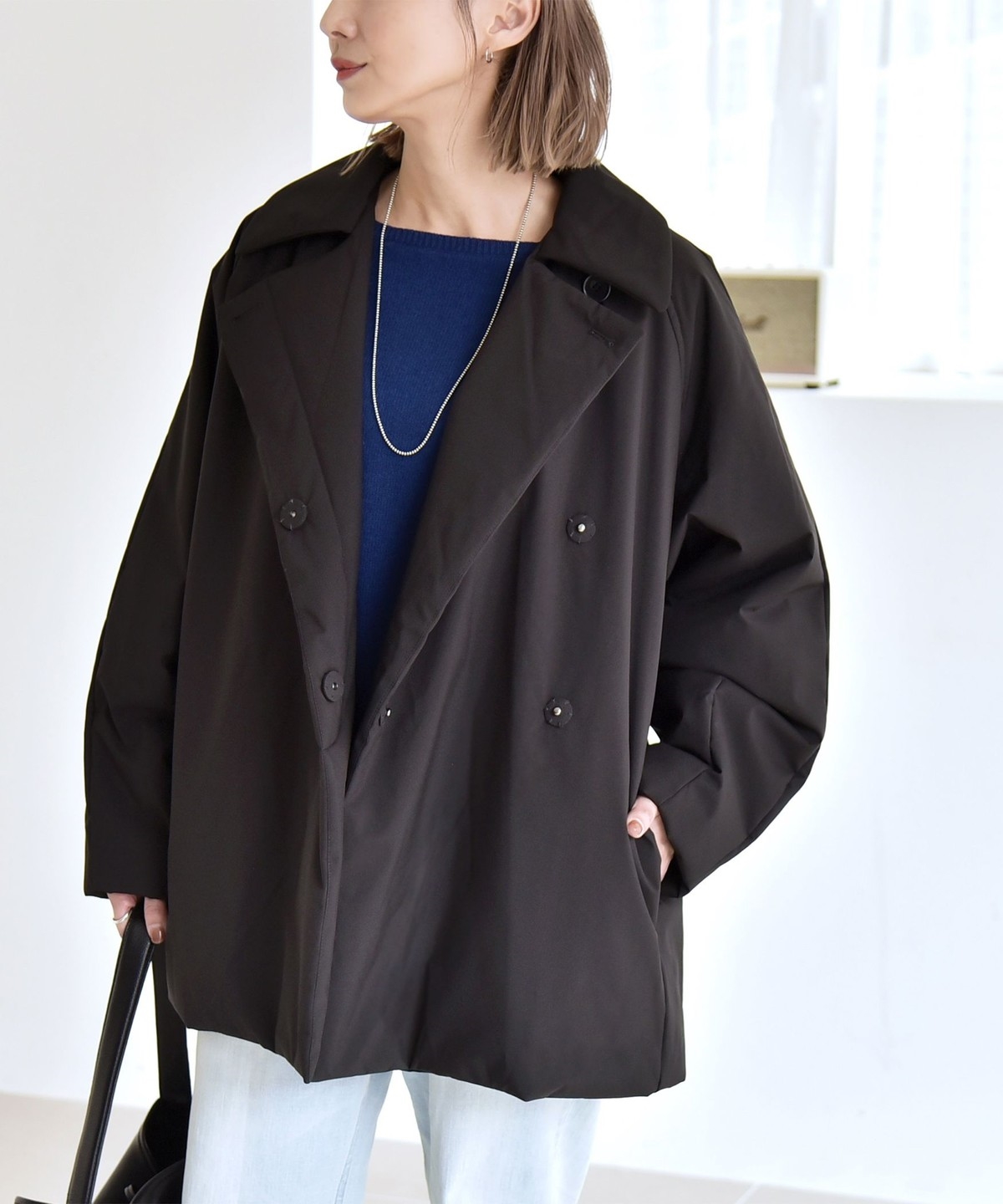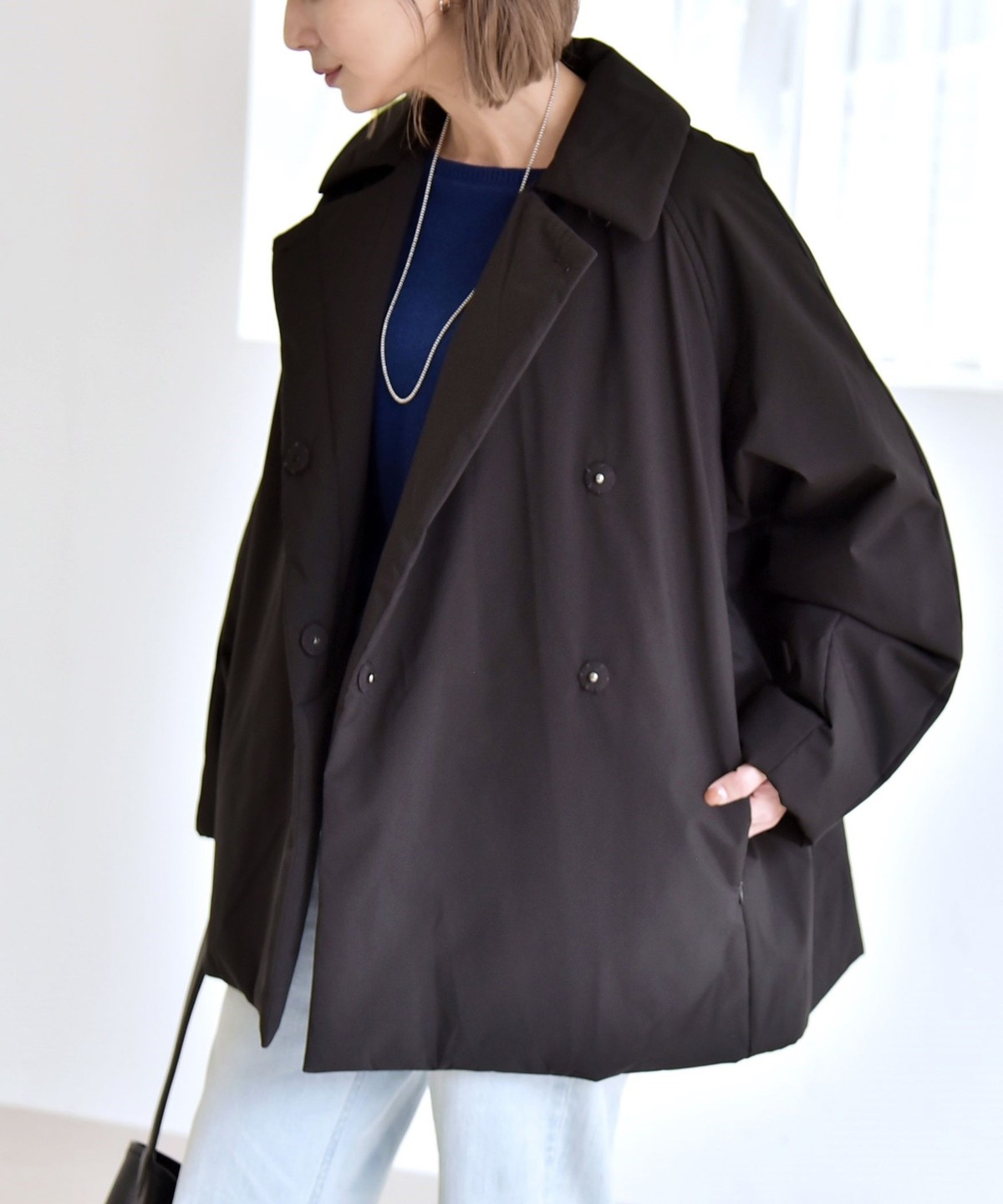 24. quaranciel:〈撥水加工〉中綿 テーラード ミドル Wボタン ジャケット コート