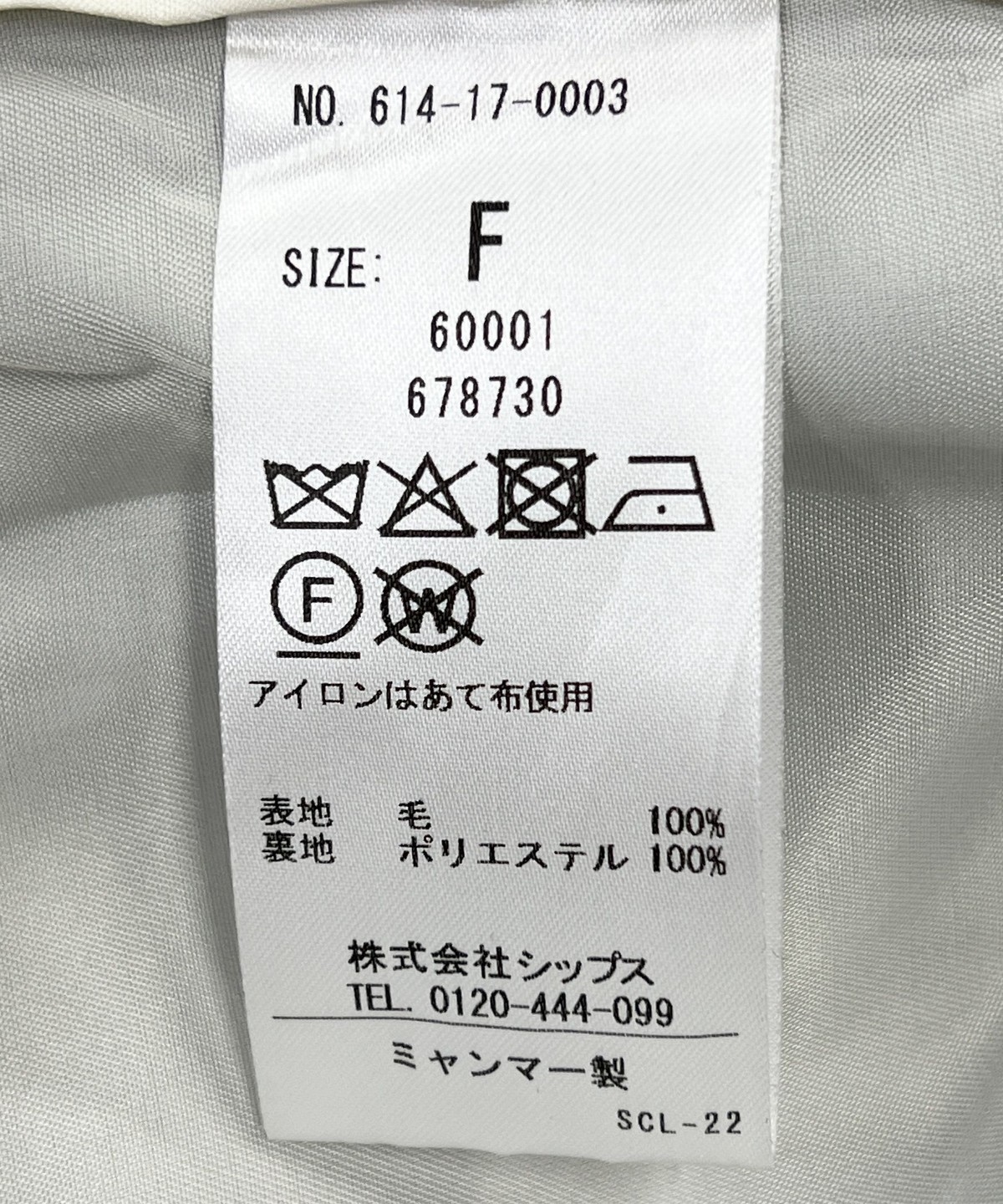 素材:表地: 毛100%, 裏地: ポリエステル100%