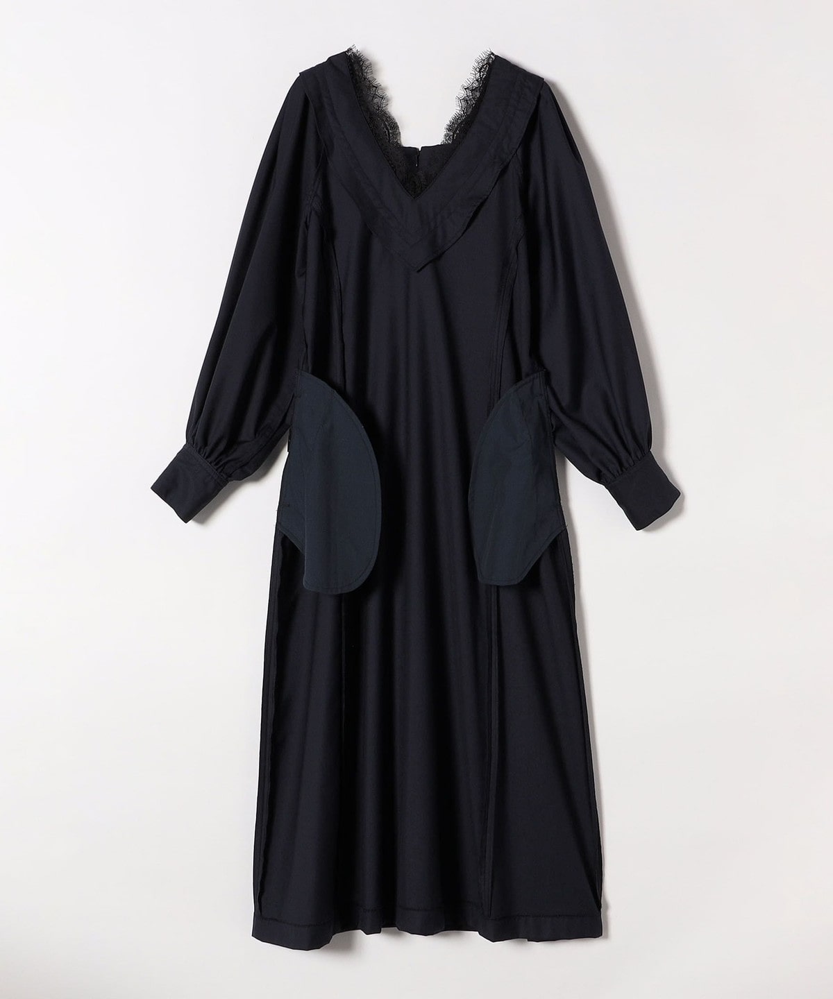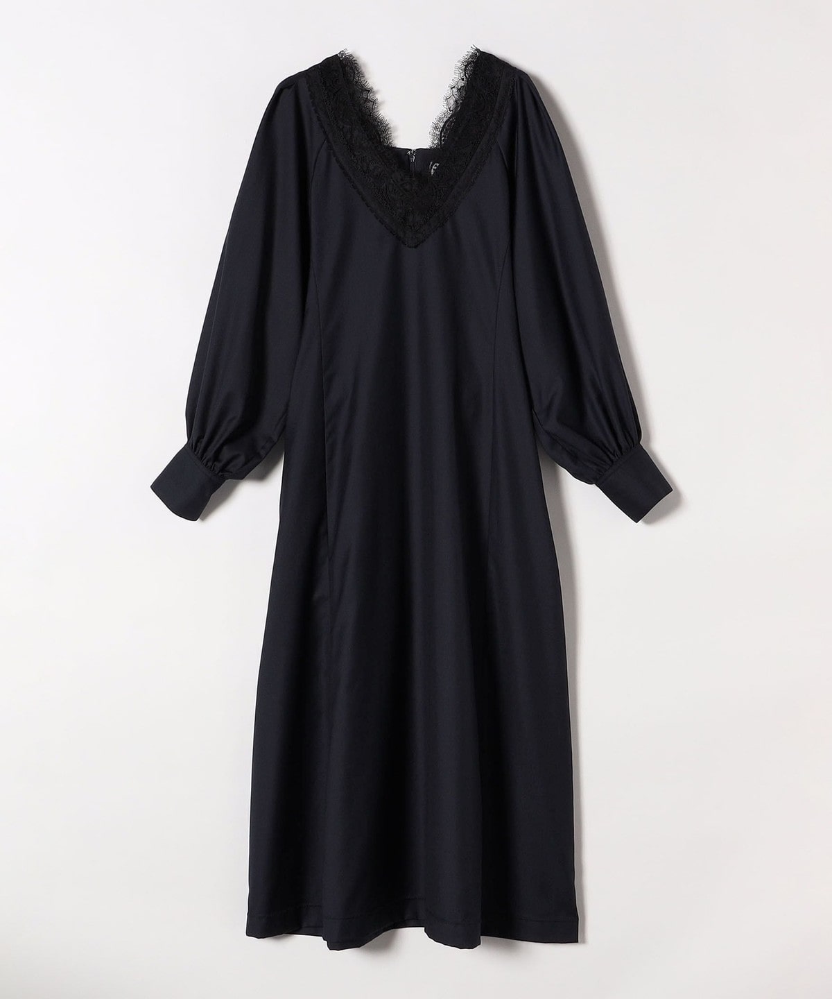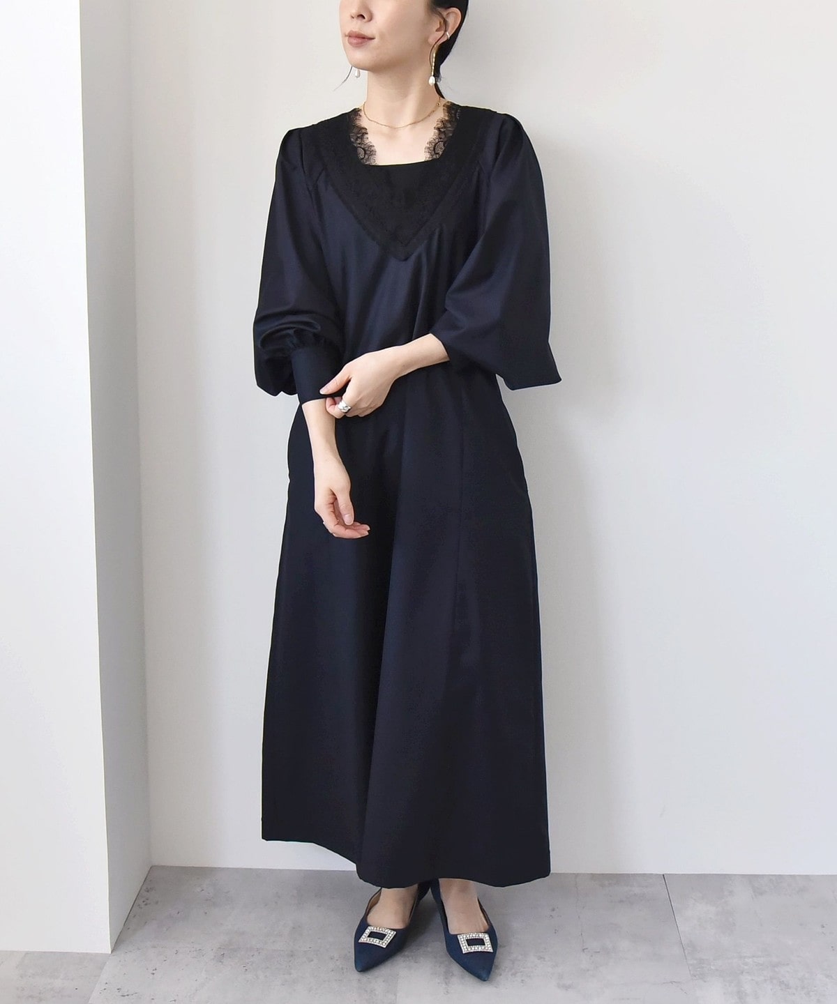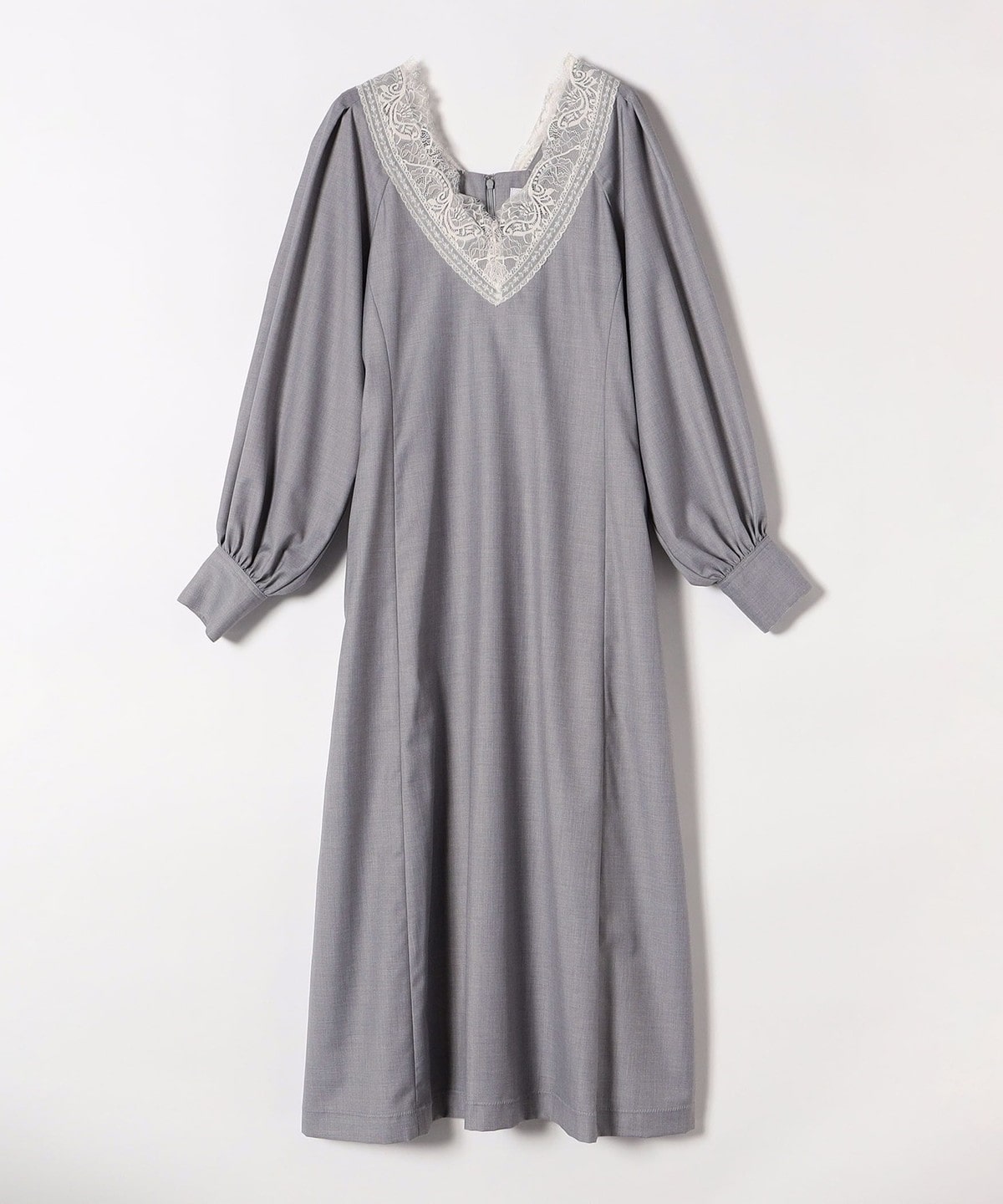 衿まわりに繊細なレースを使用した、大人フェミニンなワンピース。