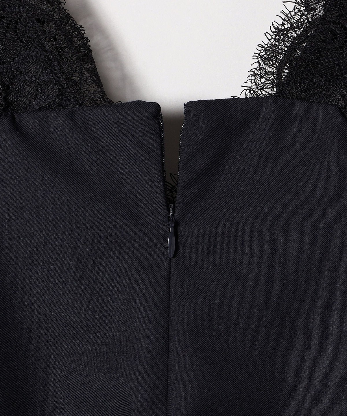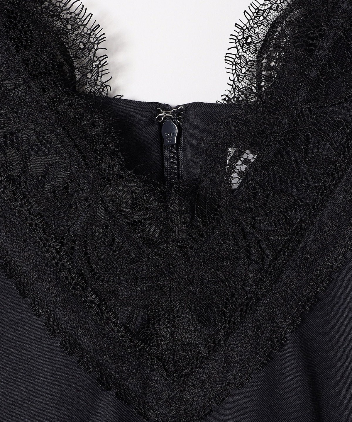 フロントは深めなVネックに合わせて2種類のレースをトリミング。