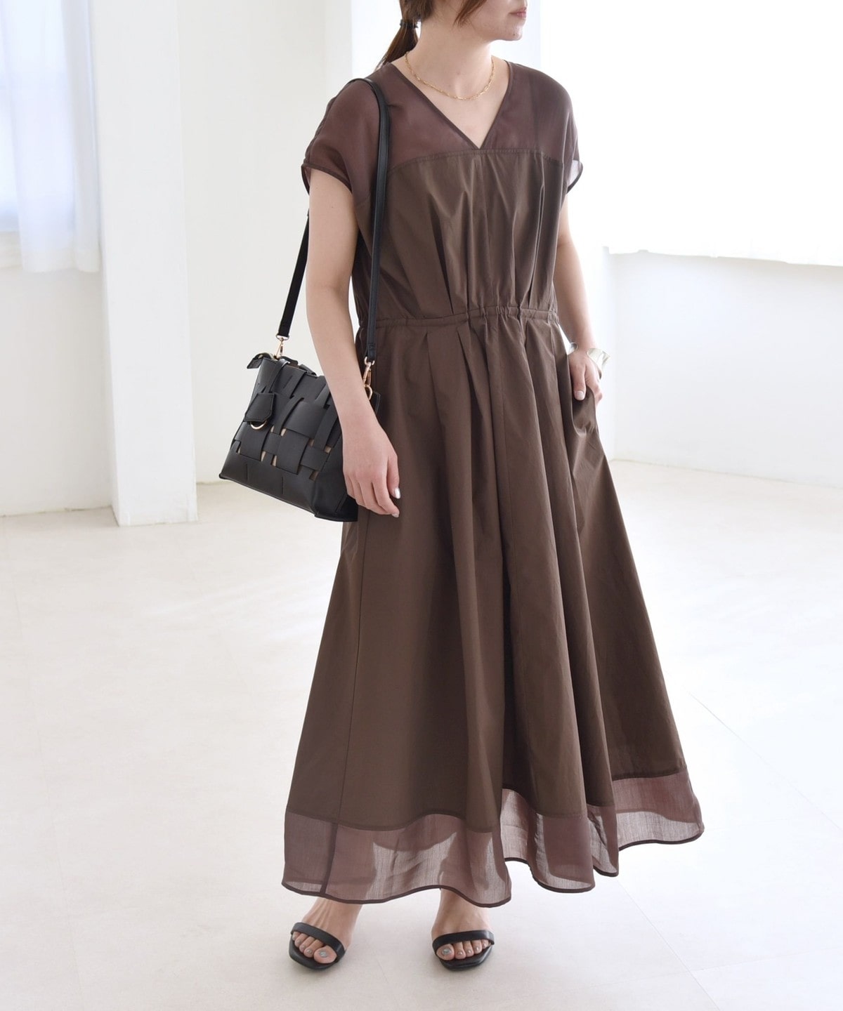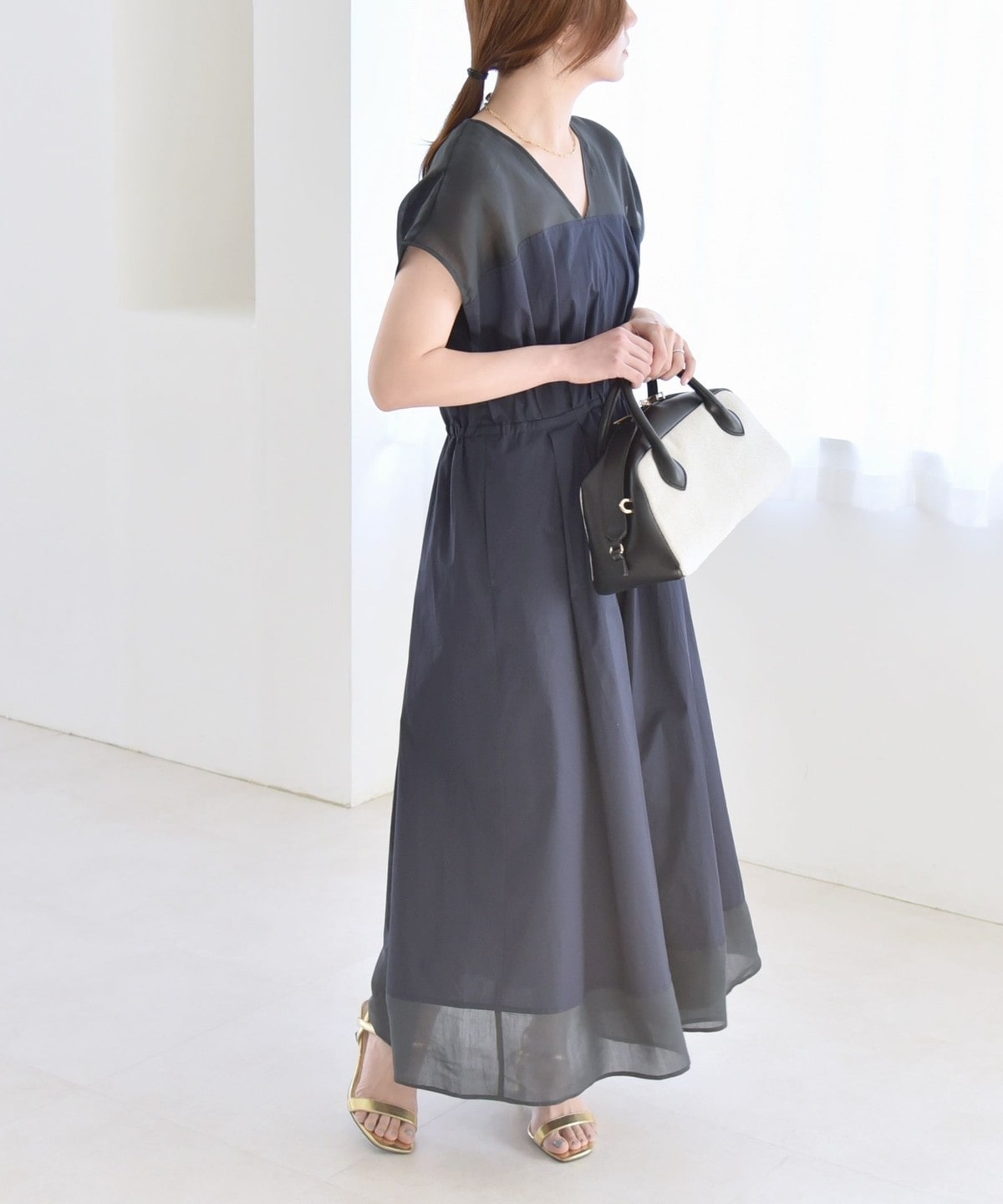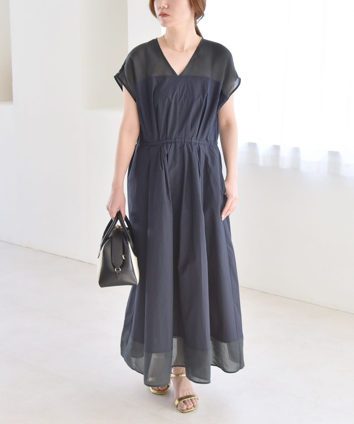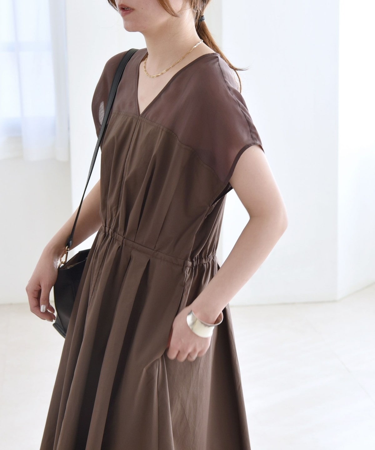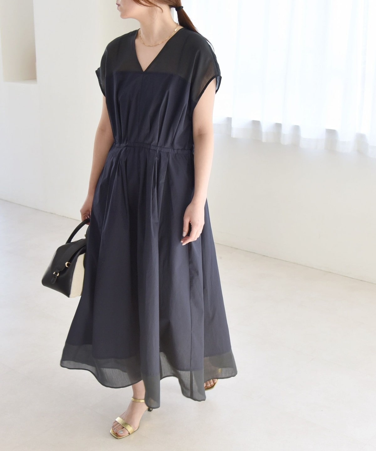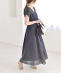 quaranciel:〈洗濯機可能〉シアー ストライプ ギャザーフレア スカート & ブラウス セット