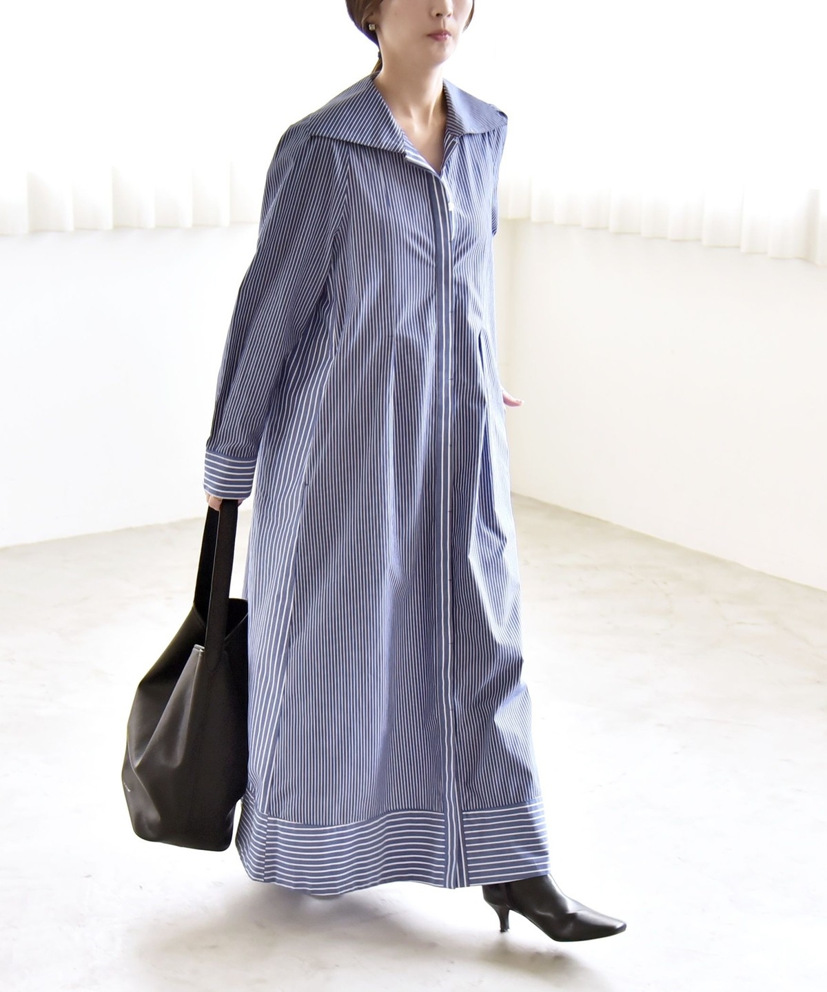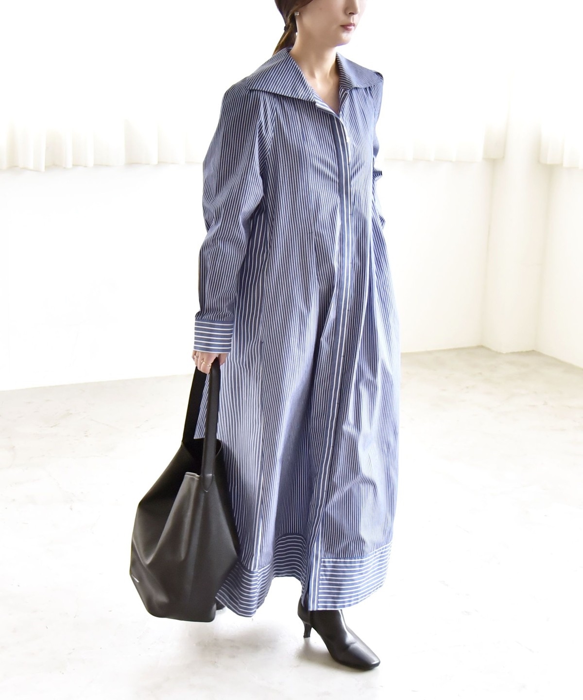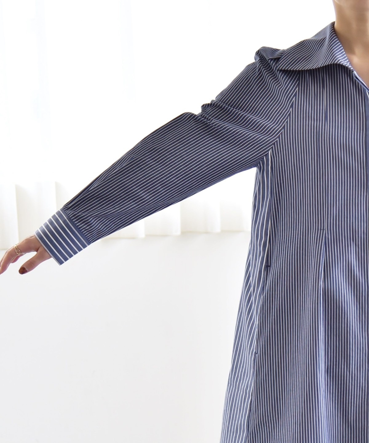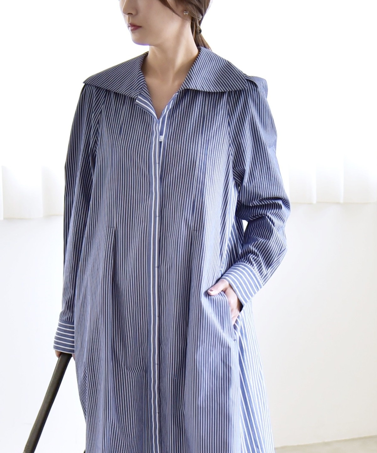 《予約》quaranciel:〈洗濯機可能〉ビッグカラー Aライン シャツ ワンピース