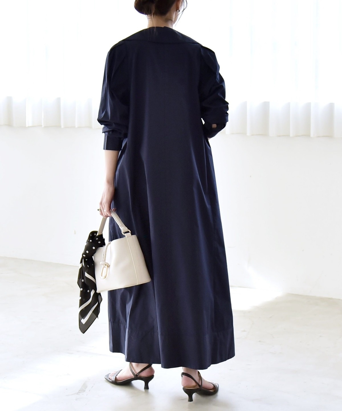 ショルダー部分にはタックを施し、構築的でモードな印象もプラス。