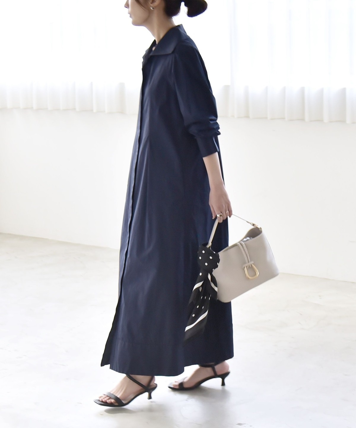 一枚で完成する主役級ワンピースですが、小物合わせ次第で雰囲気を変えて着られます。