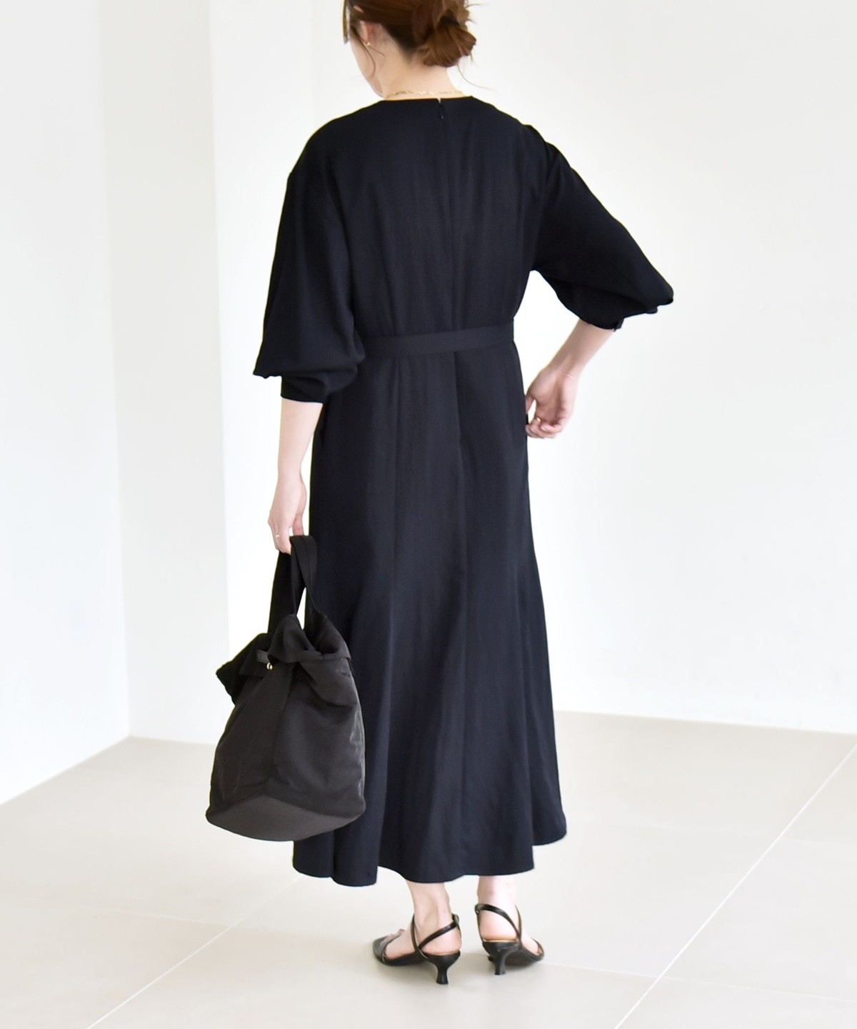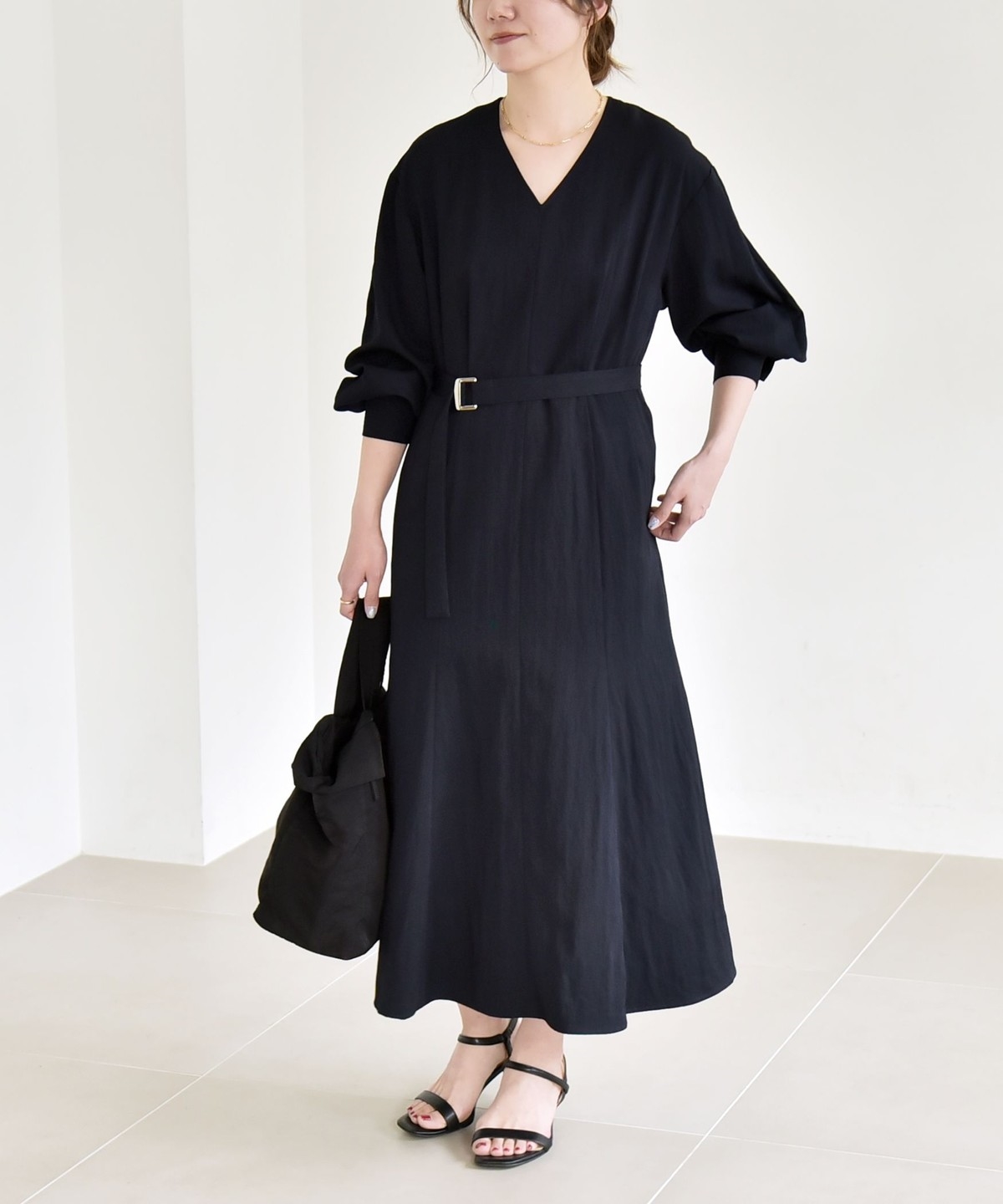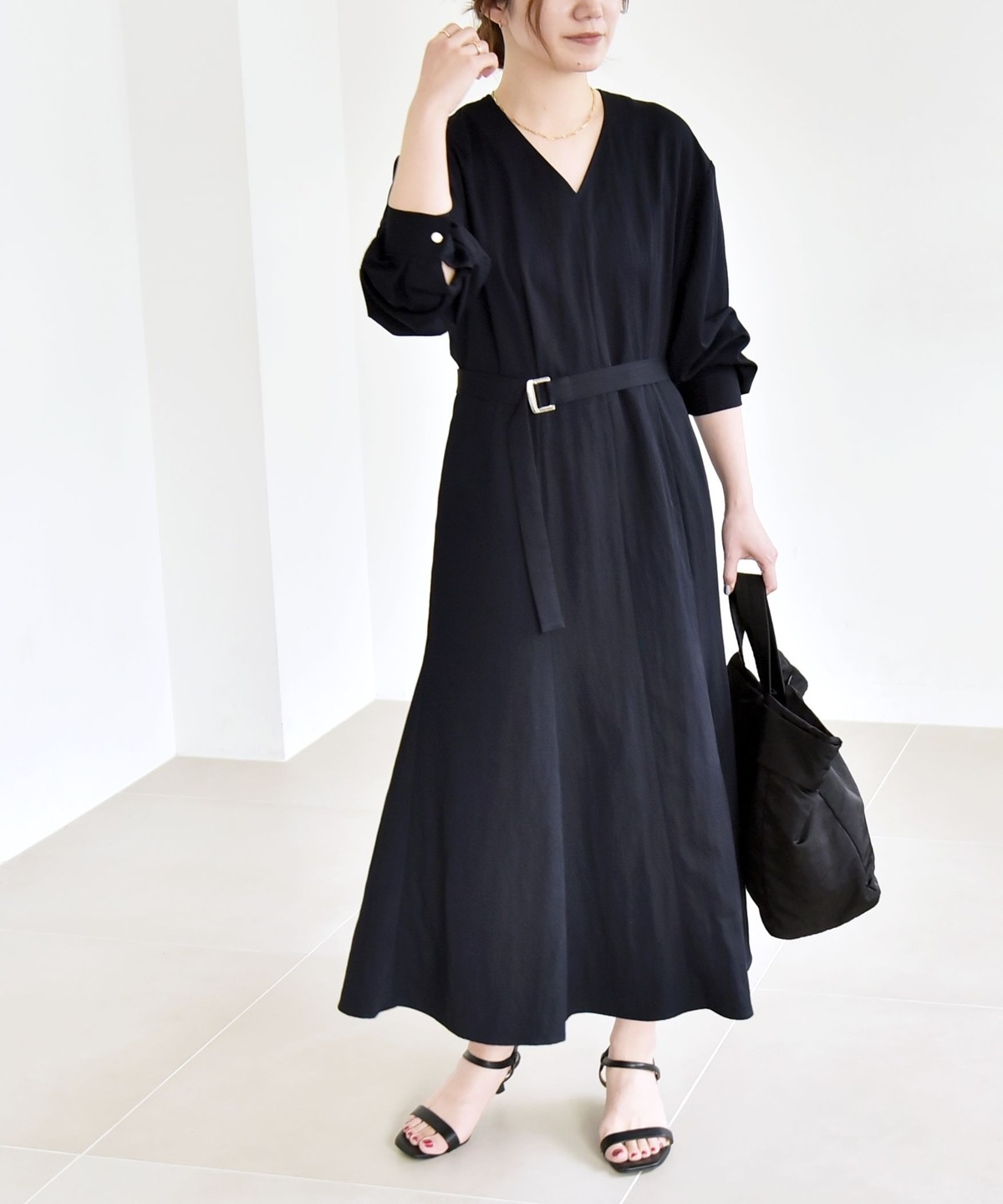 5. 《予約》quaranciel:〈洗濯機可能〉ツイル Vネック ベルト フレア ワンピース