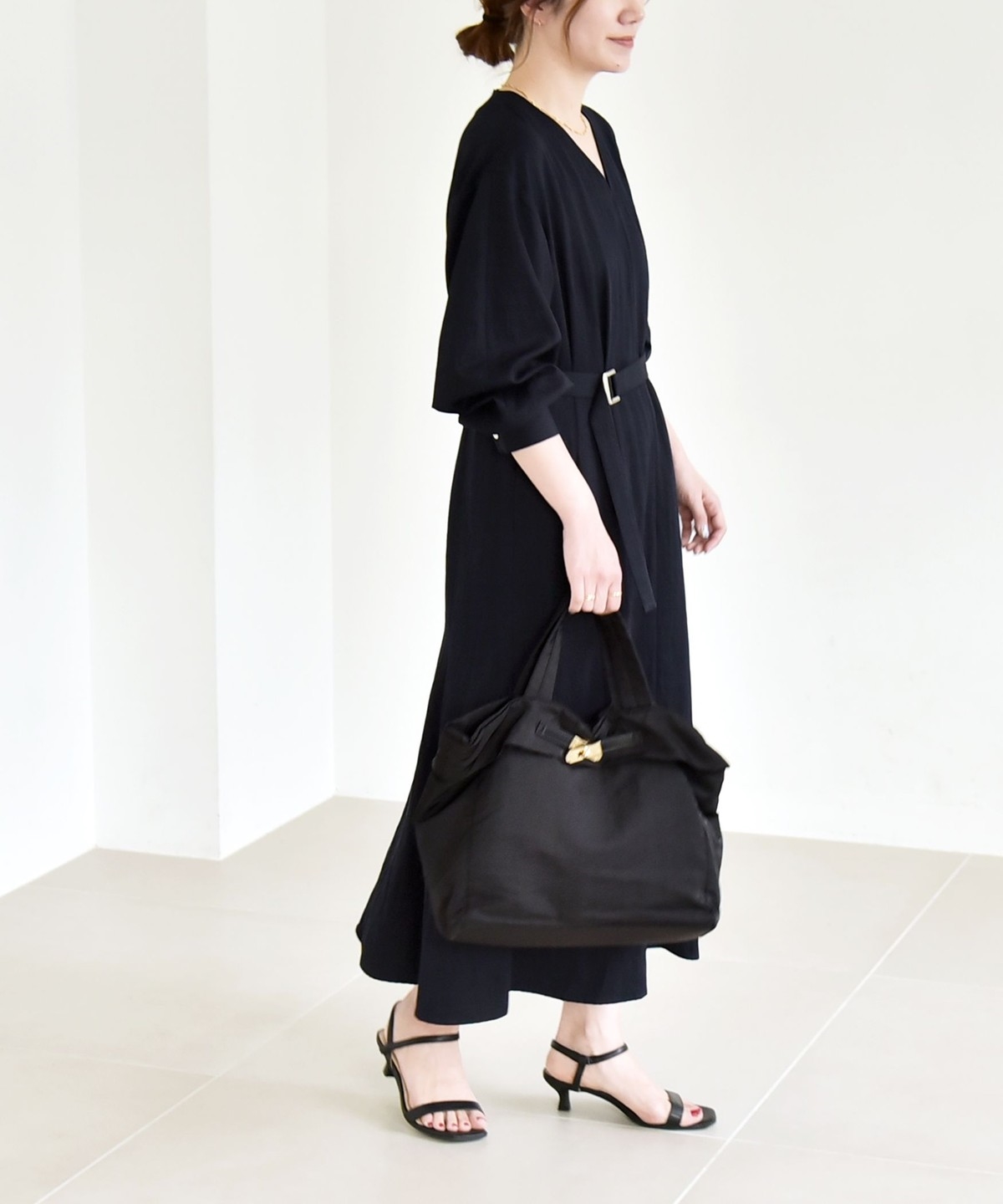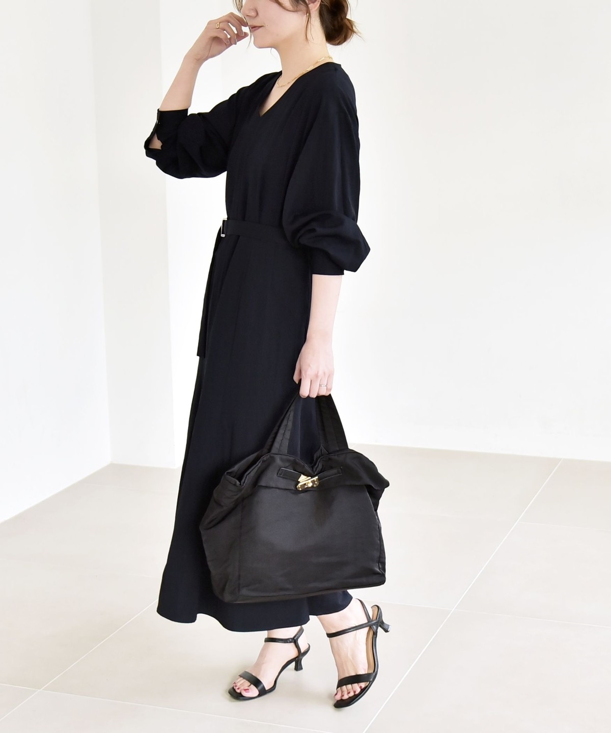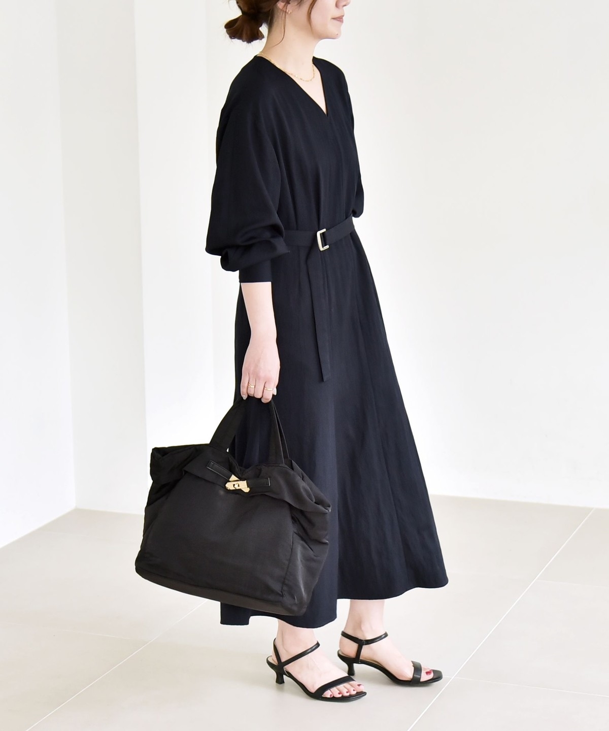 5. 《予約》quaranciel:〈洗濯機可能〉ツイル Vネック ベルト フレア ワンピース