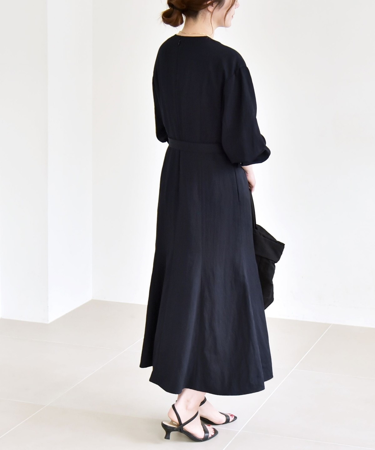裾に向かって贅沢に生地を使用し、歩くたびにふわっと揺れるフレアラインを演出してくれます。