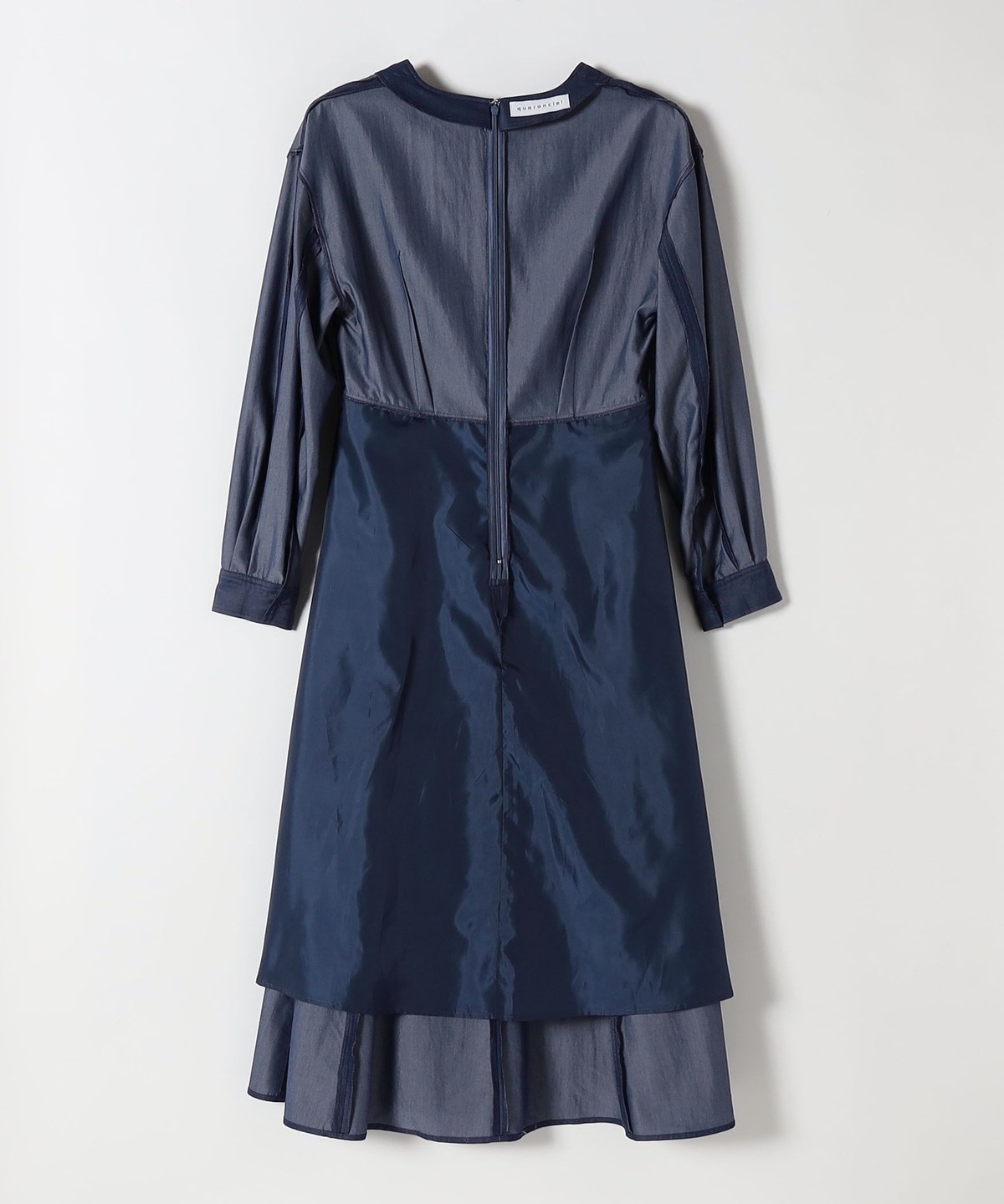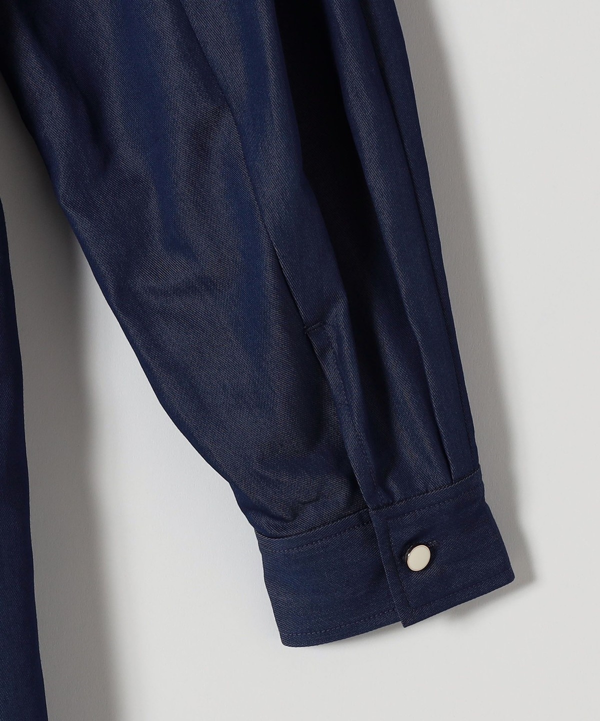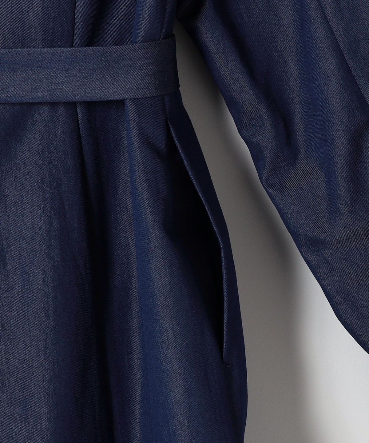 取り外し可能な共地のベルト、ほんのりとボリュームのあるスリーブデザインもデザインポイントです。